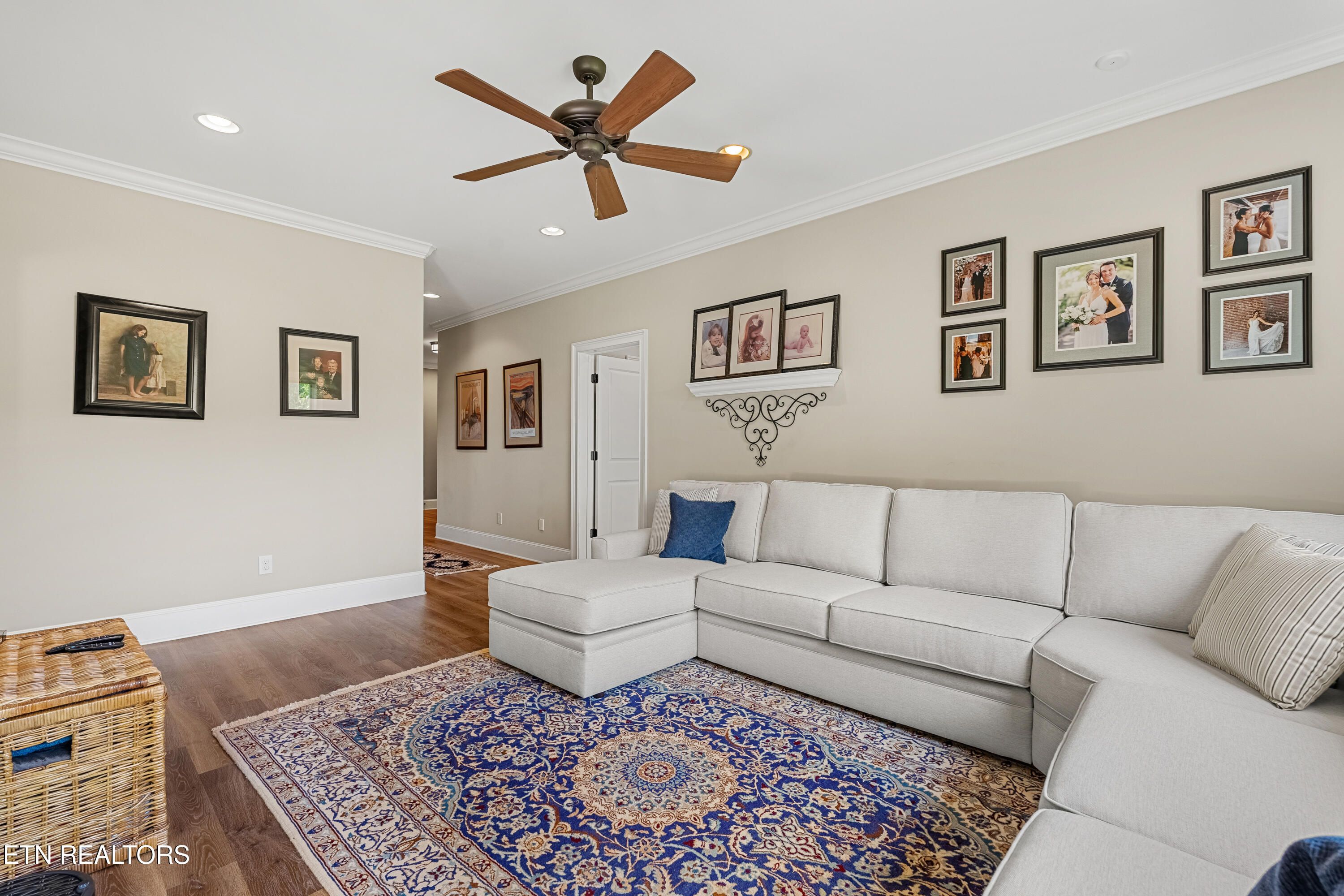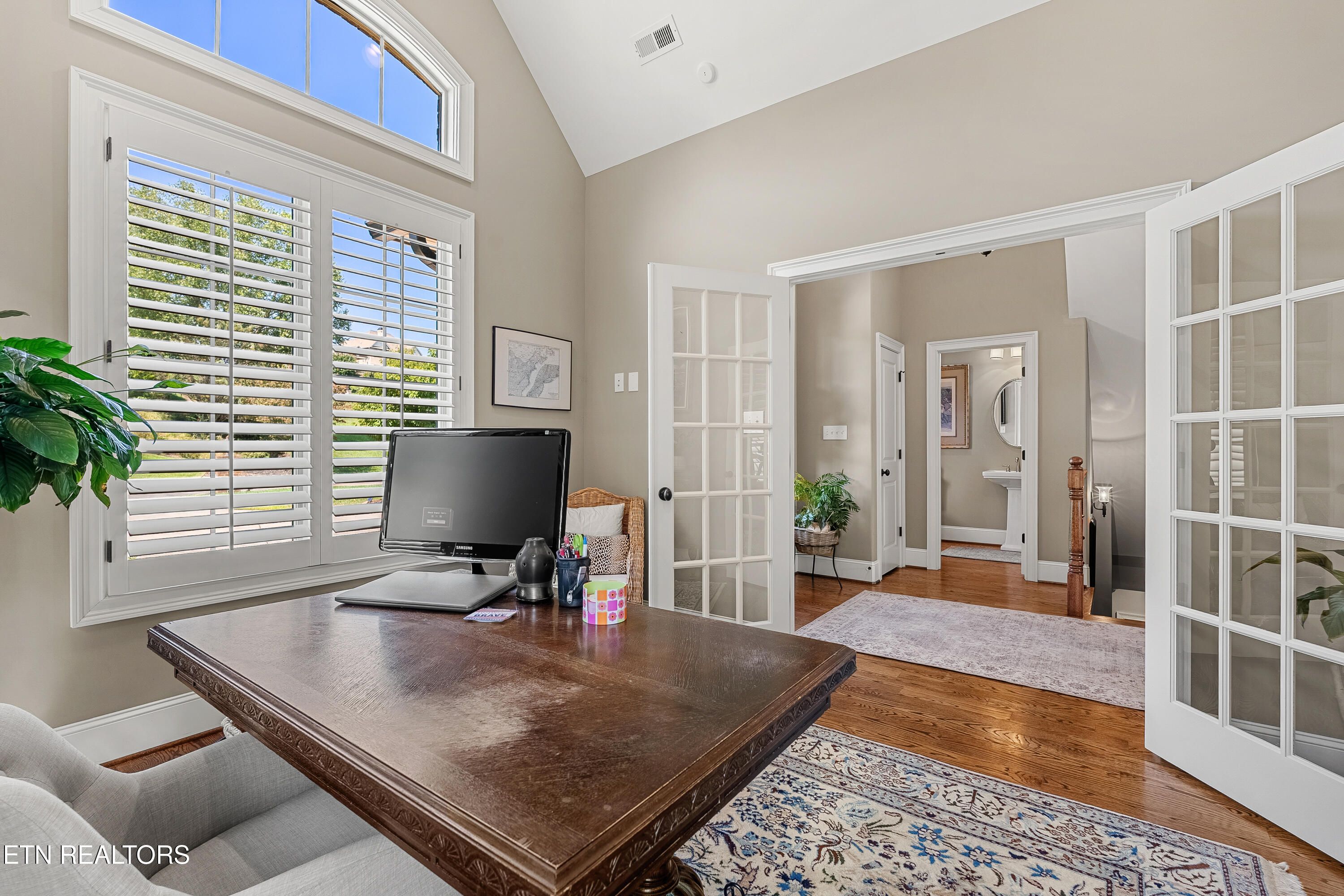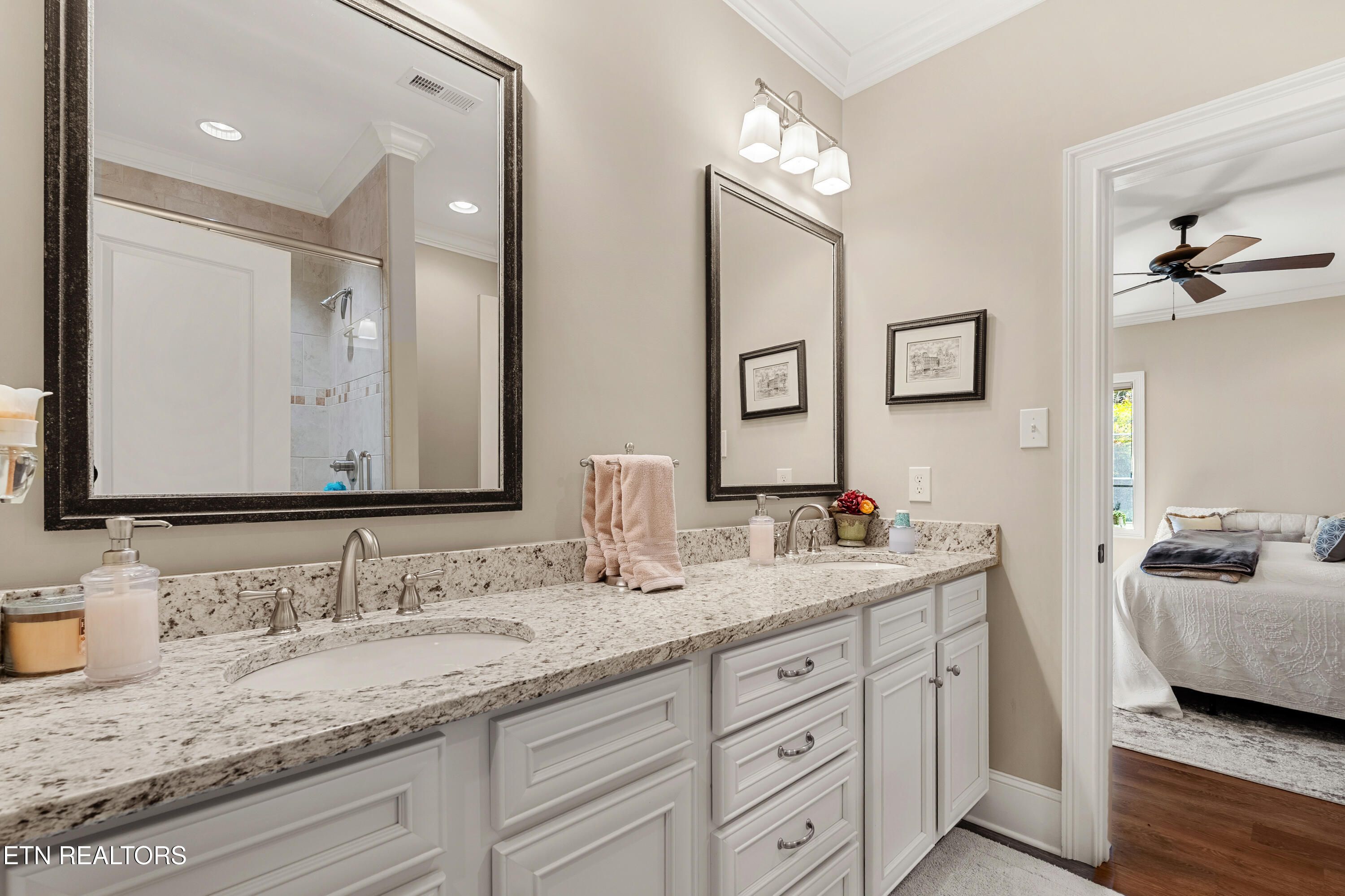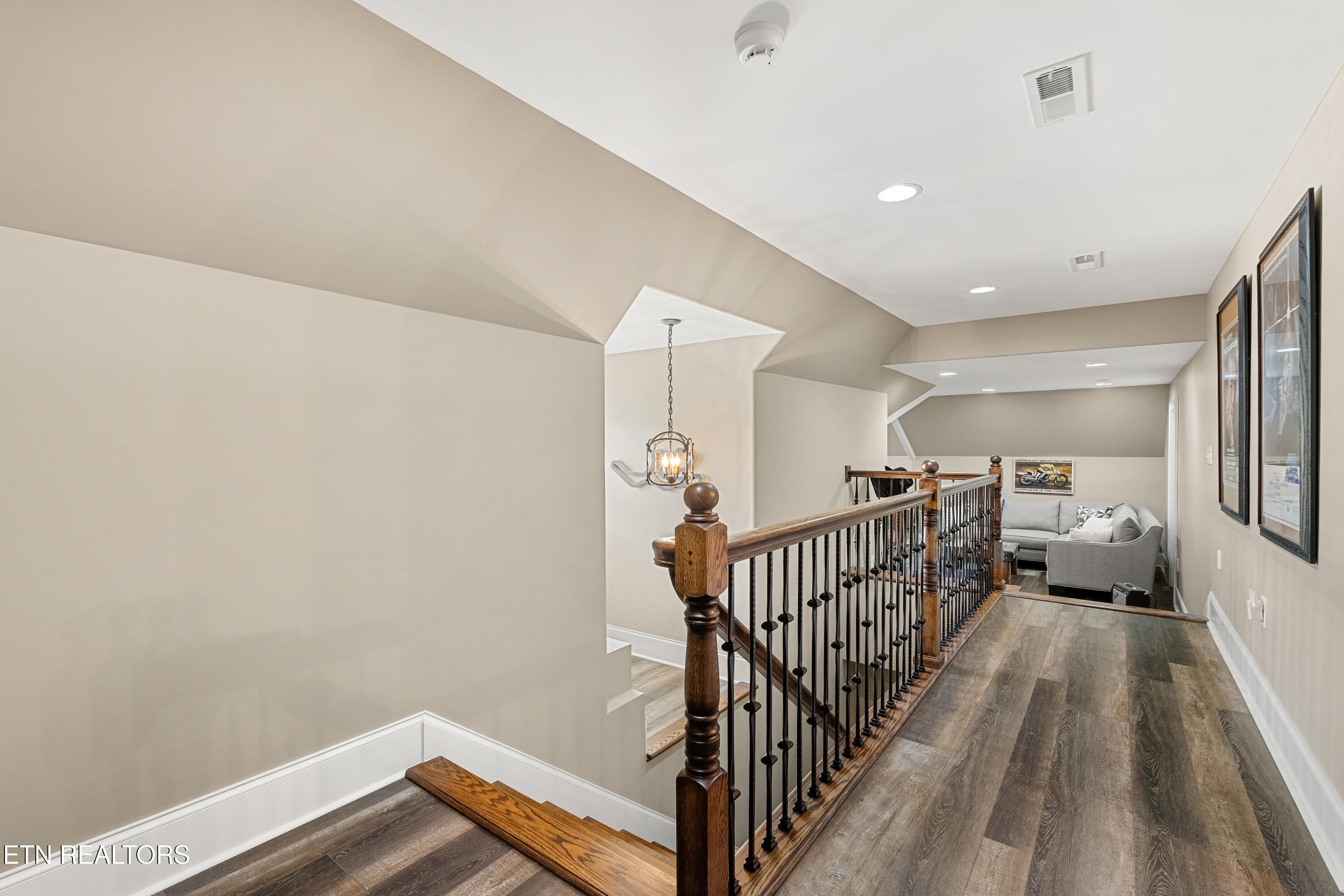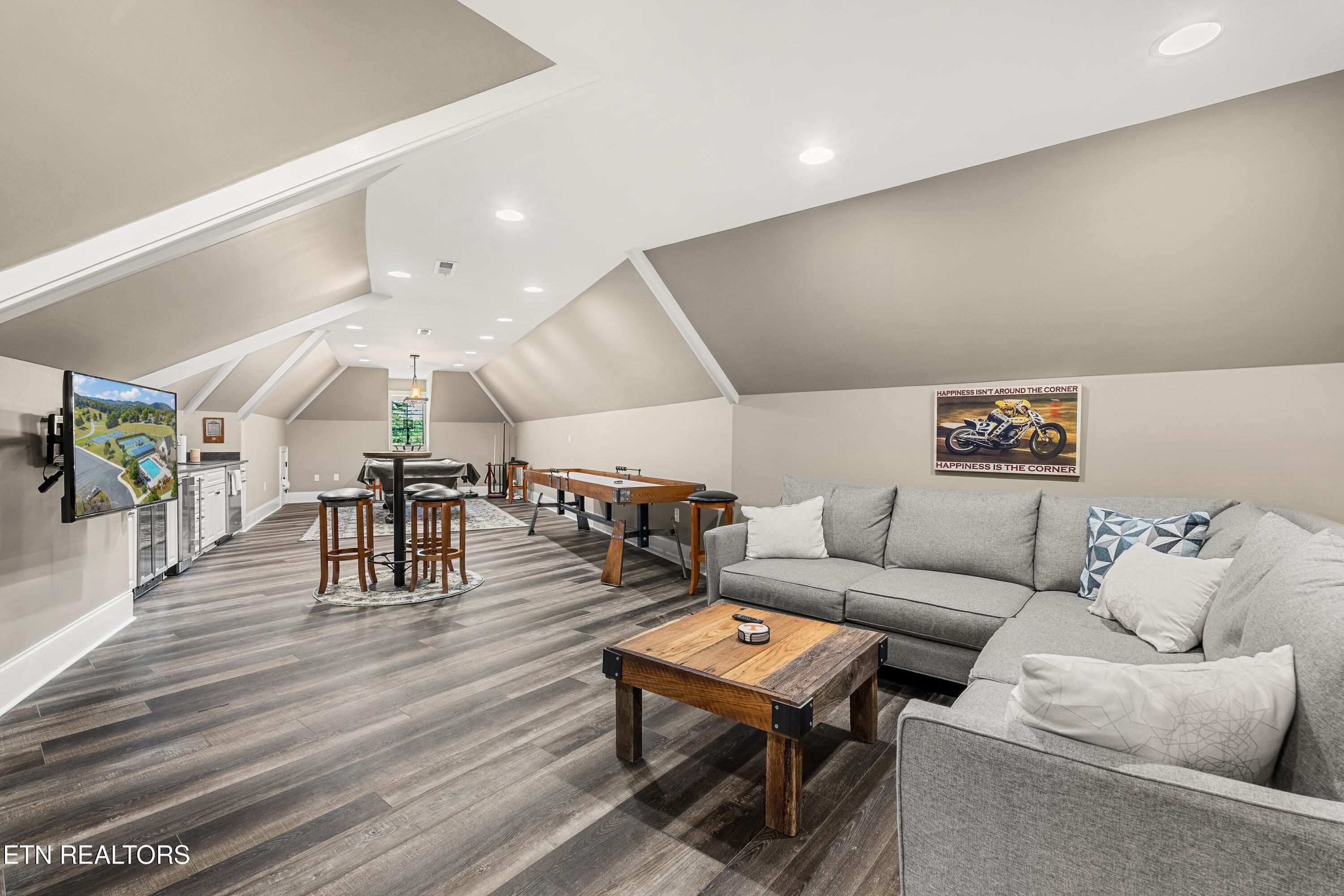 Exceptional Custom Home with Lake Views & Boat Slip Designed by Miller Architects and built by Knoxville's premier builder, J.A. Houck Construction, this custom home blends timeless craftsmanship with modern luxury. Enjoy partial lake views year-round (full in winter) plus a covered leased boat slip with lift, touchless cover, and pontoon boat included—a $1M savings compared to direct lakefront living! Built with integrity, the home features a poured concrete foundation, 2x6 exterior walls, Pella casement windows, heavy crown moldings, custom trim, coffered ceilings, & natural gas generator. Main Level: Formal study, powder room, open great room, and gourmet kitchen with large island, breakfast area, Thermador appliances, Bosch refrigerator, Sharp microwave drawer, built-in Miele coffee maker, granite counters, and site-finished red oak hardwoods. Expansive deck for entertaining. Primary suite with lake views, trey ceiling, spa-like bath (heated tile floors, walk-in shower, soaking tub, dual vanity, bidet), and oversized walk-in closet. Laundry off the suite. Plantation blinds and Hunter Douglas Window Shades throughout the home. Oversized 3-car garage plus golf cart space. Lower Level: Two ensuite bedrooms, recreation room, large finished workshop with 220 power (included in sqft), safe room, abundant storage, and covered patio. Framed for future elevator to service upper and main levels. Upper Level: Bonus retreat/man cave with bar area, dishwasher, media/game space, and half bath—perfect for entertaining or relaxing. This home truly has it all—lake lifestyle, luxury finishes, and meticulous quality. Full golf membership available for transfer.