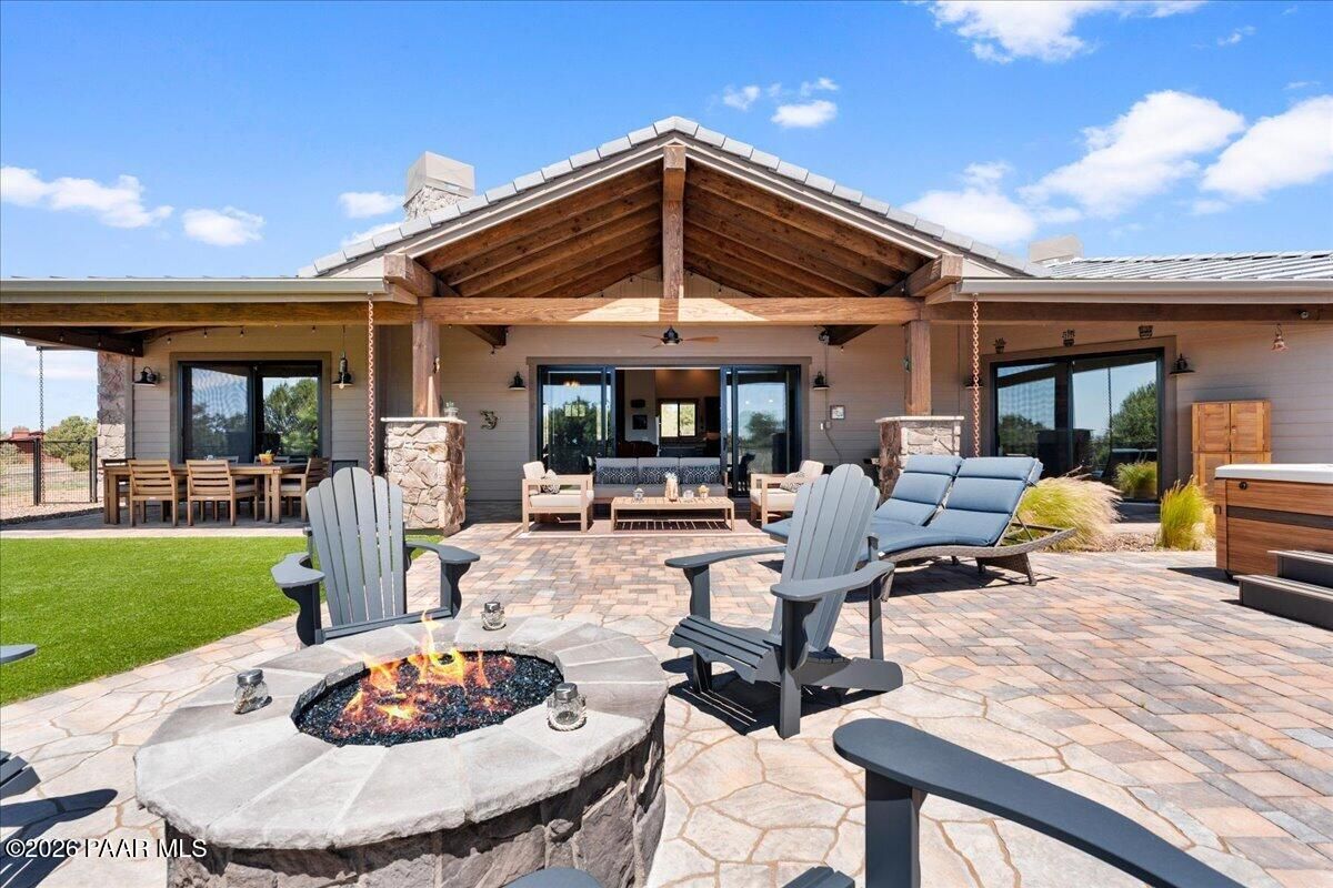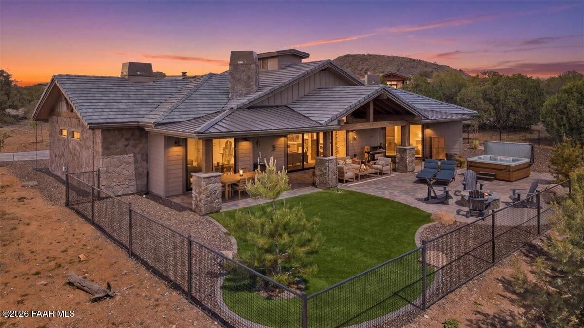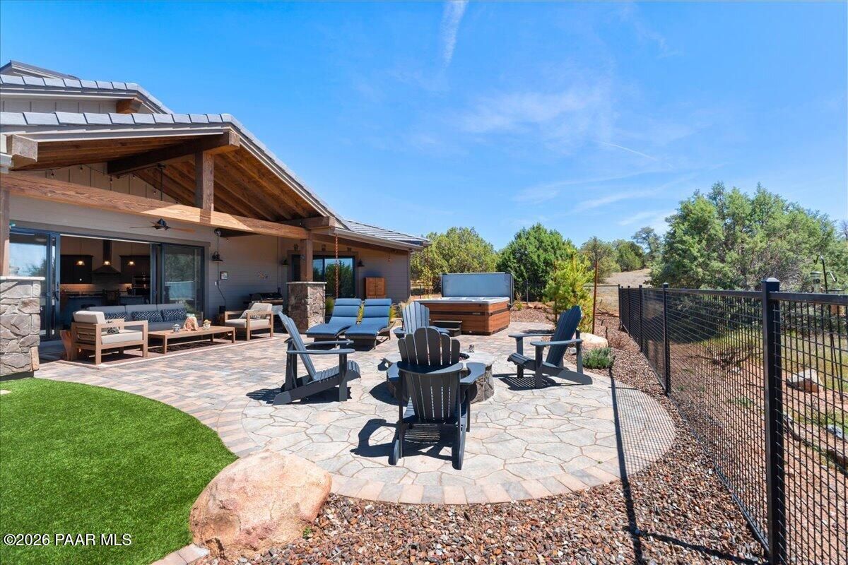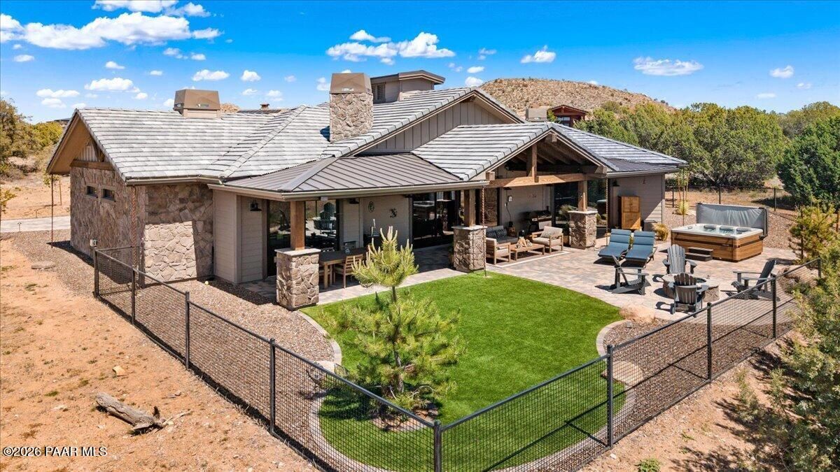 Seller will contribute $40,000 towards buyers social club membership!!Located in the highly sought-after gated community of Talking Rock Ranch, this beautifully crafted newer home by a respected builder offers a perfect blend of quality, comfort, and privacy. The property includes an additional lot, providing extra space and helping preserve the surrounding views. Inside, the open-concept design is both inviting and functional, featuring rustic touches, abundant natural light, and a seamless flow ideal for everyday living and entertaining. All bedrooms have been upgraded with stylish laminate flooring, creating a clean, modern feel throughout. A private en-suite bedroom offers flexibility for guests, extended family, or a dedicated retreat. Designed to embrace Arizona's indoor-outdoor lifestyle, the home features three sliding glass doors that open to a thoughtfully landscaped backyard. The fully fenced yard is an entertainer's dream, complete with low-maintenance artificial turf, a custom fire pit, ambient landscape lighting, and a relaxing hot tub, perfect for enjoying peaceful evenings under the stars. Additional features include a well-appointed laundry room with utility sink and a whole-house surge protector for added convenience and peace of mind. With its desirable location, upgraded features, and added lot for enhanced privacy, this home offers a rare opportunity to enjoy the best of Talking Rock Ranch living.