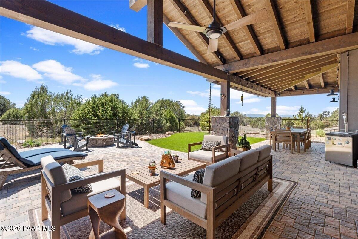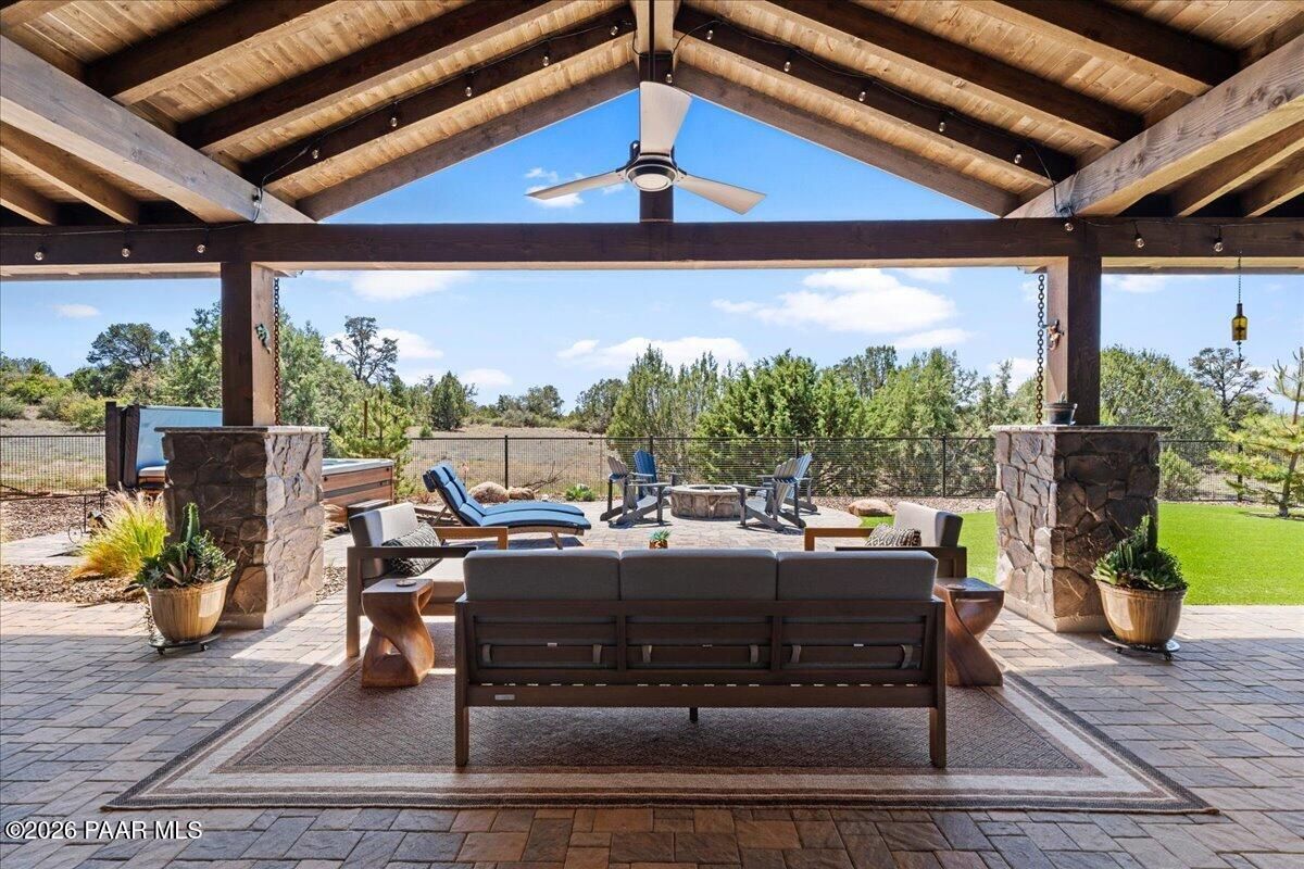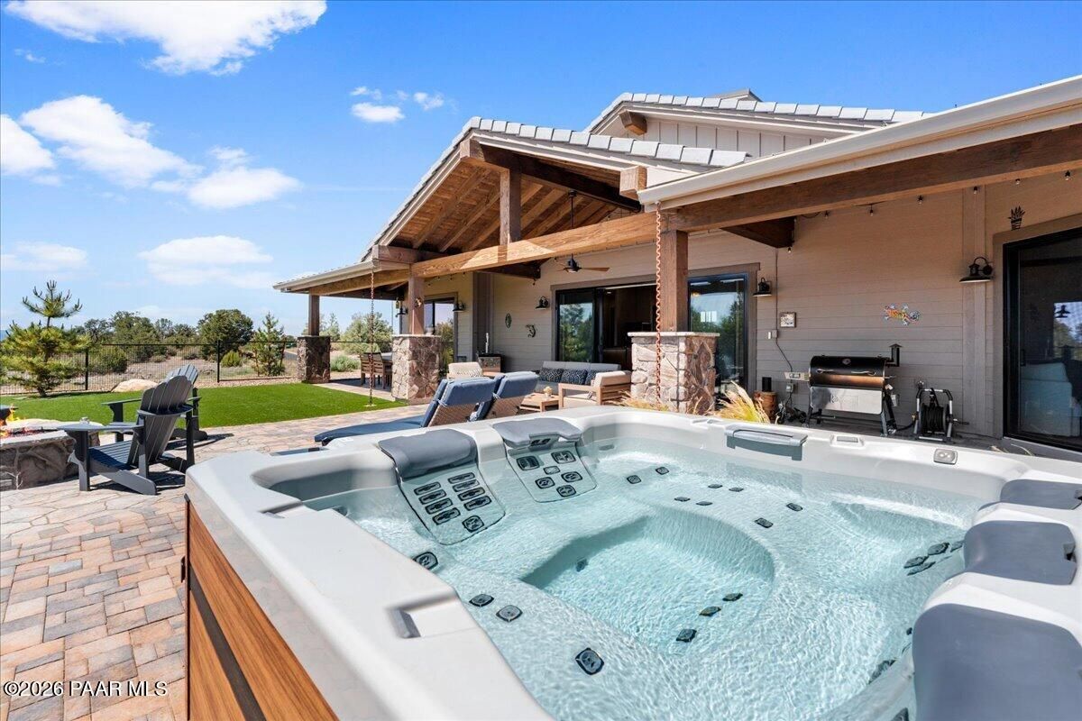Seller will contribute $40,000 towards buyers social club membership!!Located in the highly sought-after gated community of Talking Rock Ranch, this beautifully crafted newer home by a respected builder offers a perfect blend of quality, comfort, and privacy. The property includes an additional lot, providing extra space and helping preserve the surrounding views. Inside, the open-concept design is both inviting and functional, featuring rustic touches, abundant natural light, and a seamless flow ideal for everyday living and entertaining. All bedrooms have been upgraded with stylish laminate flooring, creating a clean, modern feel throughout. A private en-suite bedroom offers flexibility for guests, extended family, or a dedicated retreat. Designed to embrace Arizona's indoor-outdoor lifestyle, the home features three sliding glass doors that open to a thoughtfully landscaped backyard. The fully fenced yard is an entertainer's dream, complete with low-maintenance artificial turf, a custom fire pit, ambient landscape lighting, and a relaxing hot tub, perfect for enjoying peaceful evenings under the stars. Additional features include a well-appointed laundry room with utility sink and a whole-house surge protector for added convenience and peace of mind. With its desirable location, upgraded features, and added lot for enhanced privacy, this home offers a rare opportunity to enjoy the best of Talking Rock Ranch living.
