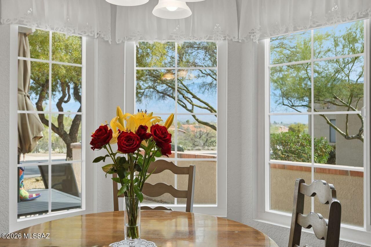 What a darling townhome in the sought after community of Sun City Oro Valley. You will enjoy the panoramic Catalina Mountain Views from the front courtyard & from the updated kitchen with newer windows, where you can watch the sunrise, the moon rise, & the mountains turning pink at sunset. The 2 full bathrooms are tastefully updated, and the split bedroom plan offers privacy. The great room is cozy with the back sliding door showcasing the enclosed back patio. Well, maintained and lovingly lived in for many years. Some furnishing can stay at no cost. All patio furniture does not stay.