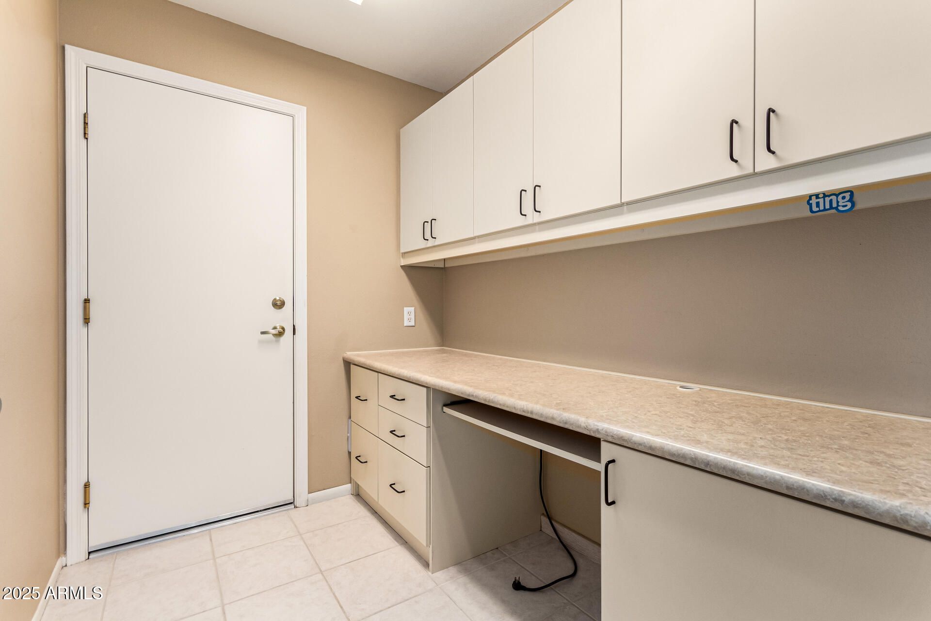 Seller-offered flooring credit allows buyers to personalize the home with finishes that fit their style. Well maintained Sandoval floor plan. 2 bedroom and 2 baths with 2150 sq ft. Enjoy energy efficiency with owned solar, plus peace of mind from major updates including roof underlayment (2021), HVAC (2019), interior and exterior paint (2025), and new sunscreens (2025). The interior features plantation shutters, a spacious layout, abundant natural light, and the opportunity to personalize flooring to your taste. A dedicated area ideal for a home office or craft space. Step outside to a covered patio surrounded by lush Arizona landscaping, ideal for relaxing or entertaining. The garage is well-appointed with built-in cabinets, a workbench, and an epoxy floor.