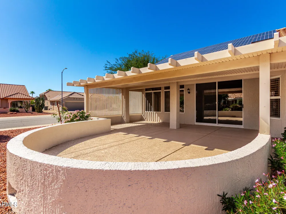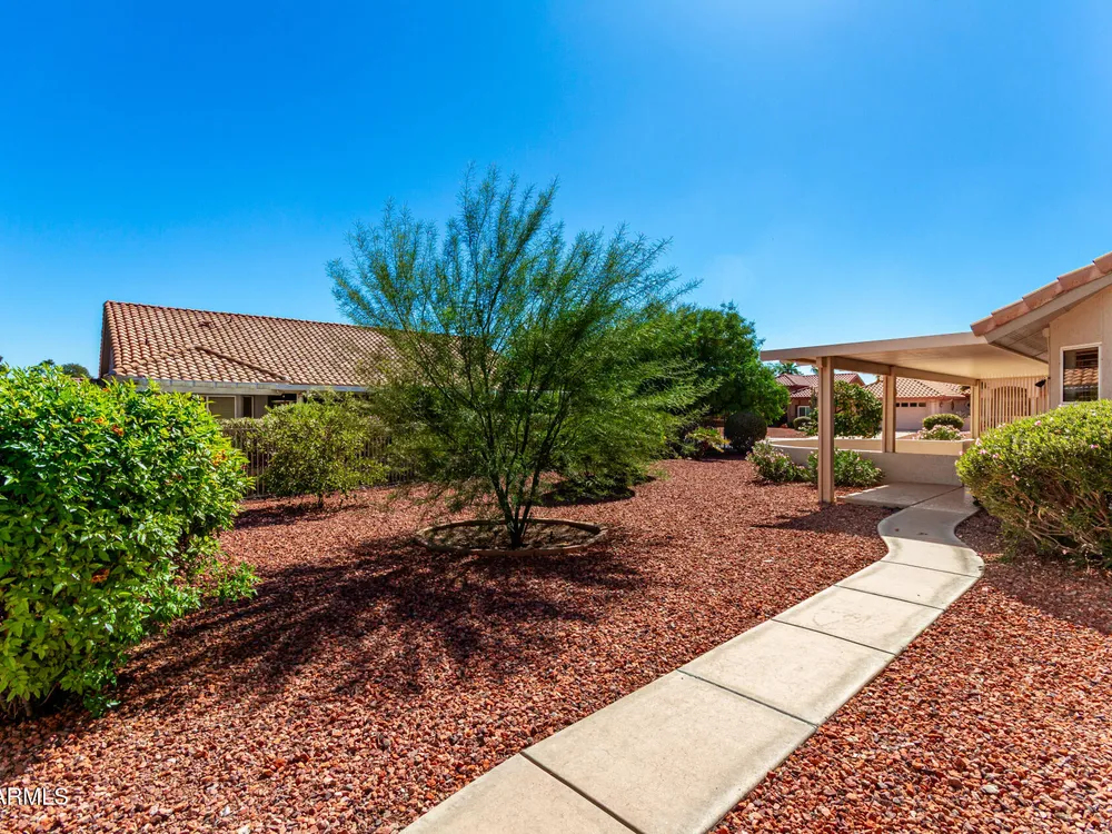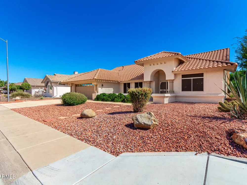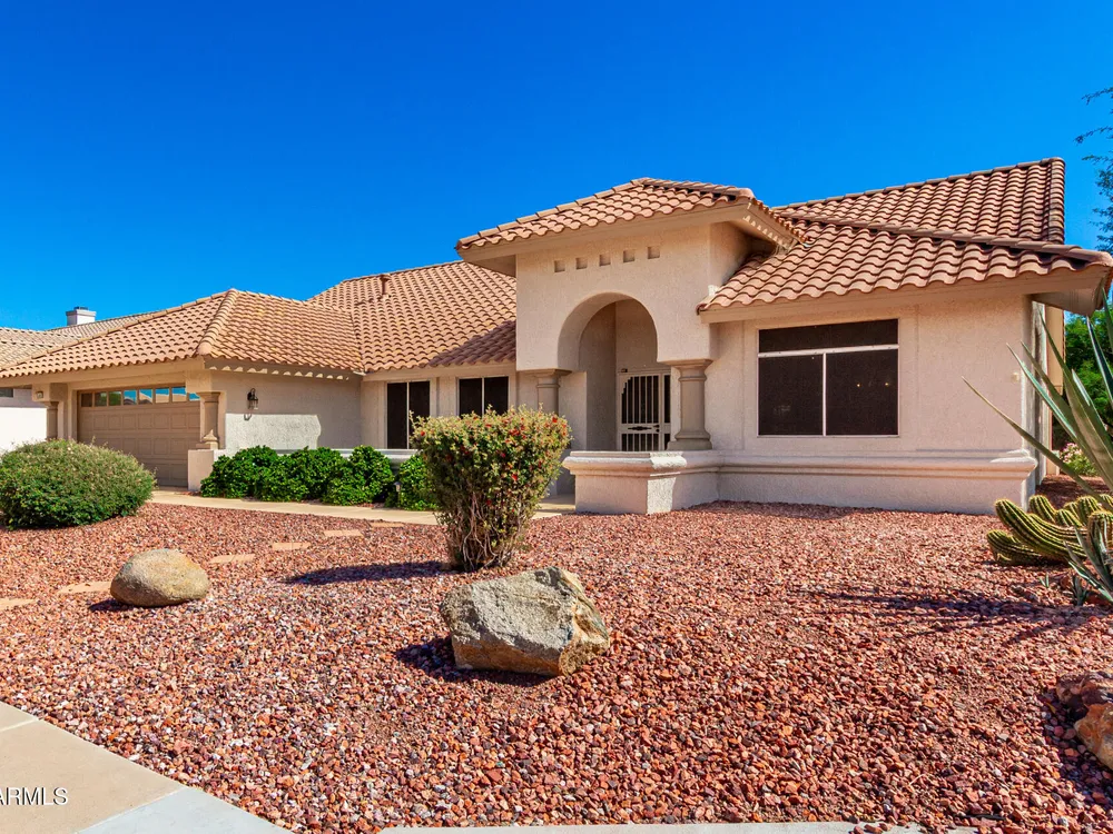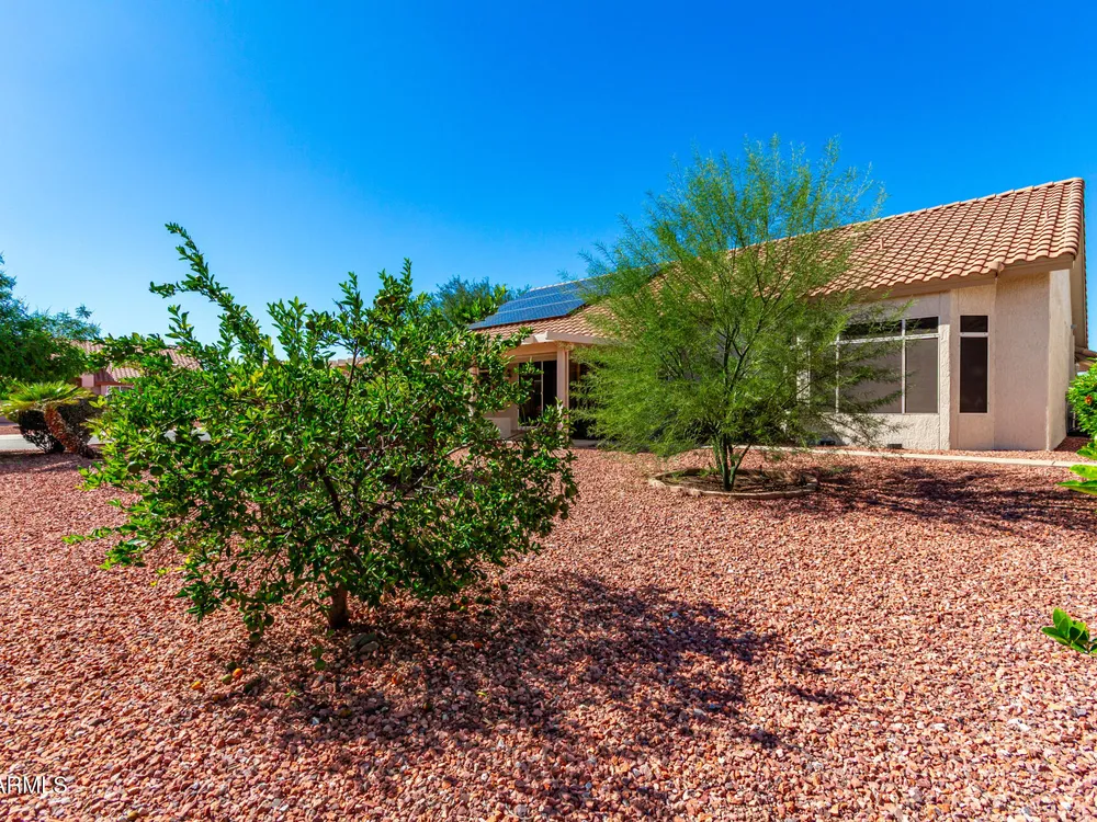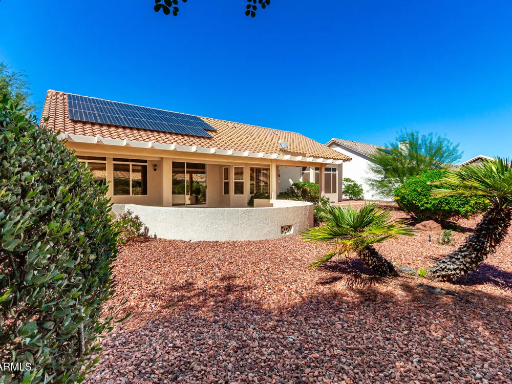 Sandoval Floor Plan | 2 Bed | 2 Bath | 2,150 Sq Ft Beautifully maintained Sandoval floor plan showcasing pride of ownership. Enjoy energy efficiency with owned solar, plus peace of mind with roof underlayment (2021), HVAC (2019), interior and exterior paint (2025), and new sunscreens (2025). The inviting interior features plantation shutters, a spacious layout, and abundant natural light. Step outside to a covered patio surrounded by lush Arizona landscaping, perfect for relaxing or entertaining. The garage is complete with built-in cabinets, a workbench, and an epoxy floor.