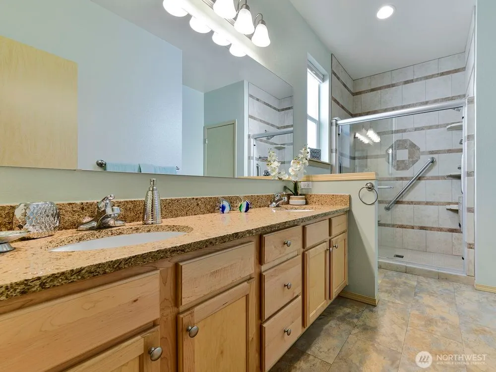 Autumnwoods 55+ Community.1710 sq ft. 3 bdrms 1 3/4bths. Kitchen with breakfast nook open to dining room. Primary suite with walk-in closet and spacious Primary bath Granite countertops and deluxe tile shower. 2nd bath also Granite countertops. 9' ceilings with architectural light fixtures & decor switches. Cabinets are Custom To the ceiling for extra storage area. Utility sink in Laundry room, Finished garage w/ garage door opener. Covered back patio area. Easy maintenance yard, HOA fee covers the lawn mowing. Under home has been recently done clean and Insulation. Generator included. Fully landscaped front and rear yards w/ sprinkler system. Backyard is fully fenced. Community Park and Cabana,Trails, Gated Entry. Close to JBLM,Freeways