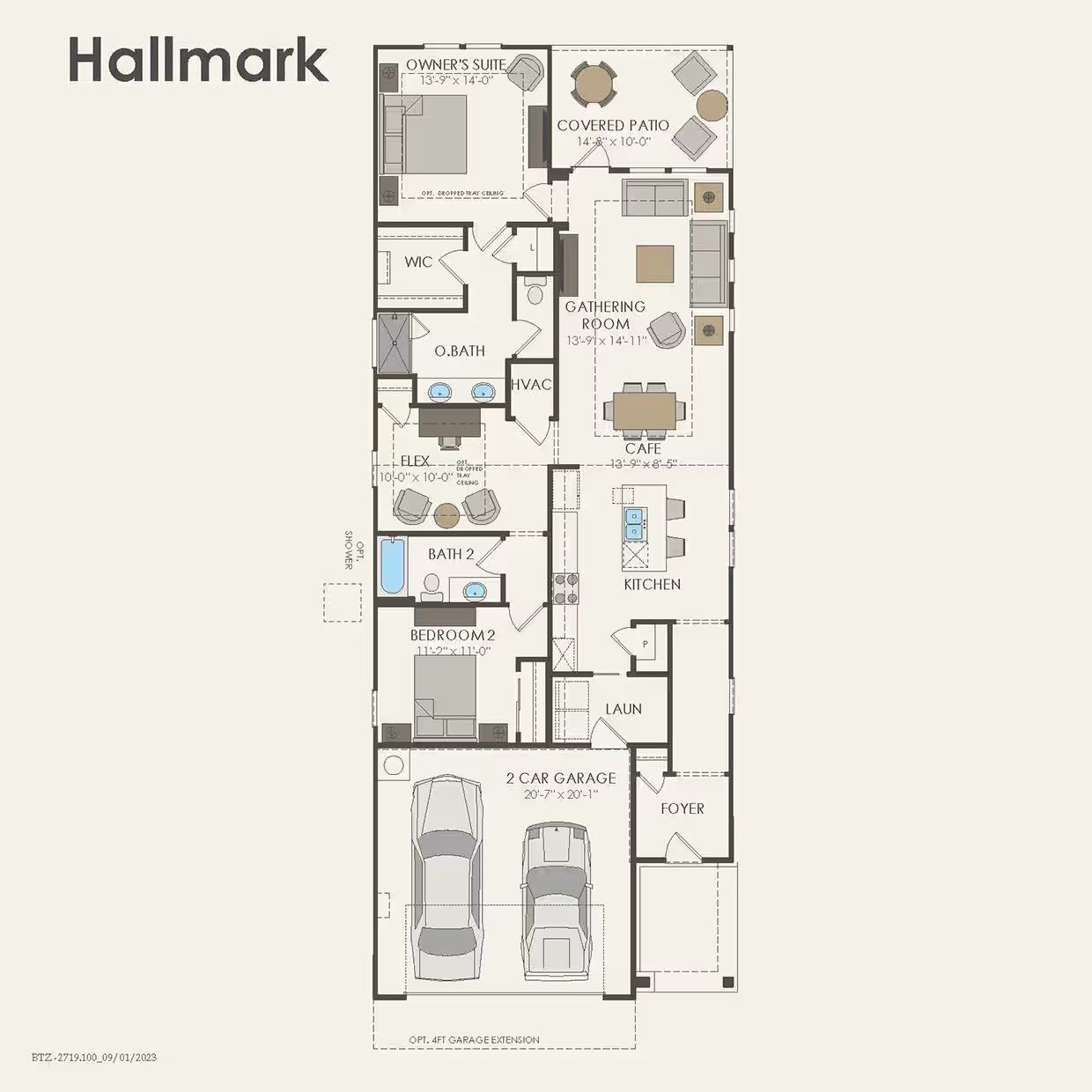 December completion. The Hallmark floorplan by Del Webb offers 2 bedrooms, 2 baths, and a flex space with open-concept living and modern design. The open-concept design allows for seamless indoor-outdoor living, perfect for entertaining guests. This home features a beautiful entry with an art gallery space, which opens up to your gourmet kitchen. With a large island, your guests are sure to entertain you while you whip them up a yummy snack! This home sits on a thoroughfare lot; there are no immediate backyard neighbors! This is where you can sit with your friends drinking morning coffee or relaxing in the evening with a good book. Located in the sought-after community of Del Webb Chambers Creek, residents here enjoy a plethora of amenities, including a clubhouse, fitness center, resort-style swimming pool, 18-hole golf putting green, Pickleball/Tennis courts, and much more.