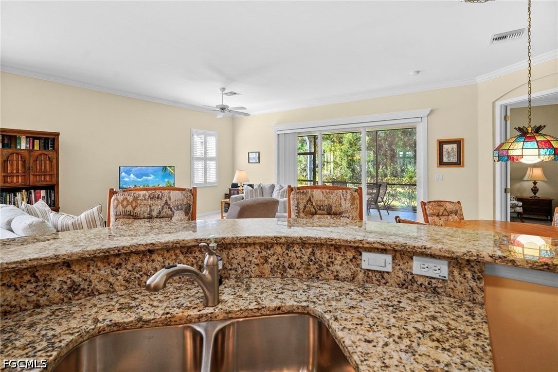 2 bedroom plus den executive home in Legends Golf & Country Club with a full golf membership. This Devon floor plan has a new roof, plantation shutters, tile throughout the living areas, tall ceiling with crown molding and upgraded kitchen cabinets, granite tops, stainless appliances and so much more. Enjoy the peace and quiet from the screen lanai and preserve view. Options for extending the lanai or adding a pool is up to your imagination. Legends Golf & Country Club is a beautiful guard gated Country Club that offers Championship golf, grand slam tennis, pickleball, a 35,000 square foot clubhouse with 3 restaurants, an amazing resort style pool with waterfall and spa, fitness center with free classes, tons of planned activities such as concerts, dances, card games and much more. Golf members pay no additional fees for carts or greens fees and you can bring your own golf cart on the course with no trail fee. Located conveniently in S. Ft. Myers close to shopping, restaurants, the airport and to the beaches or baseball games.