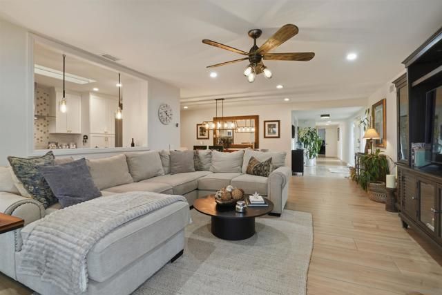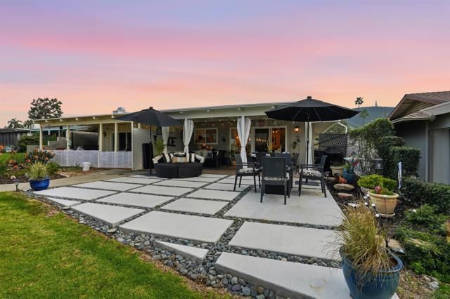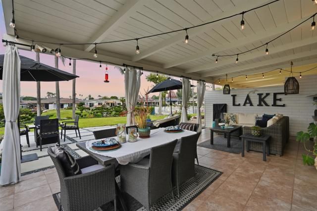 Refined waterfront living in this exquisitely renovated Lake San Marcos home featuring designer finishes & breathtaking sunset views from your own backyard. Thoughtfully curated to deliver a sophisticated yet relaxed lakeside lifestyle. This 2BR + optional 3rd BR/office, 2BA residence has been reimagined with fresh interior & exterior paint, raised ceilings in main living areas & a partially opened wall creating seamless flow between kitchen, dining & family room. The stunning new kitchen showcases marble countertops, extended storage & counter space, high-end appliances, new plumbing & water lines & recessed lighting; ideal for everyday living & elevated entertaining. Wide-plank wood-look tile flooring throughout, complemented by plush carpet in the 2nd bedroom. Designer lighting, ceiling fans, new baseboards, window casings & upgraded electrical enhance the refined aesthetic. Secondary bath has been remodeled with spa-inspired finishes. Garage features epoxy flooring & freshly painted walls. Enjoy a newly extended backyard with concrete slab, beach rock accents & added usable space;perfect for sunset dining or evening gatherings overlooking the water. Landscaping includes widened side access, new succulents & fresh mulch. New front gate & exterior lighting enhance curb appeal & privacy. Located in the coveted Lake San Marcos community offering pickleball courts, clubhouse, pool, championship golf course, restaurants, scenic walking trails & an unmatched resort-style lifestyle, minutes to shopping, dining & coastal access. Turnkey luxury at its finest.