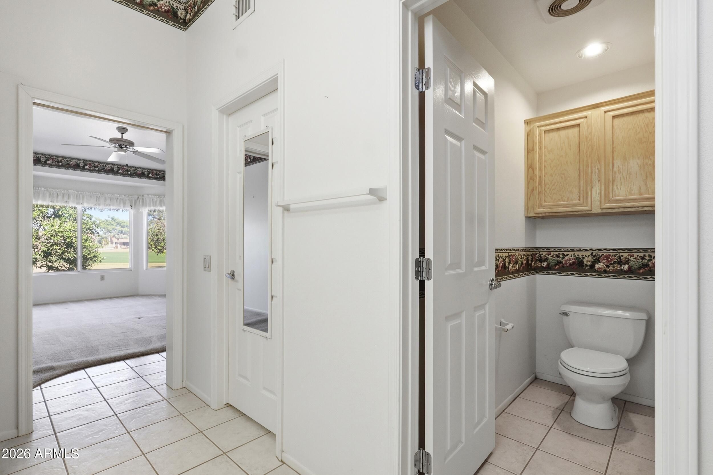 Golf course living on the 7th fairway of Grandview in Sun City West. This 2,168 sq ft home, has been thoughtfully preserved, offers beautiful fairway views and soaring ceilings. Enter through a private courtyard and double doors into a spacious living and formal dining area filled with natural light. The split floor plan features two ensuite bedrooms on opposite sides of the home, both with golf course views, plus a guest bath and dedicated office space. The kitchen opens to a casual eating area and enclosed patio, while the expansive Arizona room provides the perfect place to relax and enjoy the serene setting.