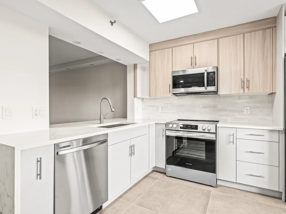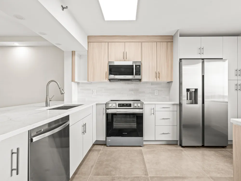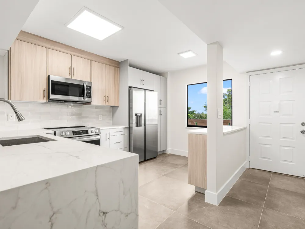 One of the nicest units in Huntington Lakes with long waterfront view. Features designer European style kitchen and bathroom cabinets with quartz countertops and new stainless steel appliances. Home features smooth ceiling NO POPCORN freshly painted large porcelain tile newer a/c and HWH and ready for new owner to enjoy