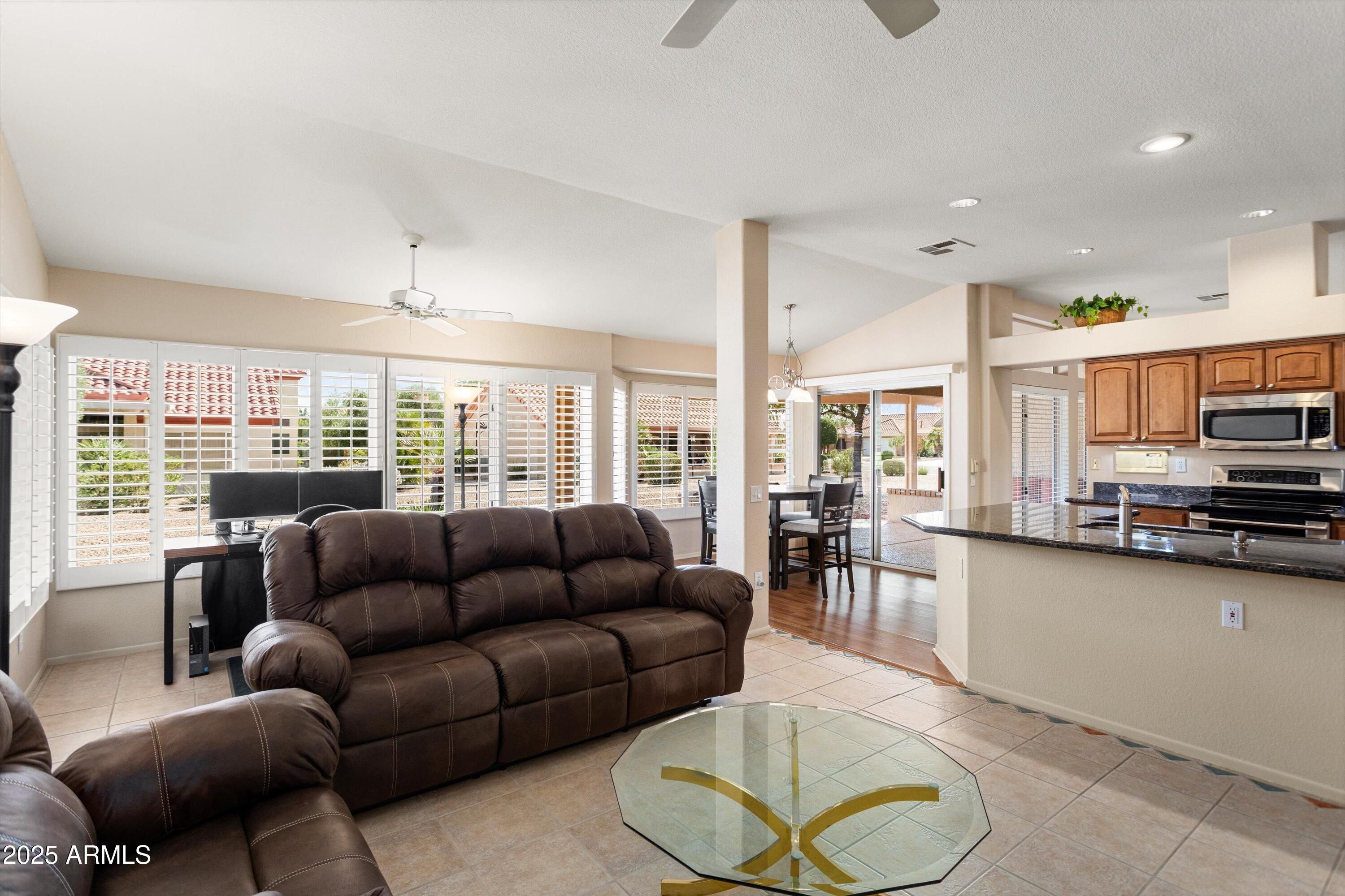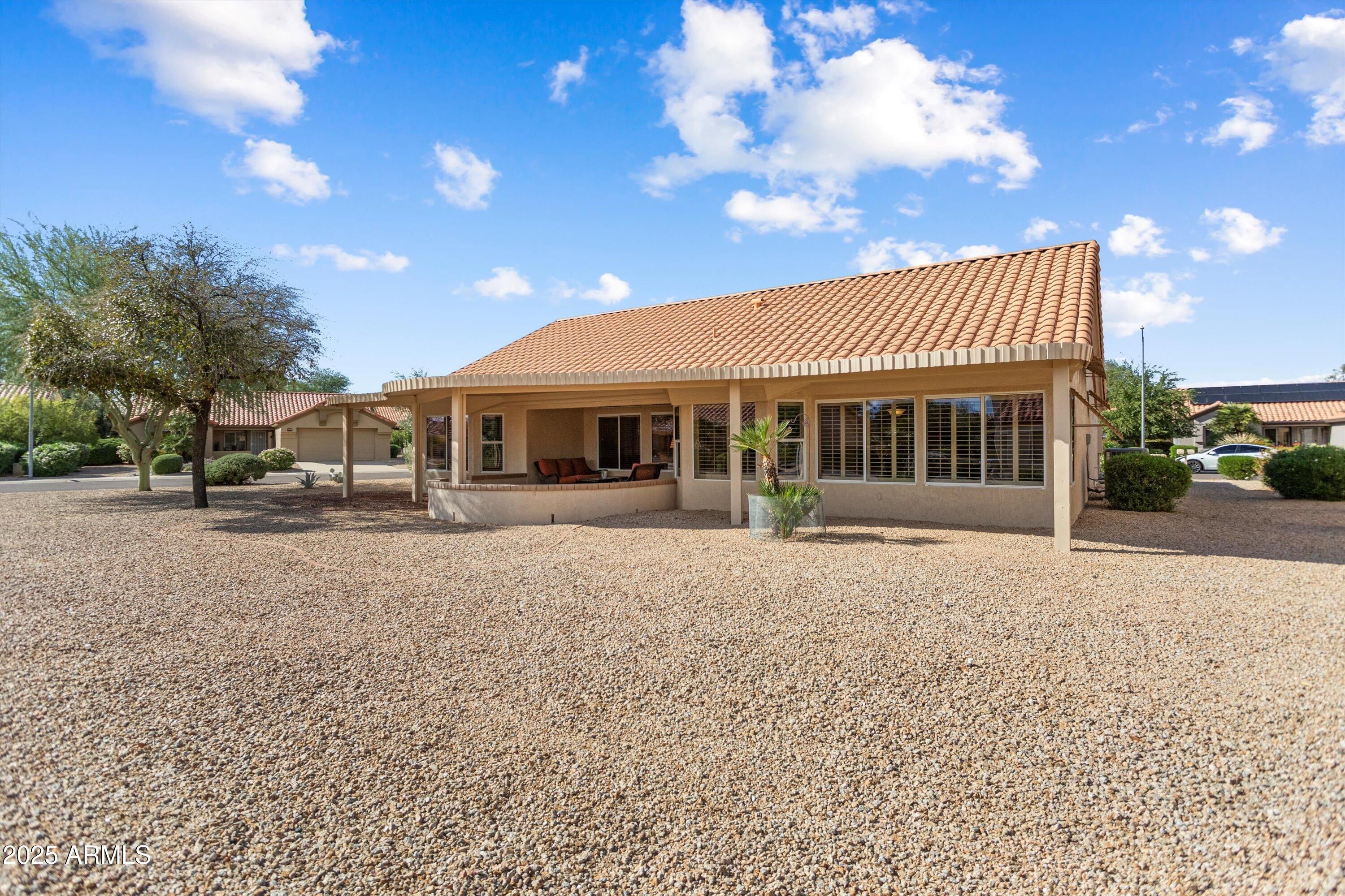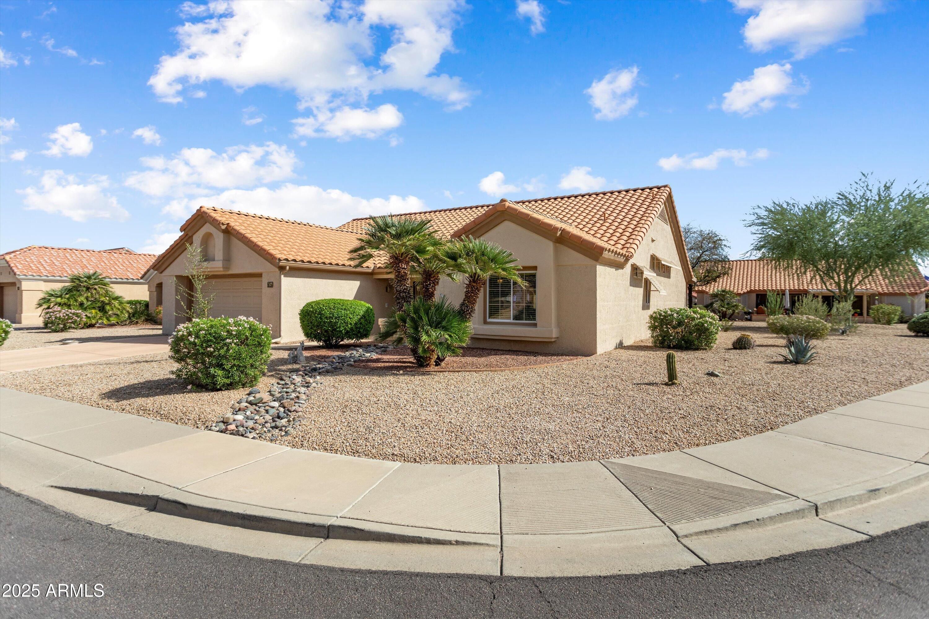 Beautifully maintained 2 bedroom expanded Carefree model with 1,922 sq ft on a quiet corner lot along a U-shaped street. Features include an enlarged family room, bay windows in the dinette and master bedroom, and a spacious covered south-facing patio perfect for AZ living. Updates include new HVAC (2025), double-layer roof underlayment (2022), and a remodeled kitchen with granite counters, SS appliances, and pull-out cabinets. Bathrooms feature upgraded cabinets and solid-surface counters. Extras include wood blinds, plantation shutters, custom walk-in master closet, six-panel doors, and interior water filtration. HOA covers front and back landscaping, trash, pest control, spot termite treatment, and exterior paint every 8-10 years. Some furnishings available outside of escrow