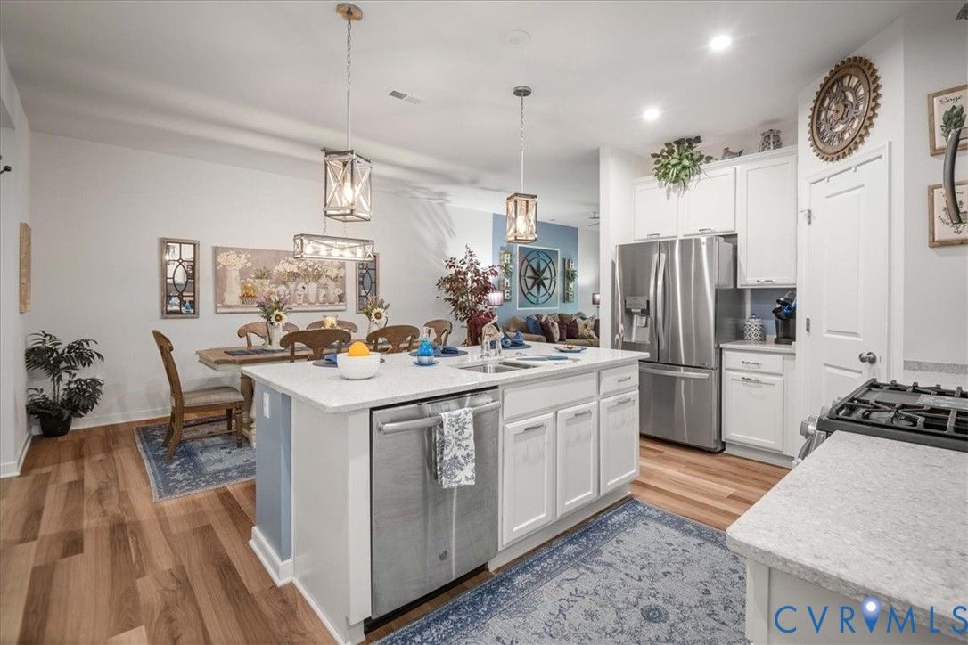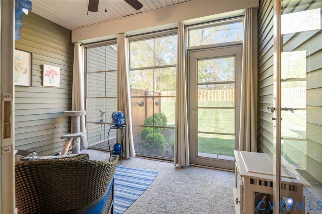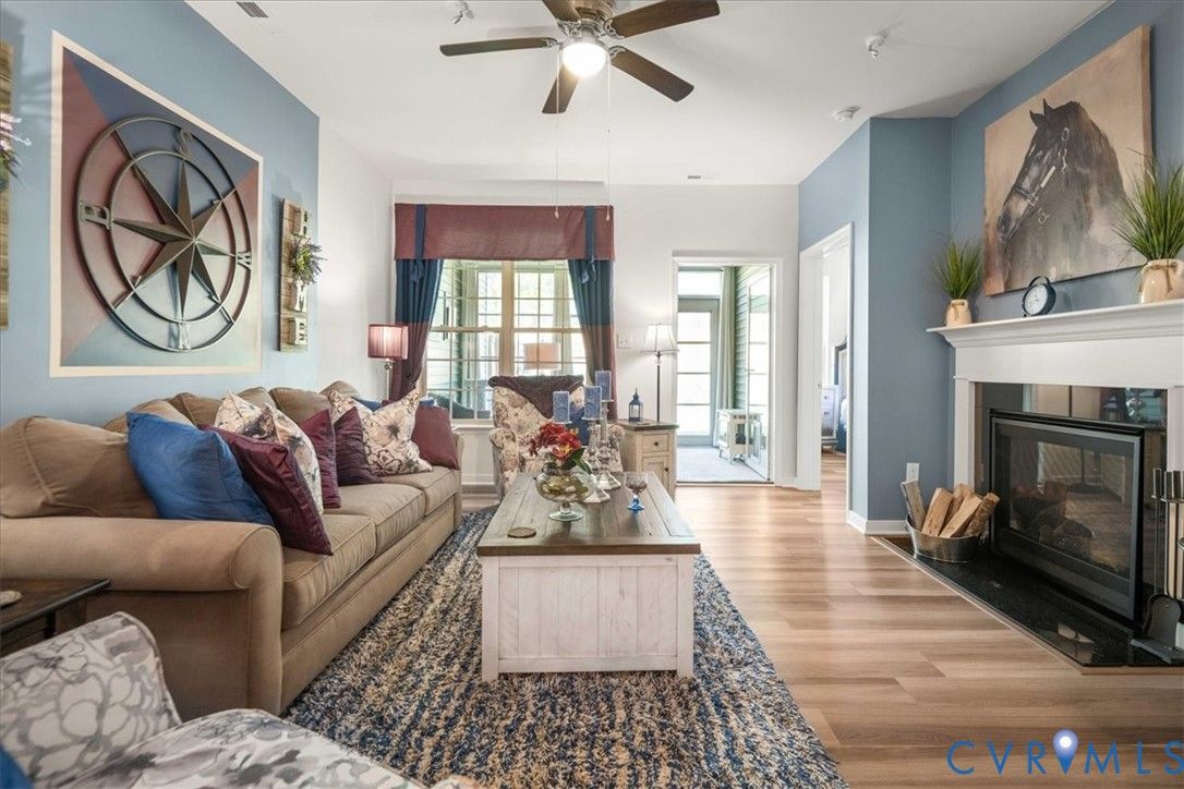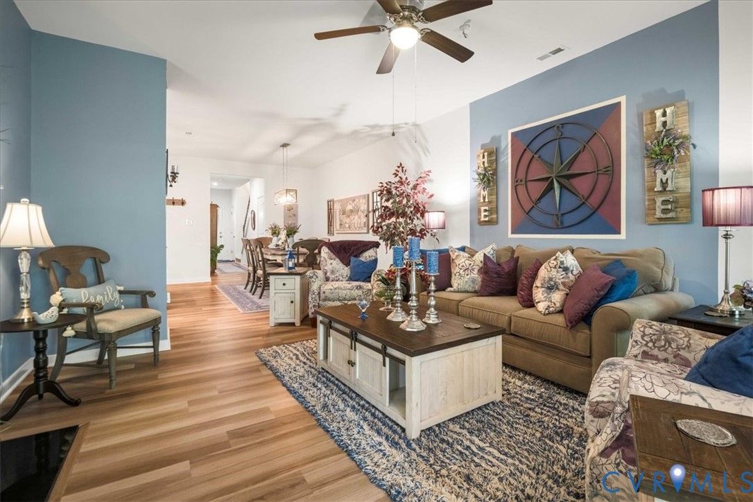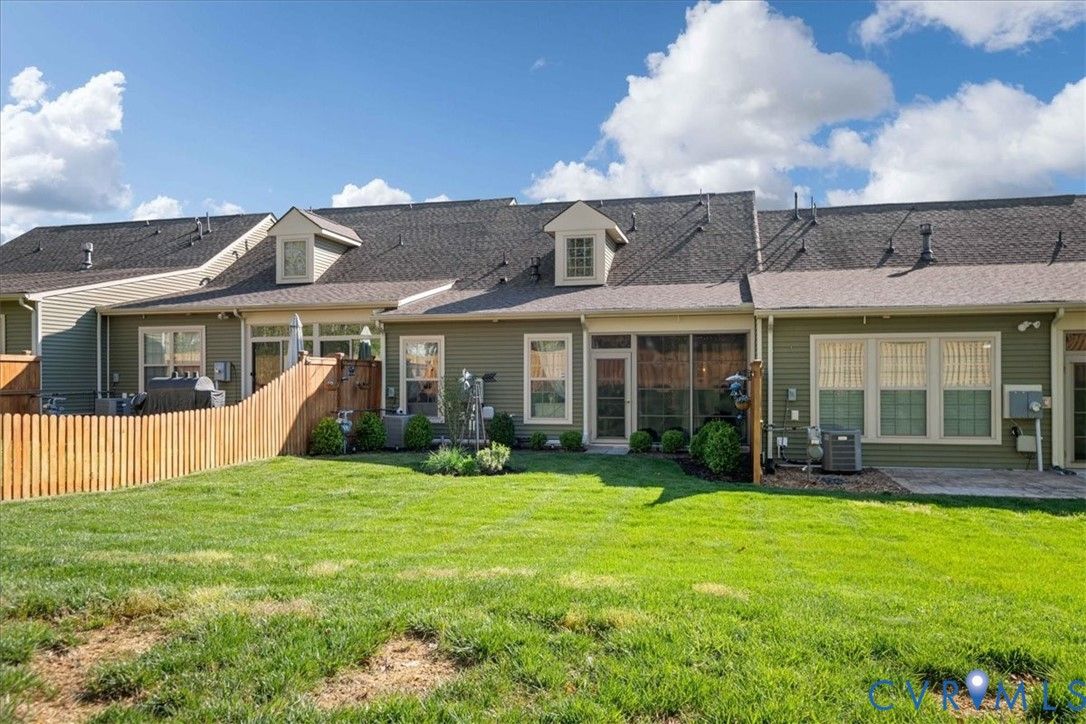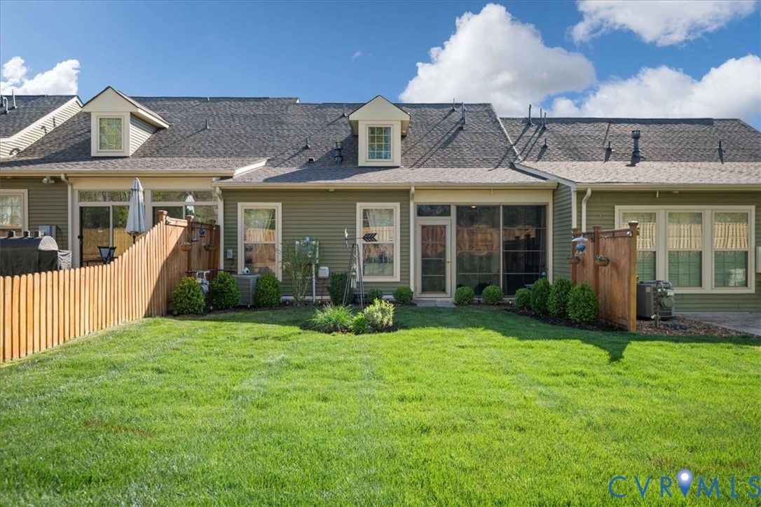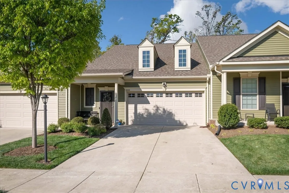 1444 Westhall Gardens is a beautifully maintained home built in 2019 in the desirable 55+ community of The Townes of Notting Place. This low-maintenance home offers a zero-step entry and level lot, with the HOA handling all exterior maintenance, including landscaping, roof, vinyl siding & trash removal. Inside, the first floor features an inviting open-concept layout where the family room with gas fireplace, spacious dining area, and gourmet kitchen flow seamlessly together, ideal for everyday living and entertaining. Just off the kitchen you’ll find a convenient laundry room, a dedicated office with built-in cabinets and file drawer, and a 2-car garage equipped with an electric vehicle charging outlet. The bright and airy kitchen impresses with an oversized island, upgraded cabinetry, a large walk-in corner pantry, gas cooking, quartz countertops, and generous bar seating. A first-floor primary suite provides privacy and comfort with its own bath featuring a dual vanity and two large walk-in closets and new LVP flooring. Additional main-level highlights include 9+ foot ceilings, recessed lighting, attractive fixtures and energy-efficient systems. Step outside to the three-season patio overlooking a private, partially fenced grassy backyard, perfect for relaxing with your favorite beverage. Upstairs, a flexible loft space and second bedroom suite offer a full bath and easy access to generous walk-in attic storage. Residents of The Townes of Notting Place enjoy two miles of scenic walking trails, a friendly outdoor pavilion with picnic area, and community gardens. The home is located just 20 minutes from downtown Richmond and minutes from shopping, restaurants, parks, golf courses, medical facilities, and major highways. With low-maintenance living and an active 55+ lifestyle, this home provides the perfect opportunity to spend more quality time with family or explore new hobbies in a vibrant, welcoming community. Schedule your tour today.