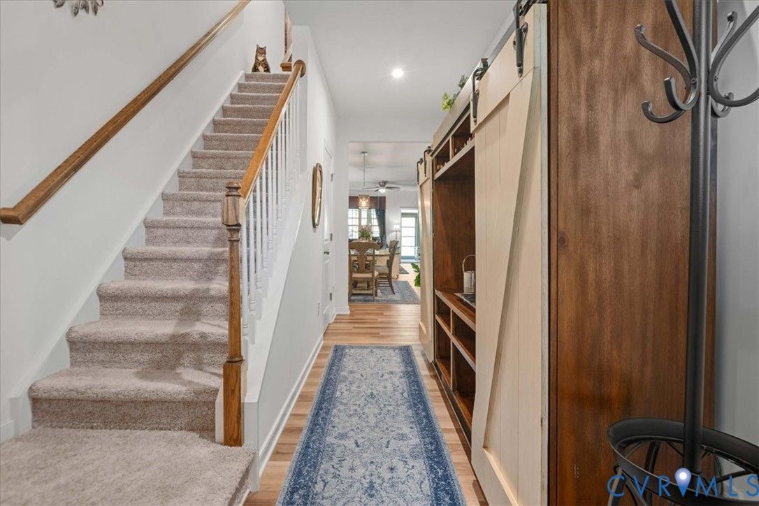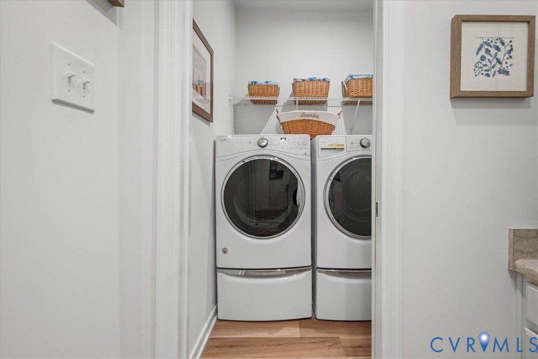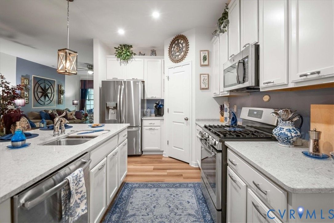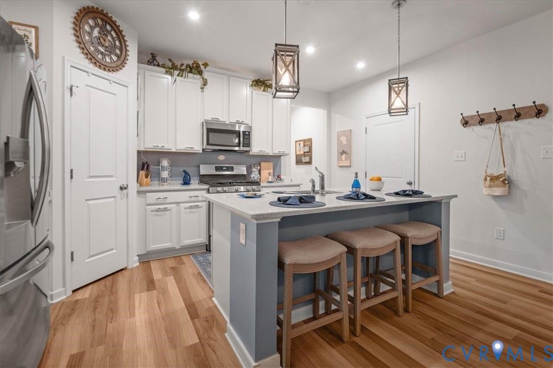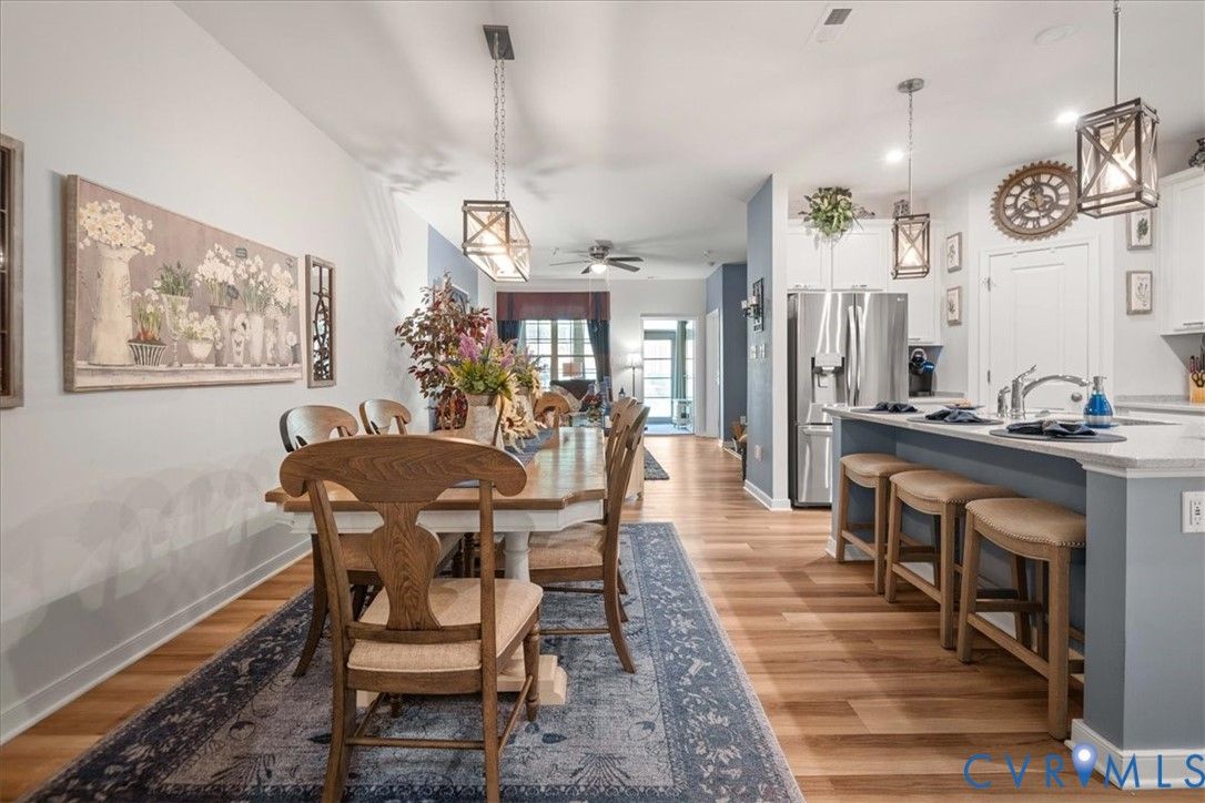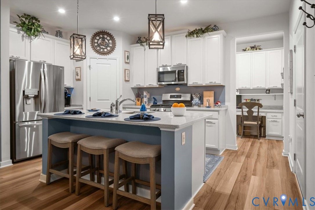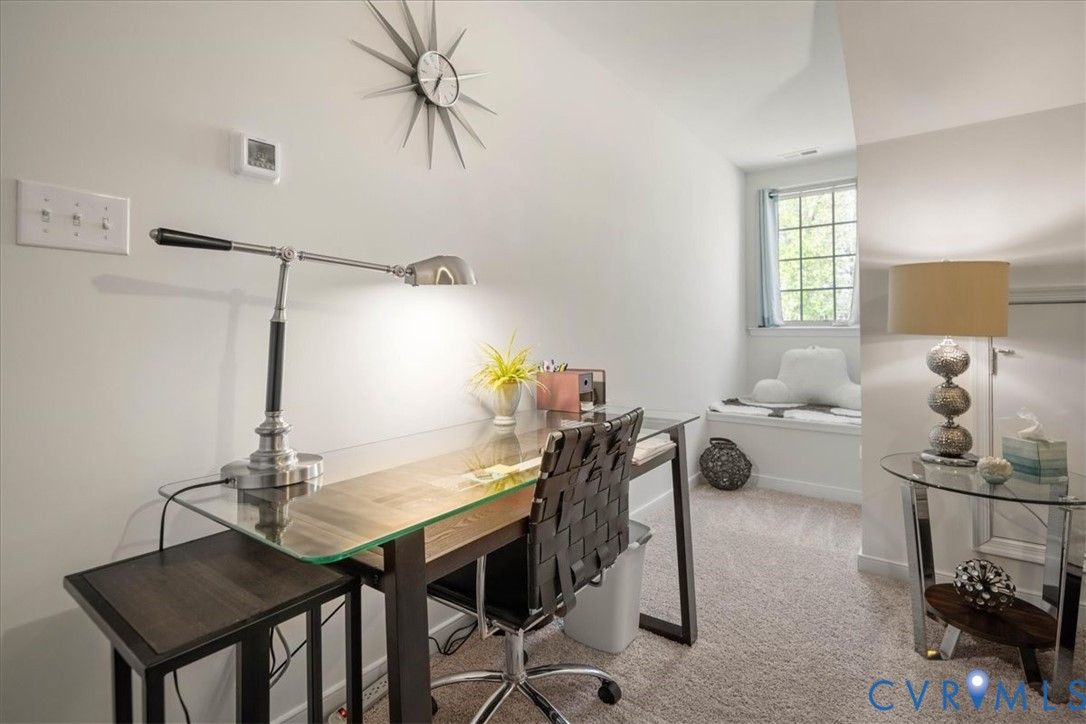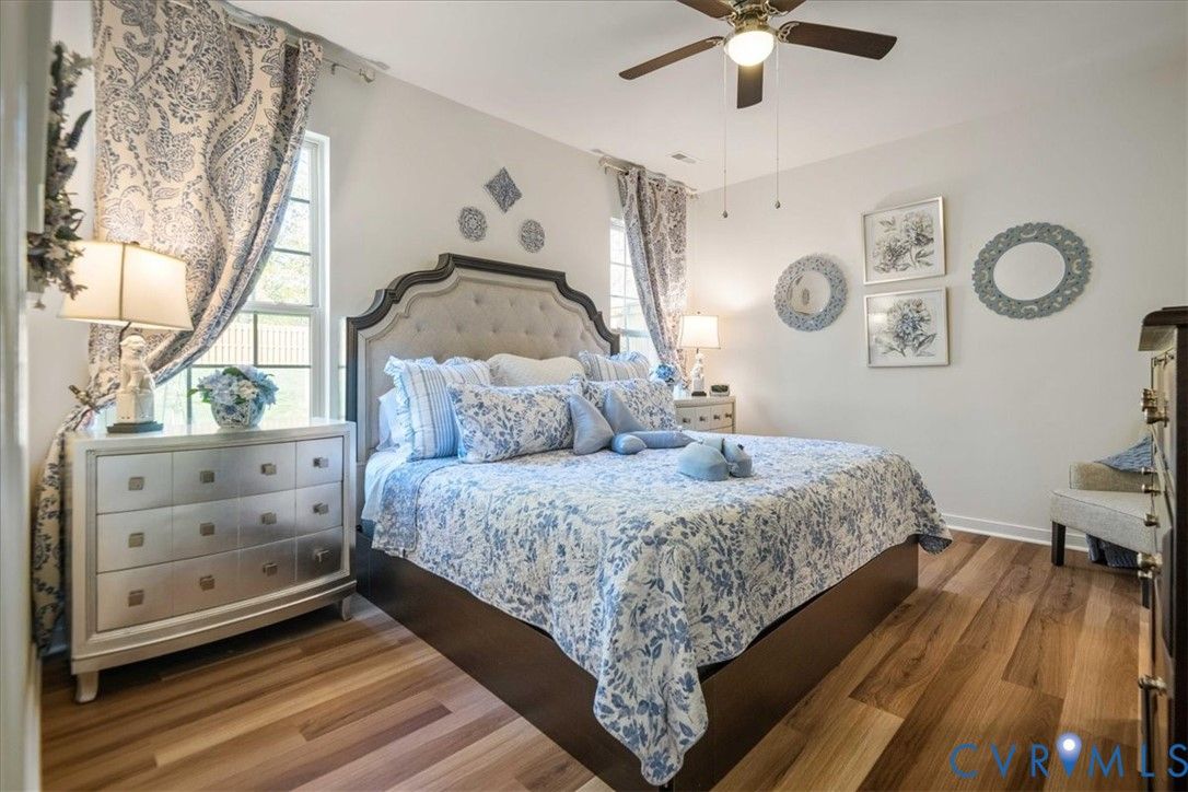 1444 Westhall Gardens is a beautifully maintained home built in 2019 in the desirable 55+ community of The Townes of Notting Place. This low-maintenance home offers a zero-step entry and level lot, with the HOA handling all exterior maintenance, including landscaping, roof, vinyl siding & trash removal. Inside, the first floor features an inviting open-concept layout where the family room with gas fireplace, spacious dining area, and gourmet kitchen flow seamlessly together, ideal for everyday living and entertaining. Just off the kitchen you’ll find a convenient laundry room, a dedicated office with built-in cabinets and file drawer, and a 2-car garage equipped with an electric vehicle charging outlet. The bright and airy kitchen impresses with an oversized island, upgraded cabinetry, a large walk-in corner pantry, gas cooking, quartz countertops, and generous bar seating. A first-floor primary suite provides privacy and comfort with its own bath featuring a dual vanity and two large walk-in closets and new LVP flooring. Additional main-level highlights include 9+ foot ceilings, recessed lighting, attractive fixtures and energy-efficient systems. Step outside to the three-season patio overlooking a private, partially fenced grassy backyard, perfect for relaxing with your favorite beverage. Upstairs, a flexible loft space and second bedroom suite offer a full bath and easy access to generous walk-in attic storage. Residents of The Townes of Notting Place enjoy two miles of scenic walking trails, a friendly outdoor pavilion with picnic area, and community gardens. The home is located just 20 minutes from downtown Richmond and minutes from shopping, restaurants, parks, golf courses, medical facilities, and major highways. With low-maintenance living and an active 55+ lifestyle, this home provides the perfect opportunity to spend more quality time with family or explore new hobbies in a vibrant, welcoming community. Schedule your tour today.