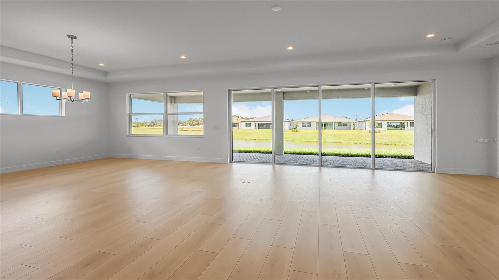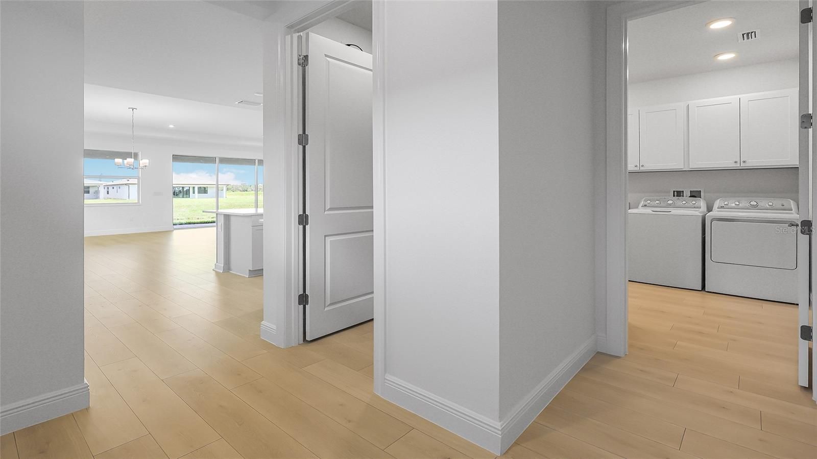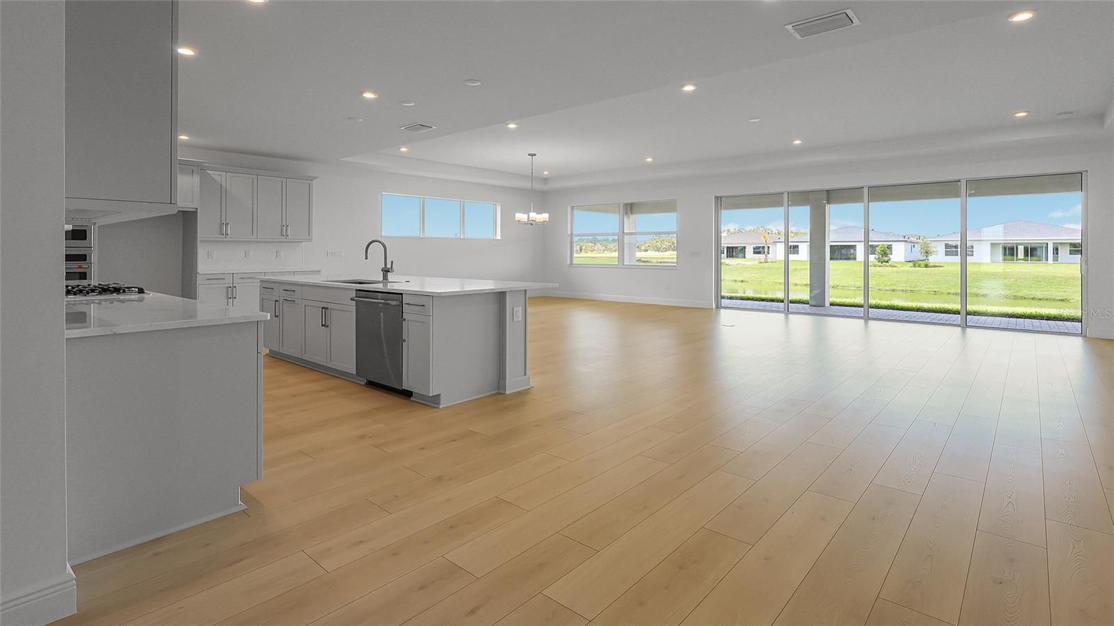 This Sarah model floorplan offers 3 Bedrooms, 3.5 Baths, Flex room for added versatility, 3-Car Garage, and is settled on a waterfront homesite. The gourmet kitchen boasts European-style cabinets, Café™ appliances, a chimney-style hood, and quartz countertops with a herringbone backsplash. A spacious great room seamlessly connects to a covered lanai through rear sliders that frame waterfront views. The lanai is pre-wired and gas plumbing rough-in, for a summer kitchen. The owner’s suite features a deluxe walk-in shower and dual vanities, with floor-to-ceiling tile in all baths. Luxury laminate flooring flows throughout the main living areas, complemented by tray ceilings, 8-ft doors. Woodland Preserve offers boutique-style living with a planned Community Center featuring a resort-style pool, hot tub, fitness and yoga studios, card and billiards rooms, pickleball and bocce courts, green space, and a walking trail.