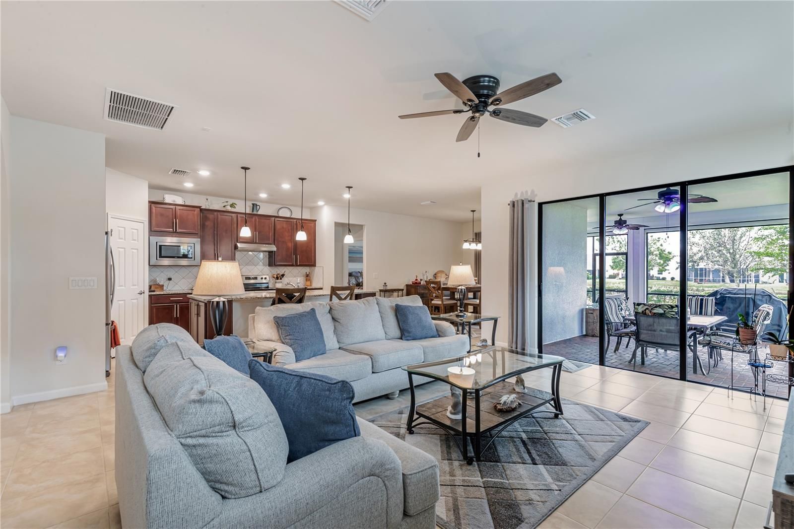 Welcome to Cypress Falls at the Woodlands, an exclusive Del Webb 55+ gated active community where refined living meets resort-style amenities. This beautifully appointed Summerwood model offers 3 bedrooms, 2 baths, and a den across 2,004 square feet of thoughtfully designed living space, enhanced by striking curb appeal. Upon entry, a grand foyer sets the tone for the home’s elegant interior. A private guest suite and adjacent guest bath feature an executive-height vanity, granite countertops, and upgraded tilework, providing comfort and style for visitors. The full-size laundry room is both functional and refined, complete with a laundry tub and abundant shelving. A versatile den offers flexibility as a home office, library, or additional guest retreat. At the heart of the home, the open-concept living area is ideal for both everyday living and entertaining. The chef’s kitchen is a standout, showcasing a large extended island, 42” upgraded dark wood cabinetry, granite countertops, and a premium appliance package, all seamlessly flowing into the living and dining spaces. Step through sliding glass doors to the expansive covered lanai, where tranquil lake views create the perfect backdrop for morning coffee or evening gatherings. The luxurious primary suite, also overlooking the water, is a serene escape, featuring a spa-inspired bath with dual vanities, granite countertops, an oversized walk-in shower with upgraded tile, and a generous walk-in closet. The extended garage offers exceptional utility with a 4-foot extension, soaring ceilings, epoxy flooring, a full-size refrigerator, and ample storage space. For added peace of mind, the home is equipped with five remote-controlled hurricane shutters on the lanai, along with easy manual shutters on the front guest room and primary bedroom windows. Cypress Falls delivers an unparalleled lifestyle with a resort-style clubhouse, sparkling pools, state-of-the-art fitness center, tennis and pickleball courts, bocce, horseshoes, and a full calendar of social events curated by a full-time activities director. With an array of clubs and opportunities to connect, this vibrant community offers something for everyone. Experience the perfect blend of luxury, comfort, and active living—this exceptional home and community truly have it all.