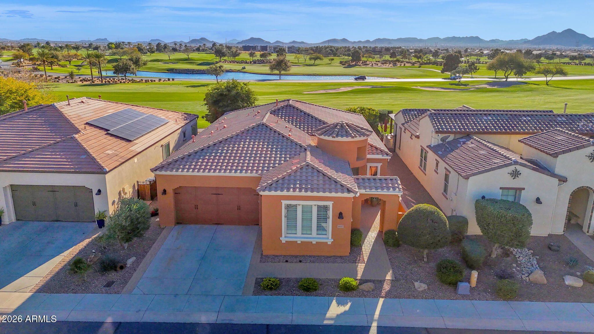 Perfectly situated on the golf course within the resort-style setting of Encanterra Country Club, this beautifully appointed Shea Homes Genova Model offers a seamless blend of indoor comfort, thoughtful design, and exceptional outdoor living—framed by expansive southwest-facing views and Arizona's unforgettable sunsets. The home features 2 bedrooms and 2.5 bathrooms, with a layout that feels both open and refined. At the heart of the home, the kitchen, is designed for everyday ease and entertaining, showcasing rich cabinetry, granite countertops, stainless steel appliances, a generous island, and elegant pendant lighting. The kitchen flows effortlessly into the main living and dining areas, creating a welcoming space for gathering and relaxation. Outdoor living is a standout feature. The covered patio functions as a true extension of the home and includes a fully equipped outdoor kitchen, making it ideal for al fresco dining while enjoying peaceful golf course views. The extended paver patio provides additional space to relax and take in the open surroundings and serene desert atmosphere. The home has been well maintained, offers neutral, timeless finishes, includes central vacuum, and reflects pride of ownership throughoutdelivering comfort, quality, and livability in every space. An added and highly valuable benefit: the sellers hold an active golf membership, allowing the next owner to move first in line should they wish to secure their own membershipan exceptional advantage within this sought-after community. This Genova Model delivers refined Arizona living with golf course positioning, beautifully designed indoor and outdoor spaces, and enduring qualityset within one of the East Valley's most celebrated lifestyle communities.