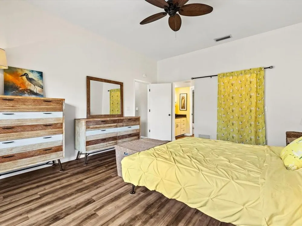 - Cathedral Ceiling(s), Ceiling Fan(s), Eat-in Kitchen, High Ceilings, Open Floorplan, Upper Level Primary, Solid-Wood Cabinets, Split Bedrooms, Walk-In Closet(s), Window Treatments