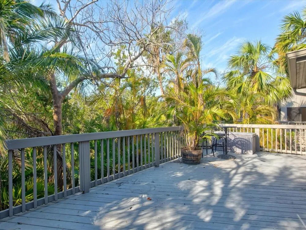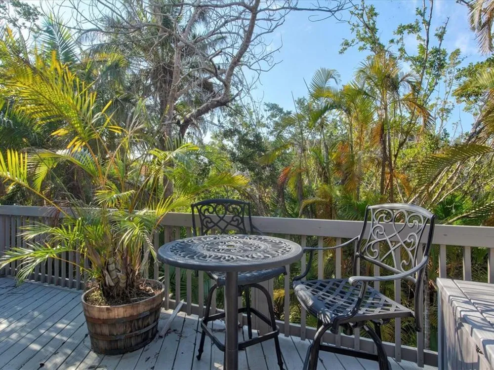 Incredible LOCATION, incredible HOME and incredible PRICE... this is the most competitive price in the treehouses and not because of condition... it is beautiful and welcoming! This welcoming treehouse is nestled in a mature Oak Hammock forest and tropical gardens, adjacent to the mangroves that line the shores of Robert's Bay, this wooden treehouse is the ultimate refuge for the frazzled spirit, an oasis that immediately soothes the senses as you enter its quiet streets and feel yourself immediately transported to a hidden paradise. One where you're in solitude, connected to nature. One in which you get to live among the trees, with a birds-eye view of the natural landscape around you, and friendly neighbors who appreciate the beauty of this unique haven as much as you do. Where you are tucked away from the hectic outside world, enjoying the constant chorus of bird calls right out your window, the calming whisper of breezes blowing through the branches, as if carrying with them all of your cares of the day. Now imagine having all of that, yet being mere minutes away from top-notch grocery and dining options, the beachfront beauty of Siesta Key, the cultural hub of downtown Sarasota, and the coastal elegance of St. Armands Circle. If the active lifestyle is your interest, the Landings Racquet Club, which includes world-class tennis, a swimming pool, jacuzzi and fitness center, is right inside the community, within easy walking distance. Or you can take it outdoors: a private nature trail, kayak launch and peaceful gazebo on the Intracoastal Waterway are all steps away from your front door. You can have it all in this one-of-a-kind Sarasota sanctuary! Come see, come sigh and make this home your own...