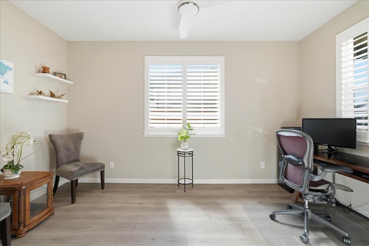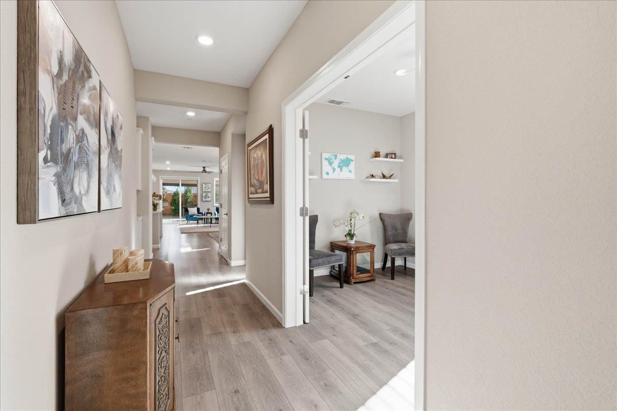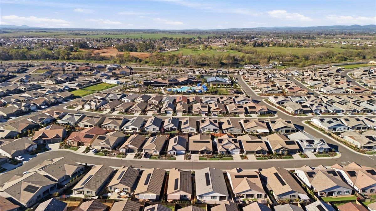Welcome to the highly sought-after Lake Model offering 1,792 sq ft, featuring 2 bedrooms, a versatile flex room, and 2 baths in a vibrant 55+ resort-style community. This beautifully maintained home showcases over $150K in builder and owner upgrades, along with plantation shutters throughout and owned solar for energy efficiency. The open-concept great room creates an inviting space for entertaining and everyday living, while the spacious primary suite offers a peaceful retreat. Step outside to your private backyard with covered patio and extended reinforced patio ready for a hot tub, plus a low-maintenance yard and charming front porch perfect for relaxing with neighbors. Enjoy exceptional community amenities including a restaurant, bar, caf, gym, fitness classes, full-service spa, two pools and hot tubs, dog park, pickleball and bocce courts, and countless clubs and social activities that make it easy to build friendships and enjoy the lifestyle you deserve. Turnkey. Stylish. Resort living at its best.