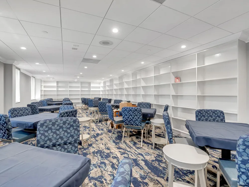 - Billiard Room, Bocce, Clubhouse, Elevator, Fitness Center, Indoor Pool, Library, Shuffleboard, Sidewalks, Tennis Court(s), Whirlpool