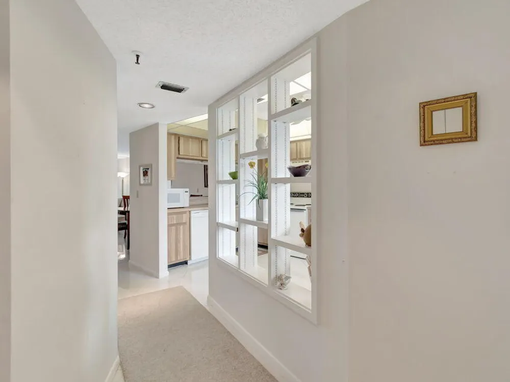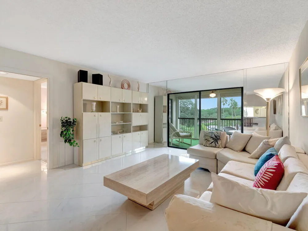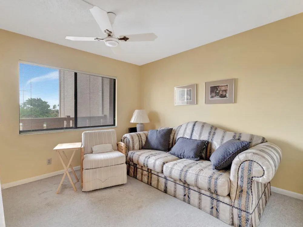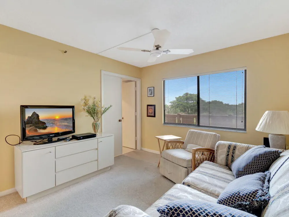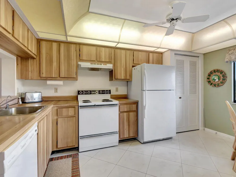 Welcome to 14475 Strathmore Ln 405, a gem in the Active ADULT COMMUNITY (55+) of Huntington Lakes in Delray Beach, FL. Step right into this sizeable Buckingham Condo model, the largest in the community. The gradual grandeur of beautiful diagonal porcelain flooring that streaks throughout the living areas emphasizes the array of significant comforts. As you progress deeper into the unit, enjoy the plush, comforting carpet underfoot in the two bedrooms, which epitomizes domestic comfort. The condominium presents an airy, broad layout. When you enter, you'll find a convenient coat closet and a dedicated linen closet in the laundry room equipped with a full-sized washer and dryer to manage your daily chores efficiently.
