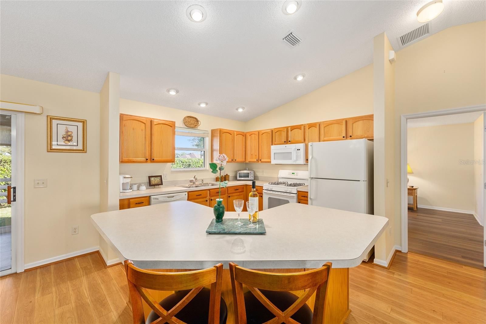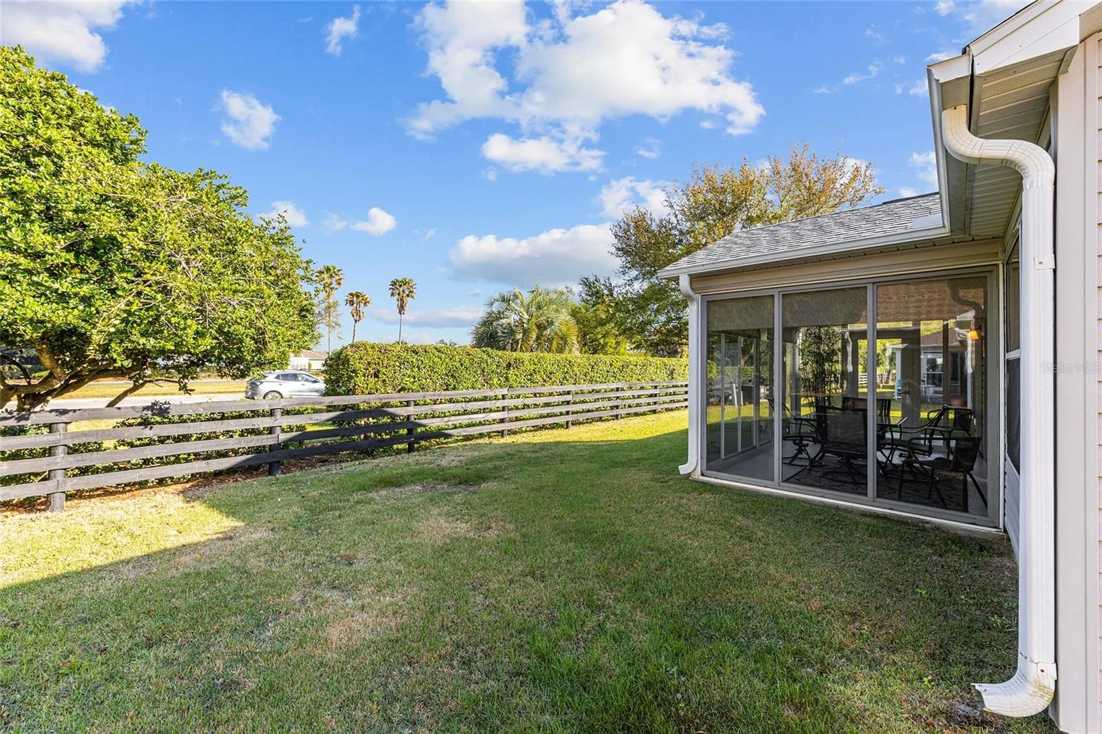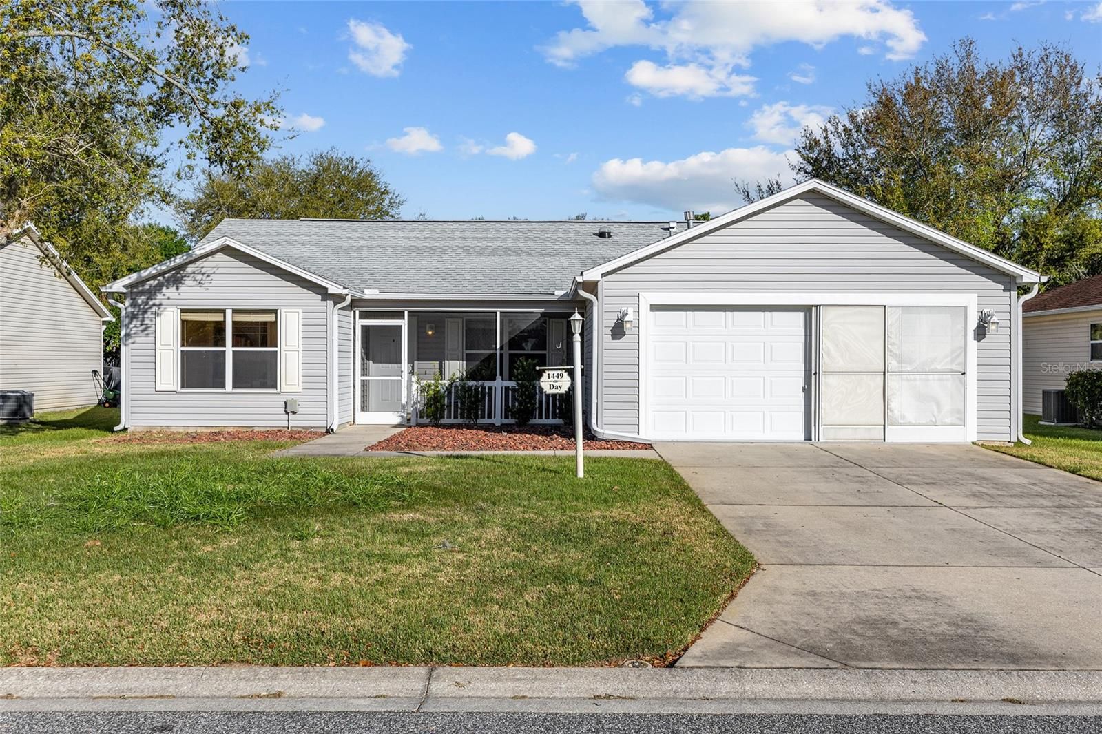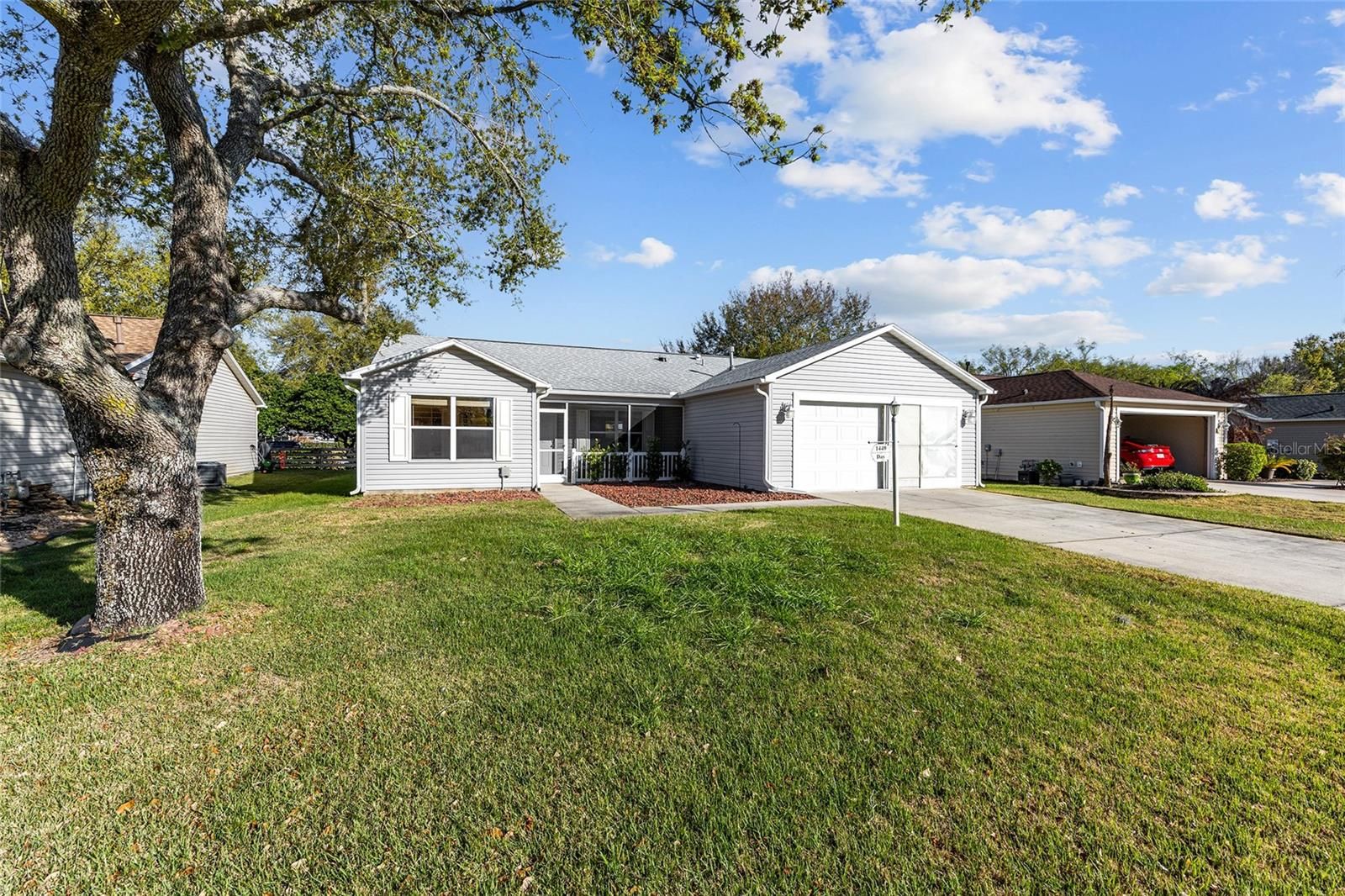 Village of Duval – Amarillo Designer Model with 3 Bedrooms, 2 Baths, Enclosed Florida Room, Inside Laundry Room and 2-Car Garage!! – TURNKEY!! -- NO HOMES BEHIND!! - Rear Privacy Hedge and Fencing maintained by The Villages ® -- Roof: 04/2024 - HVAC: Gas 2.5 Ton: 11/2018 – Screened Front Porch, Vaulted Ceiling in Living Areas, Solar Tube & Ceiling Fans – The Kitchen with Center Island and Breakfast Bar, Pull-out Shelving in Cabinets, and Window to Back yard. – Inside Laundry Room with Washer, Dryer, Solar Tube and Built-in Pantry & Shelving – Owners En Suite with Walk-in Closet, En Suite Bath with Dual Sinks, Step-In Shower, Linen Closet and Window – Guest Wing with Hall Bath, Bedroom 2 with a Built-in Queen-size Murphy Bed and Side Storage, Ceiling Fan and Closet. – Bedroom 3 with Dual Windows to Front, Ceiling Fan and Closet with Office Built-ins (no Closet Doors) – Glass Enclosed Rear Lanai with Privacy Roll-down Shades and Door to Poured Patio – Garage with Utility Sink, Irrigation System, Chest Freezer, and Attic Access. -- District 7/ Unit 145: Unit 145 Bond Assessment: $1,207.90/Yr. BOND Balance: $8,970.64. Unit 145 Maintenance Fee: $585.85/Yr. The Villages Fire: 320.71/Yr. The Villages Amenity Fee: $204/Mo. -- TURNKEY!! -- NO HOMES BEHIND!! – Don’t Miss out on this GEM of a Home so close to Seabreeze Recreation Center, 466A Shopping & Restaurants and in between Lake Sumer Landing Market Square ® & Brownwood Paddock Square ®.