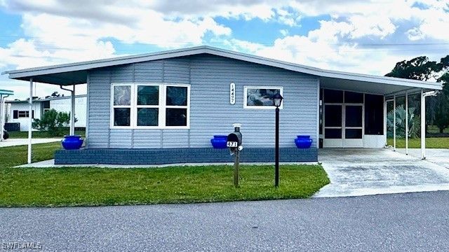 Pack your bags! This large, corner lot, 2 bedroom & 2 bathroom furnished home is in the sought after Old Bridge Village Community located on the Caloosahatchee River with Gulf Access. Old Bridge Village is a CO-OP and this home "INCLUDES A SHARE" in the CO-OP. The spacious living area boasts vinyl and tile flooring, granite counter tops with a beautiful decorative backsplash adding a touch of elegance to the kitchen. The home has many updates: remodeled in 2023 with new flooring, vapor barrier, insulation and duct work along with new washing machine; Roof replaced in 2018, Windows replaced in 2012 along with new appliances; HVAC is approx. 10 years old. With a washer & dryer conveniently located in the house laundry day will be a breeze. Other features include, Extra parking spaces, 2 screened-in Lanai areas, walk-in closets and an additional door in master bath leading to outside for safety/emergency. Old Bridge Village is a friendly, premier 55+ resident owned community with lots of amenities, activities all year, clubs and entertainment. There is a brand new large pool, hot tub, fitness center, recreation center, bocce ball, pickleball, shuffleboard, tennis, basketball, putting green, horseshoe pits, community clubhouse, kayak and boat launch and an 81 slip marina. Drive your golf cart around the community to and from your activities or to Palm Point, an 8.5-acre greenspace on the riverfront where you can fish, have a picnic, watch the boats or just enjoy the sunset. This community is a hidden gem right off the Caloosahatchee River with access to the Gulf of Mexico, just minutes by boat or car to downtown Ft. Myers and right between 2 airports with approximately 30 minutes to both Southwest Florida International Airport and Punta Gorda Airport.