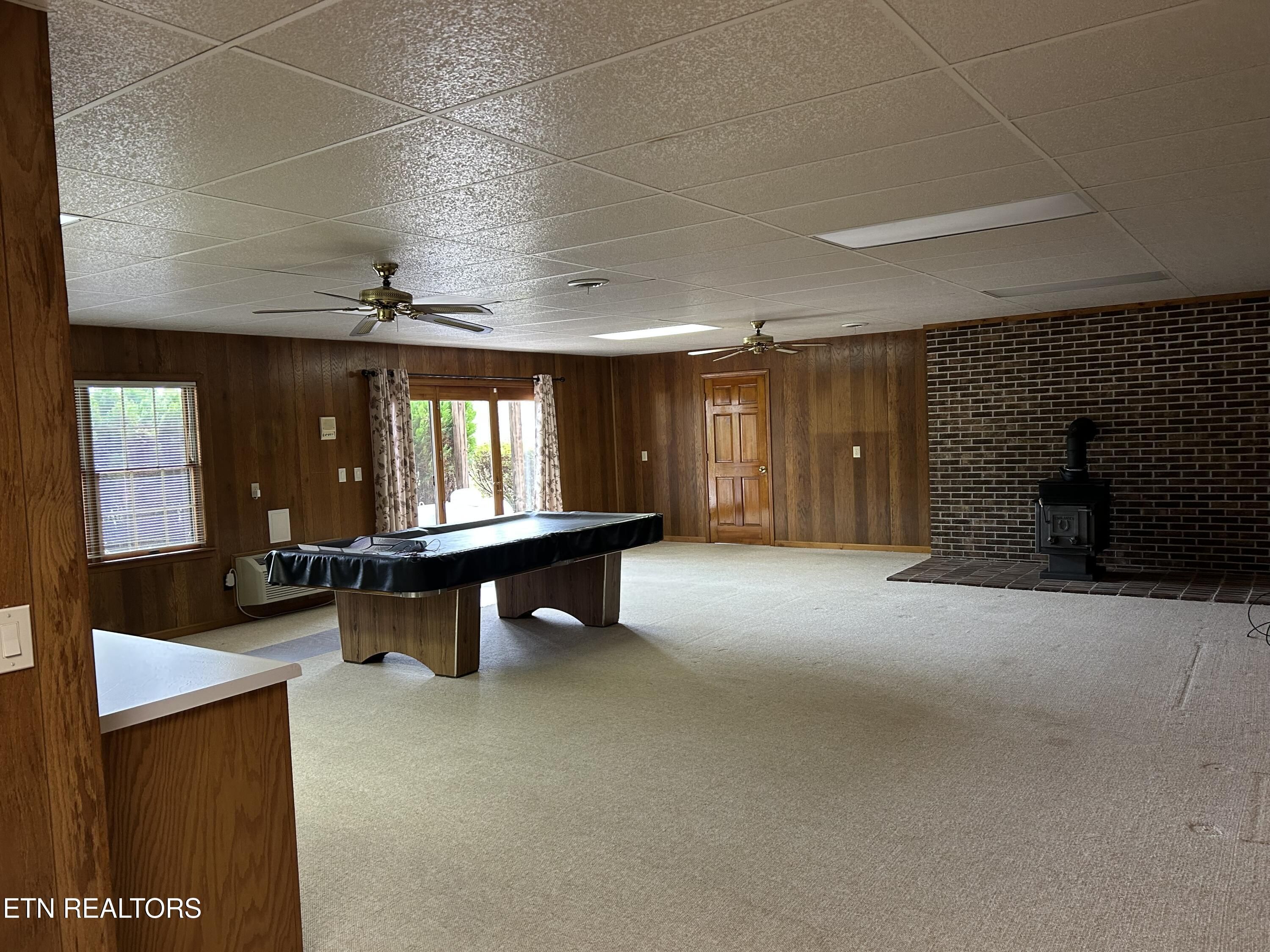 Enjoy breathtaking mountain views from all primary living areas, including the owner's suite and guest bedroom, in this impeccably maintained home nestled in the heart of Tellico Village. Designed for easy living, the main level features 3 bedrooms and 2 baths, an open floor plan, beamed vaulted ceilings, and updated luxury vinyl plank flooring throughout. The kitchen shines with new quartz countertops, New stainless appliances complemented by granite countertops in the baths. Relax on the wide screened porch while watching stunning sunrise and full-moon views. The energy-efficient design adds comfort and peace of mind. The lower level offers a spacious 24x30 recreation room—perfect for entertaining—complete with a full bath and a dehumidifier system that keeps the space comfortable year-round. The pool table and wood burning stove Convey. An immaculate, easy-care home that's truly move-in ready and ideal for retirement living. A must-see!