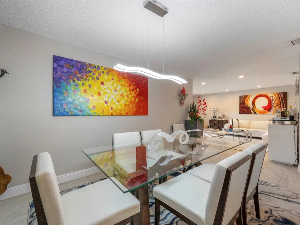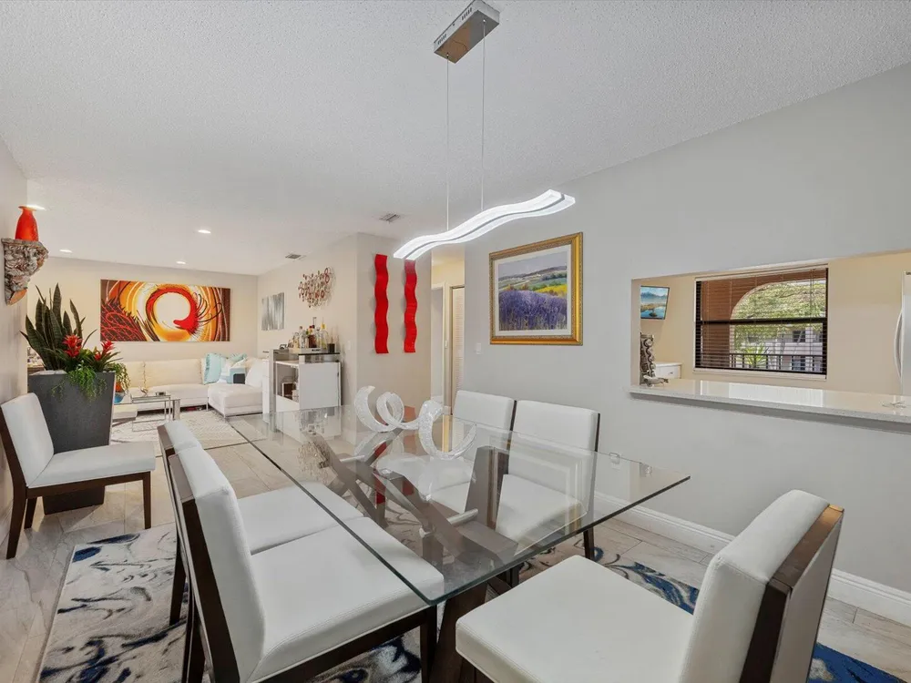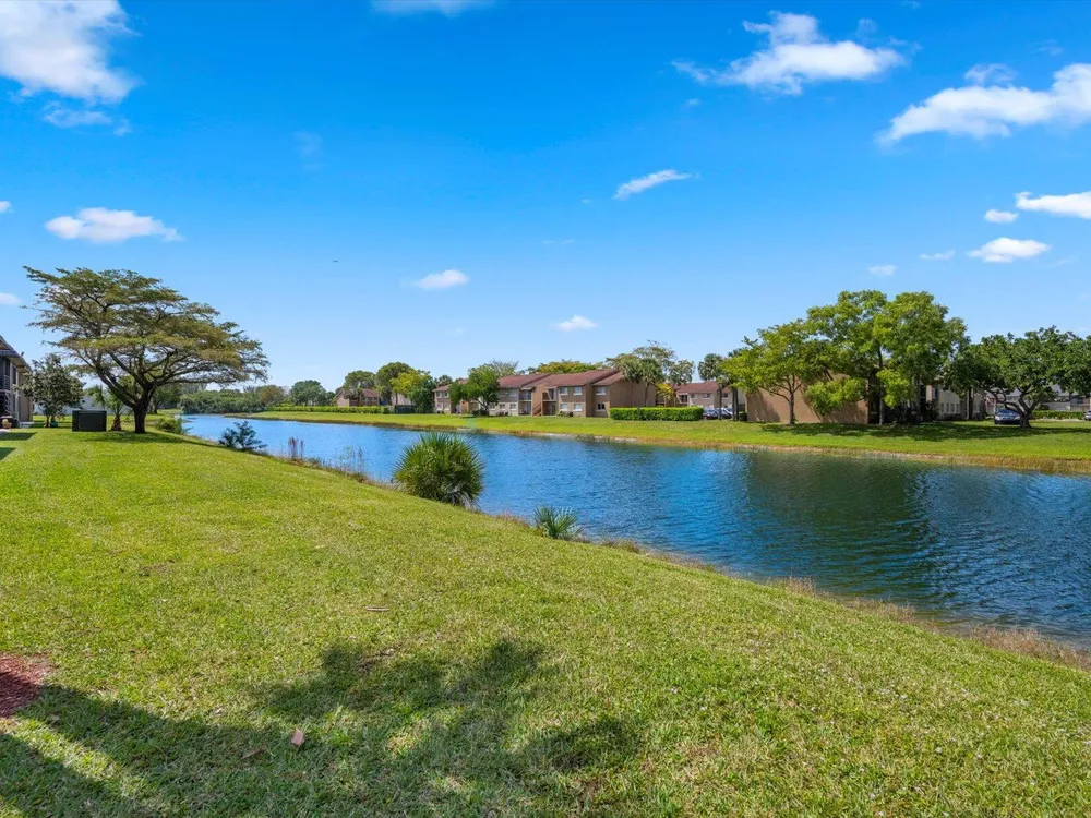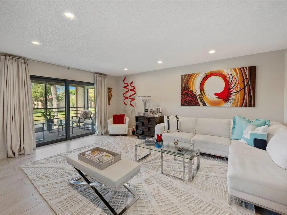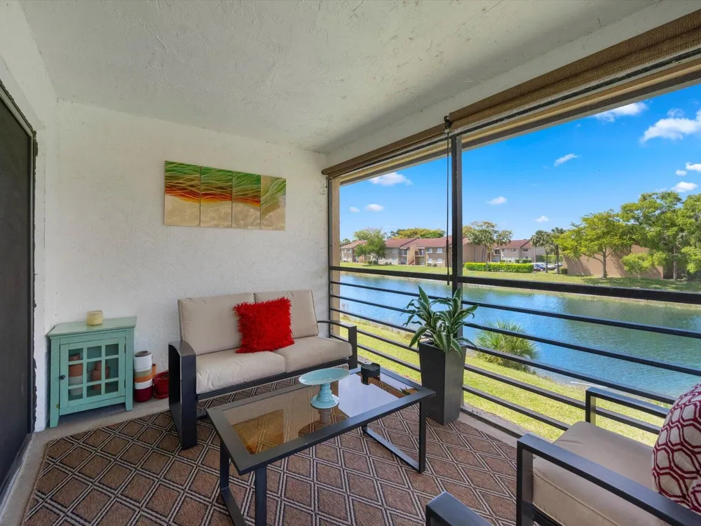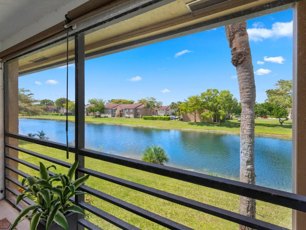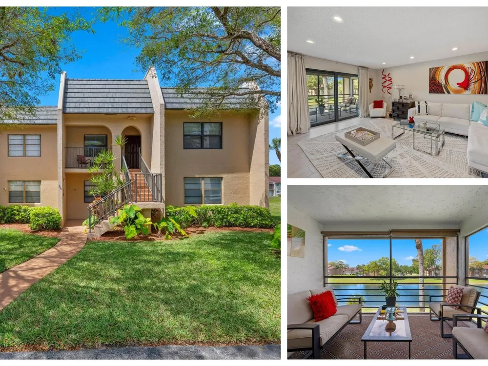 Corner unit with water views and extra natural light! IMPACT WINDOWS. Fully updated with sleek ceramic tile--NO carpet! The kitchen shines with granite counters, white subway tile backsplash, stainless LG appliances, and a pass-through to the dining area. Bright living space is ideal for relaxing or hosting. Both bathrooms are stylish and spotless. Screened balcony overlooks the water--perfect morning spot. Walk to clubhouse, pool, and more! Guard-gated 55+ community offers a cafe, gym, tennis, sauna, heated pool, hot tub, and year-round activities. One pet allowed, up to 30 lbs. Furnished by a professional designer--all furnishings negotiable. Best unit in Golden Lakes! Don't miss it!