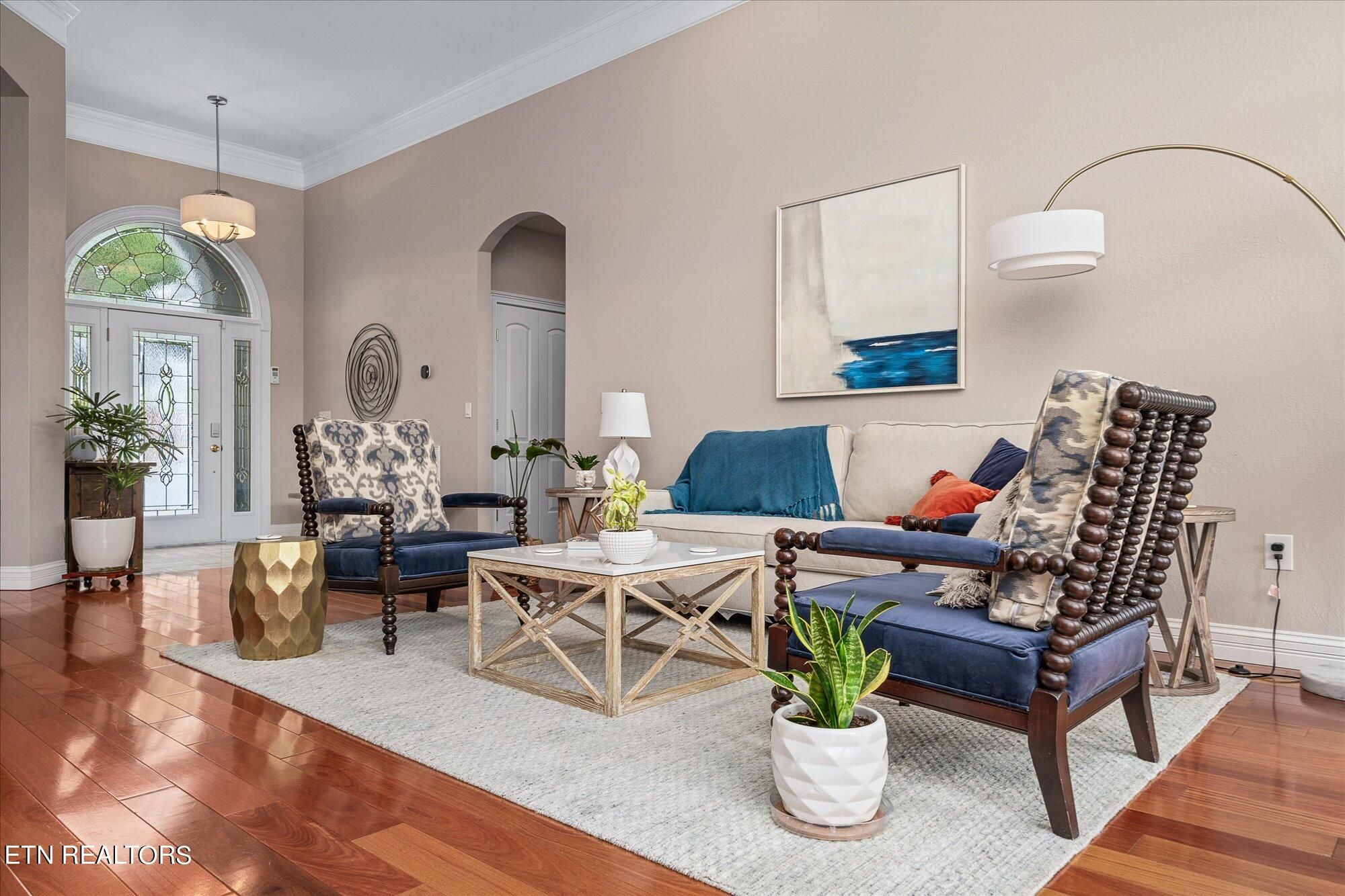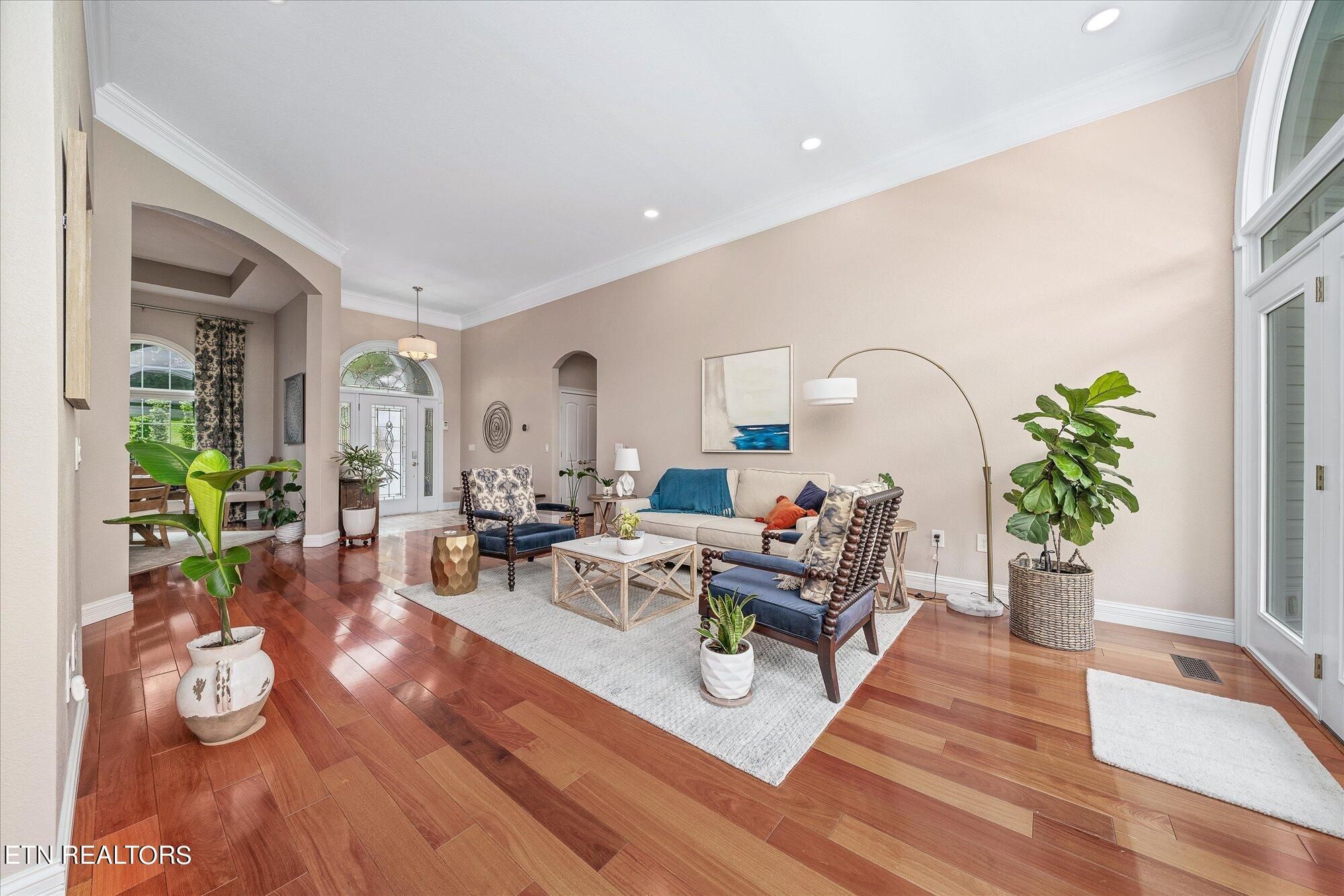 Lakefront living at its finest! This custom-built home offers everything you could need and more. The home has been meticulously maintained and remodeled by the owners. From the minute you enter the home you will appreciate the numerous architectural details. Soaring 12' and 15' ceilings, triple crown moldings, upgraded fixtures, 3/4 '' Cherry hardwood floors. Magnificent lake views from all main living areas. The foyer with marble flooring opens to formal dining area with trey ceiling and great room with cathedral ceilings. The remodeled gourmet kitchen provides an abundance of custom cabinets, quartz countertops, gas stove top with featured custom tile and pot filler. Large island with breakfast bar. Dry bar with wine cooler. Walk in pantry. Access to glass paneled deck Primary suite with 15' trey ceiling, large window overlooking lake. and access to deck. Remodeled ''spa'' ensuite with custom soaking tub, marble flooring, his and hers vanities, 2 walk-in closets. Custom tiled, glass fronted walk-in shower. Main level also provides a 1/2-bathroom, 2 spacious guest bedrooms with ensuite. Utility room with custom stable door. The upper level and bonus room with independent heat/air source installed in 2019, perfect for crafts/den or guests. Lower level with coffered ceilings throughout and commercial grade LVT flooring. Family room with wet bar, granite countertops, opens to Media room (Pool Table Conveys). Access to screened porch. Office, two large guest bedrooms and two full bathrooms. Storage room with custom barn door. Access to lower-level workshop and lake and dock. New H/A units to main level and lower level in 2019. This home is truly magnificent and must be viewed to be appreciated.!!!