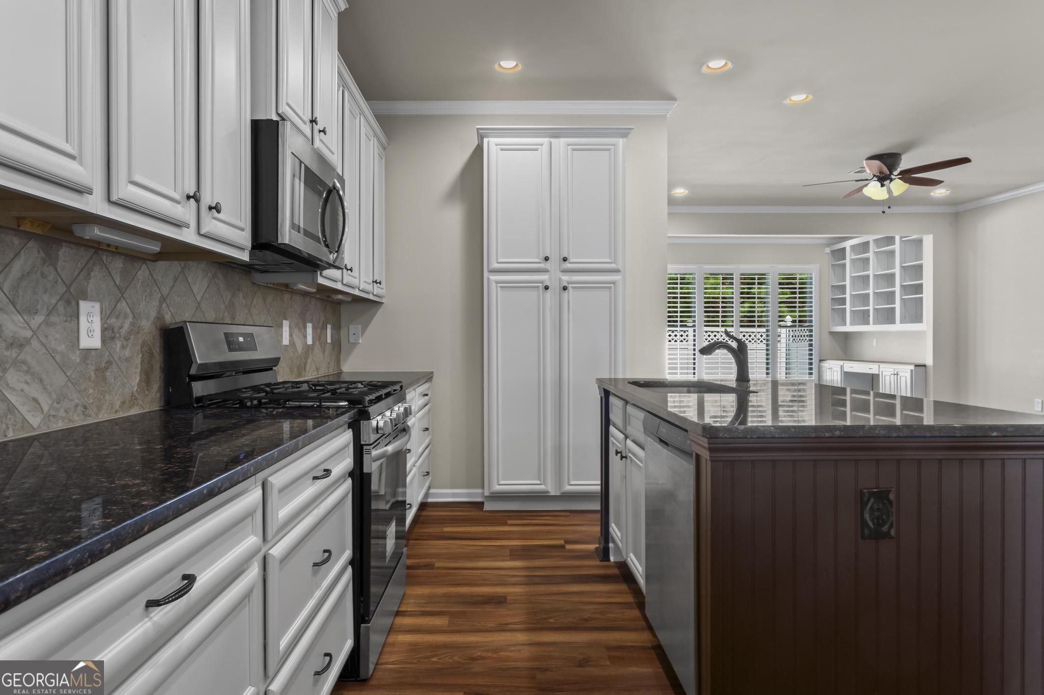 - Dishwasher, Disposal, Microwave, Range, Stainless Steel Appliance(s)