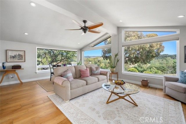 Experience coastal living at its finest in the sought-after 55+ Indian Hill community of San Luis Bay Estates in Avila Beach. Beautifully redone and extensively upgraded throughout with the guidance of a renowned interior designer, this exceptional home is framed by serene Santa Lucia Mountain views and cooled by refreshing ocean breezes, offering a rare blend of luxury, beauty, and vibrant active-adult living. A landscaped approach and attached carport welcome you home, while the charming front porch opens to a bright, open-concept interior with vaulted ceilings and abundant natural light. The spacious living room is lined with a dramatic wall of windows that perfectly captures tranquil views, creating an airy and peaceful retreat. A skylight illuminates the well-appointed kitchen, featuring abundant cabinetry, generous counter space, and a cozy breakfast bar ideal for casual mornings. The adjoining dining area provides a picturesque backdrop for every meal. Just off the main living area, a sunroom—currently styled as a home office—offers flexible bonus space and direct access to the backyard. The spacious primary suite is a private sanctuary with dual closets and an ensuite bath featuring dual vanities and a walk-in shower. A second guest bedroom, full bath, and indoor laundry room complete the thoughtful floorplan. Outside enjoy a private deck overlooking mature landscaping and citrus, creating a peaceful outdoor escape. A storage shed adds convenience and versatility. Beyond the home, Indian Hill residents enjoy exclusive access to a private clubhouse, pool, spa, and an active social calendar. And just outside the gates, endless Central Coast recreation awaits—minutes from the Avila Beach Pier, Avila Golf Resort, Sycamore Mineral Springs, Bob Jones Trail, and the renowned wineries of Edna Valley. Perfectly positioned between Pismo Beach and San Luis Obispo, this rare offering combines tranquility, convenience, and vibrant coastal living in one of the Central Coast’s premier active-adult communities. A truly exceptional opportunity to embrace the lifestyle you’ve been dreaming of.