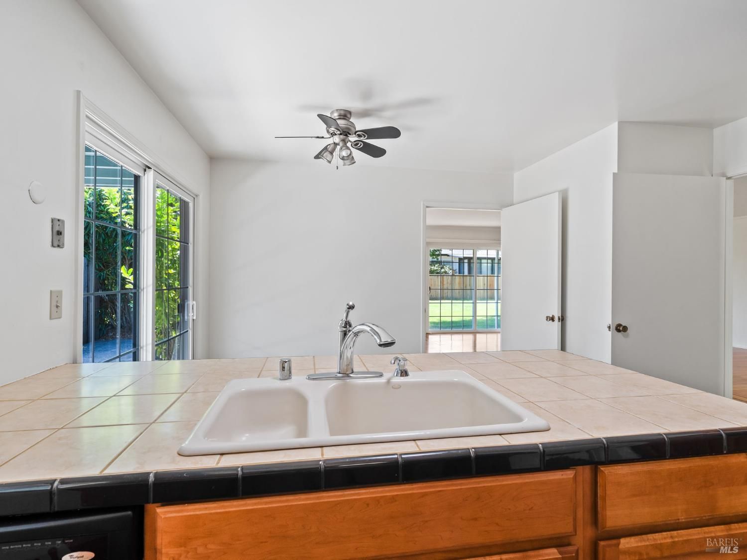 Attractive single-level home in the sought-after 55+ adult community of Temelec in Sonoma. Ideally situated on a quiet cul-de-sac, this home offers a sensible, light-filled layout with spacious and inviting living areas. The living room--complete with a cozy fireplace--and adjacent dining area feature beautiful hardwood floors and are brightened by an abundance of windows. The kitchen has been updated with tile flooring and countertops, a gas cooktop, and includes an eat-in breakfast space with a bar counter and direct access to a covered patio. A large primary bedroom includes a walk-in closet and an en-suite bathroom with a classic tiled stall shower. The entire house has been freshly painted, and new carpet has been installed in both bedrooms. Outside, there's an expansive, sunny, and fenced front patio surrounded by roses and garden beds. This home is in an excellent location within the development and close to Temelec's many amenities, including walking trails, the historic clubhouse, a heated pool, a dedicated fitness room, and more--all within a short drive of downtown Sonoma.