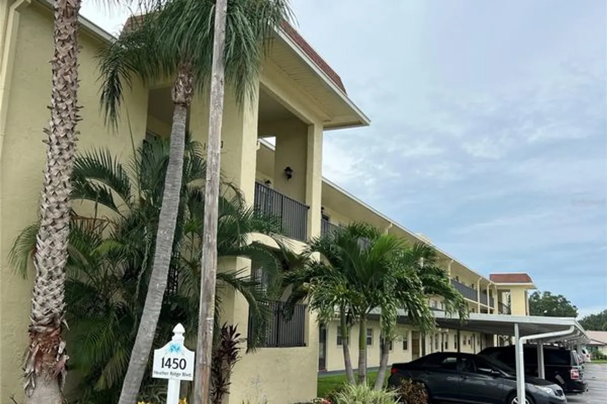 Nicely maintained 2 Bedroom, 1 Bath condo In the Heather Ridge 55+ community. located in an X flood zone in a fully funded condo association that has made substantial improvements since 2015 such as roof, balconies, walkways, elevator modernization. All Milestone and Structural inspections have been completed and no assessments nor monthly maintenance fees in 2026 are anticipated. The condo has an eat-in Kitchen, split bedroom plan, elevator access, community pool nearby. The outdoor balcony overlooks a serene and beautiful community lake and quiet greenery. The Dunedin location offers everything you could look for in a Florida getaway. Enjoy nearby causeway beaches and infamous Honeymoon and Caladesi Islands State Parks, golf, marina, Fine Art center, Community Center, Hale Activity Center, Toronto Blue Jays baseball stadium, restaurants, breweries, festivals with an easy commute to Tampa, International Airport and cruise Lines and the Tampa arts, entertainment and sports teams and venues. Condo can be purchased mostly furnished including a space saving Murphy Bed. Condo fee includes building exterior maintenance and insurance, water, sewer, trash, cable, internet, No Pets, one car. Come live the true Florida lifestyle.