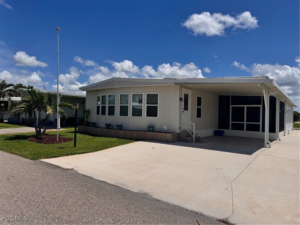 Waterfront Community and Fabulous And Fun Lifestyle at an AMAZING Value. Make an offer! This home was remodeled after Ian, including New AC Ducts, Subfloors, and a Vapor barrier, which were fully mitigated: A Brand New, HUGE pool and spa, Entertainment, and activities. Launch your boat & enjoy the best fishing, boating, and sailing in SW Florida! Plenty of outdoor living space is surrounded by an attractively landscaped yard. Gorgeous New laminate flooring throughout. Screened in Tiki Lanai. A huge oversized Shed for Golf Cart parking, Motorcycle, toy storage, etc.. The driveway, beautifully decorated by Garage Floor Pros, sparkles in the sunshine and is skit/slip resistant. Cart Path allows easy access to the rear of the property to access the double shed door for easy Cart storage. This light and bright home exudes coastal charm and appeal right down to the piling mailbox stand. A laundry room was added to the main bedroom, making laundry as easy as can be. The large front room is light and bright and offers an alternative living area with flex space available for office, additional guest entertainment, engage friends and neighbors on the shuffleboard, tennis, or pickleball courts, immerse yourself in nature at Palm Point a 9-acre waterfront village.. Discover this hidden gem in N Ft Myers. Just 5 minutes to midtown Fort Myers and ALL the fabulous entertainment, theater, live music, delicious dining cuisine, and the amazing Riverfront park.
