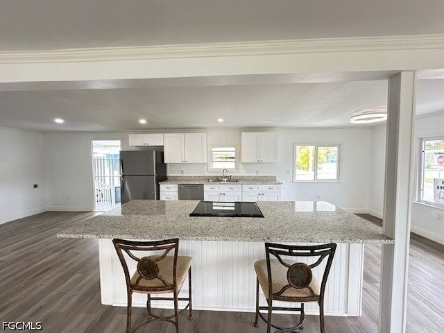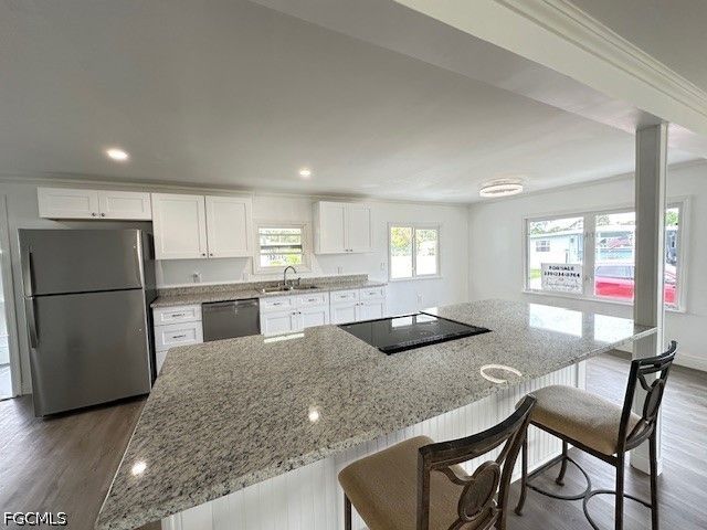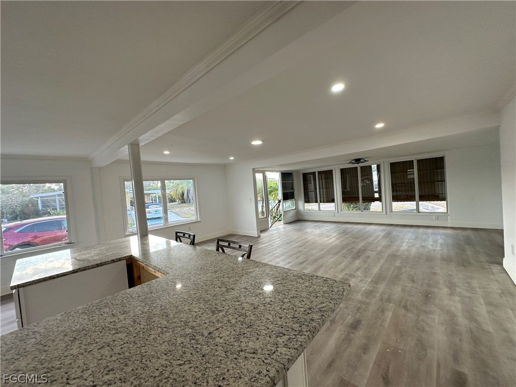 Move into a home that feels like brand-new construction in the highly desirable, gated 55+ waterfront community of Old Bridge Village in North Fort Myers. This beautifully remodeled 2-bedroom, 2-bath home offers 1,304 square feet of modern, open living space on a corner lot, with all renovations completed with permits. Inside, you’ll find tile floors in both bathrooms, tiled shower enclosures, and a stunning kitchen featuring granite countertops, a large island, and new soft-close cabinets. The open great-room design is ideal for entertaining, while the screened lanai provides a relaxing space to enjoy Florida living. Interior laundry, covered parking, and a rear golf cart driveway add everyday convenience. Old Bridge Village offers an exceptional lifestyle with a guarded gate, marina with Gulf access, community boat dock and ramp, fishing pier, pool and spa, clubhouse, fitness center, pickleball and tennis courts, bocce, billiards, walking paths, and more. Cash only. Available for immediate possession at closing.