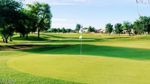 *AMAZING HOME IN SPRINGFIELD 55+ GOLF COMMUNITY!!** Your New Home is perched steps away from the Golf Course in this Guard Gated community & just loaded with Amenities! Your Perks include 2 Pools, Pickleball Courts & a Top Notch Golf Course. The Rec Center offers Classes, Social Events, Billiard Room, Clubs, Poker Room, Creative Arts, Gym, Fitness Groups and More!!! This Gem has been meticulously kept & features an Open Floorplan with Newer Exterior Paint, Newly Remodeled Master Bathroom, New Carpet, New Water Heater, Newer AC(7yrs) & Laundry Room (washer/dryer incl.). Your Kitchen has plenty of cabinets, island & all appliances are included. The backyard has and extended covered patio for BBQ & Lounging plus some beautiful desert landscape to enjoy while you soak up the AZ Sunsets. This is the perfect place to be active, make new friends and enjoy the Good Life!