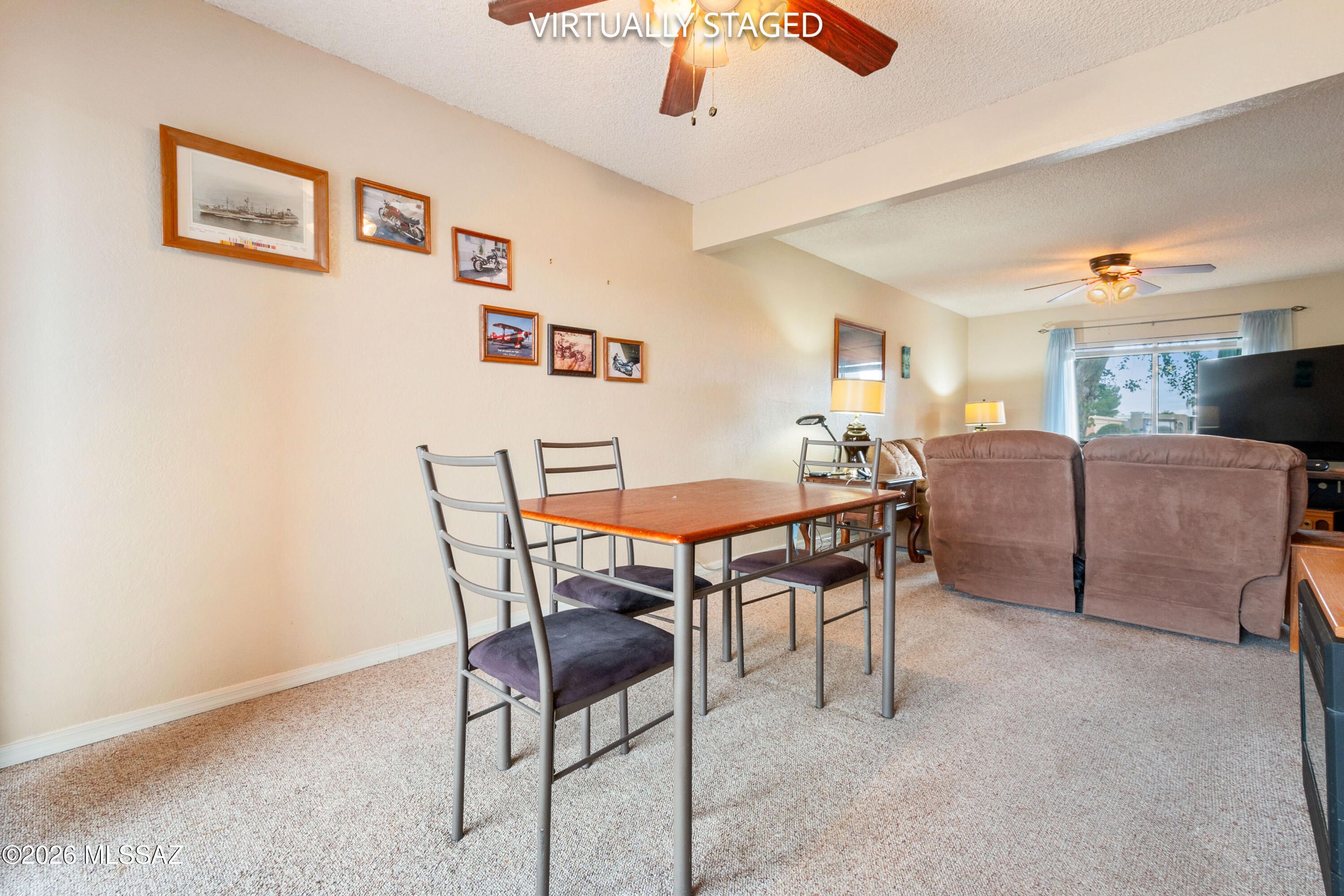 Charming home perfect for active 55+ retirees in Green Valley, AZ's premier retirement haven! On a spacious corner lot with mature desert landscaping, iconic saguaros, and stunning Santa Rita Mountain views. Enjoy low -maintenance living with concrete floors, ceiling fans, walk-in closets, and an extended covered patio for year-round outdoor relaxation in the mild desert climate. Move-in ready with recent updates--ideal for snowbirds or full-time residents seeking affordability and ease.Green Valley offers the ultimate active lifestyle: Join Green Valley Recreation (GVR) for access to 13+ centers with pools, fitness, pickleball, tennis, clubs, classes, arts, and events. Nearby golf courses, hiking in Madera Canyon, birdwatching, and vibrant social scene await. Close to shops and dining.