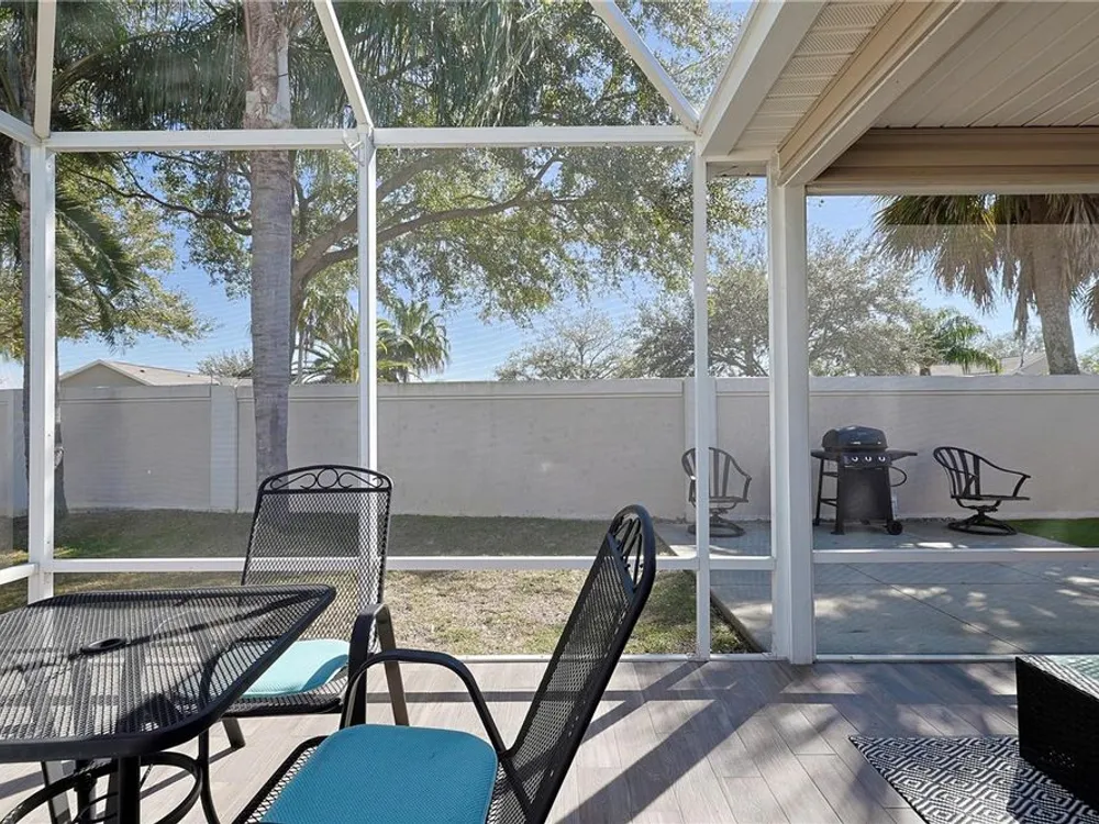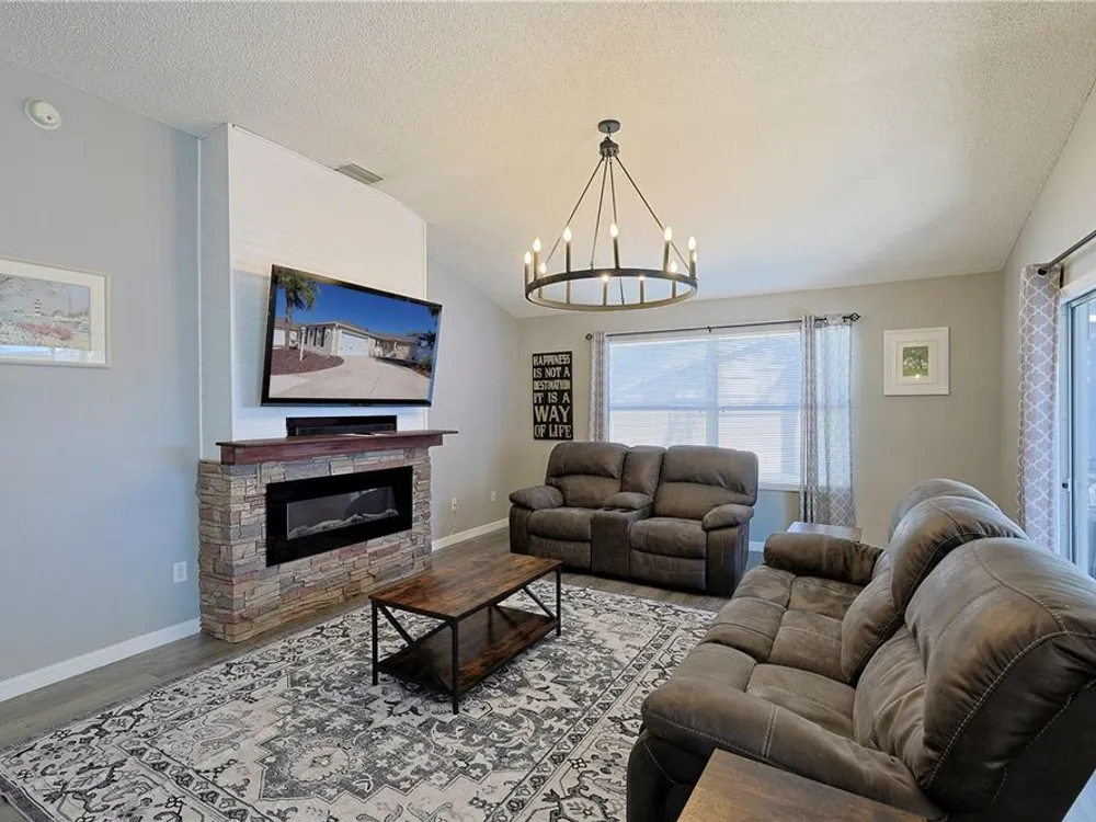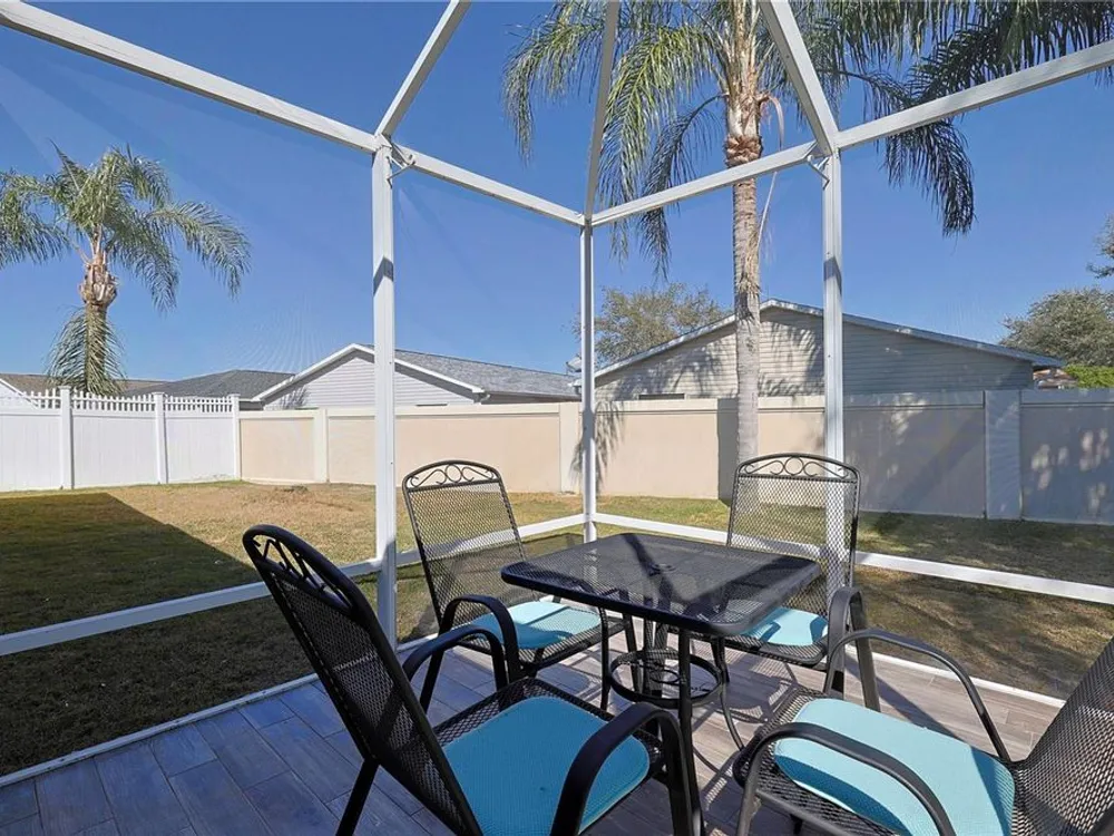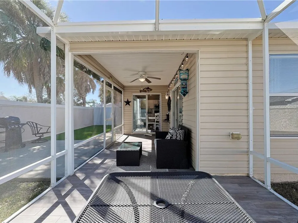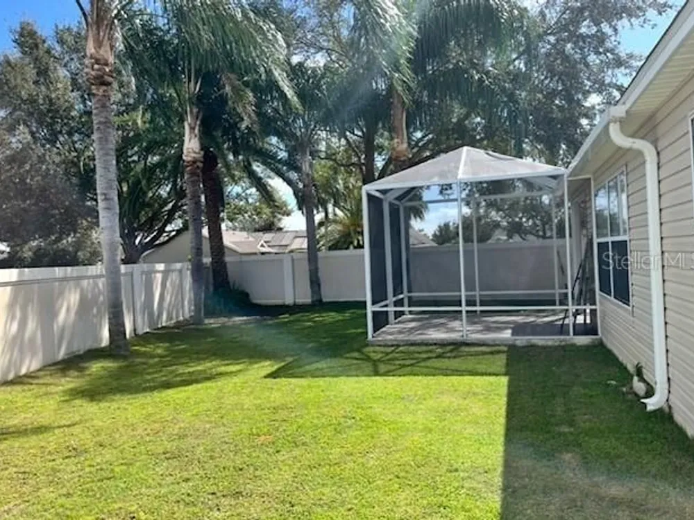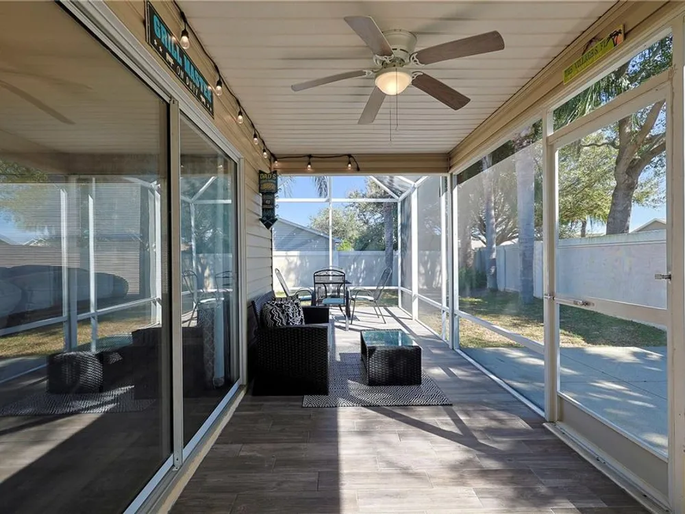 This charming 3-Bedroom, 2-Bath Courtyard Villa offers the perfect blend of comfort, style, and convenience. Nestled in the sought-after Village of Duval, this property provides a peaceful retreat while being close to all the amenities you need. The bright and airy open concept living room, featuring large windows that flood the space with natural light, and creates an atmosphere perfect for both relaxing and entertaining. This home also has Luxury Vinyl plank flooring throughout. The kitchen boasts stainless steel appliances, Quartz countertops, ample cabinet space, and an island, making it ideal for home cooks and gatherings. The primary bedroom features a generous walk-in closet and an ensuite bathroom with a glass enclosed shower, and dual vanities. The two Additional Bedrooms are perfect for family, guests, or a home office. Enjoy the private, serene, low-maintenance backyard with a beautiful screened in and newly tiled lanai. This patio is ideal for morning coffee, shady late afternoon barbequing, or just enjoying the Florida sunshine with ROOM FOR A POOL. The villa includes a spacious garage with room for your car as well as a golf cart. Located in a quiet, well-maintained community, this villa is just minutes from shopping, dining, recreation centers, and golf. It is located between Lake Sumter Landing and Brownwood Paddock Sqaure, perfect for anyone looking to enjoy all the Villages. This villa is ideal for anyone looking for a low-maintenance lifestyle in a charming neighborhood. Whether you're a first-time buyer, downsizer, or Snowbird this home checks all the boxes. Don't miss out—schedule your private showing today! NEW ROOF NEW HOT WATER HEATER NEW WASHER & DRYER