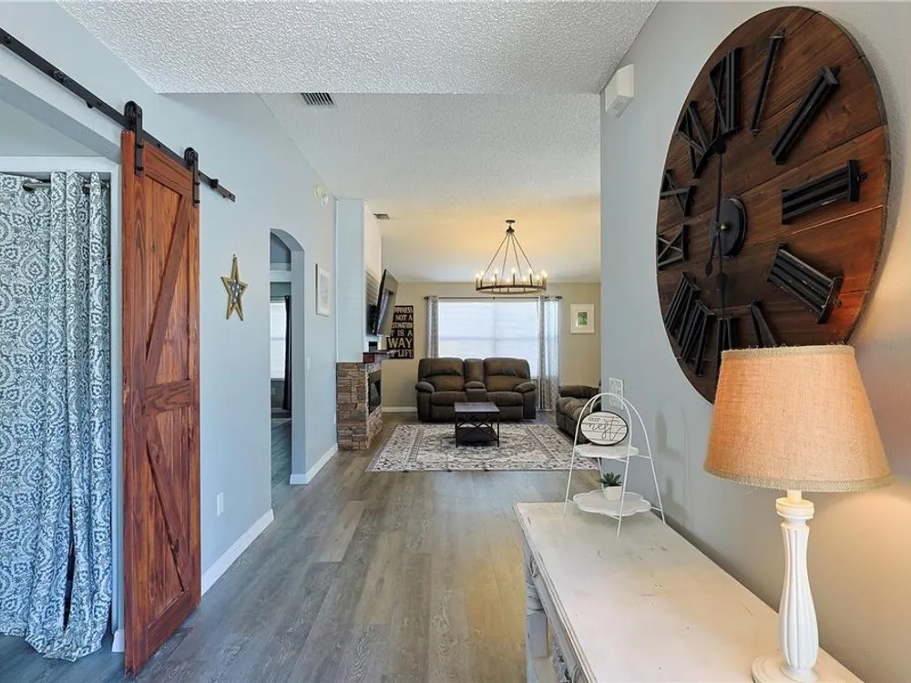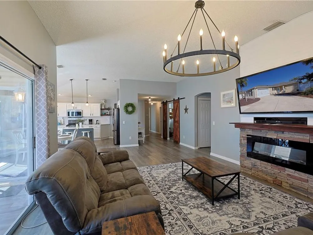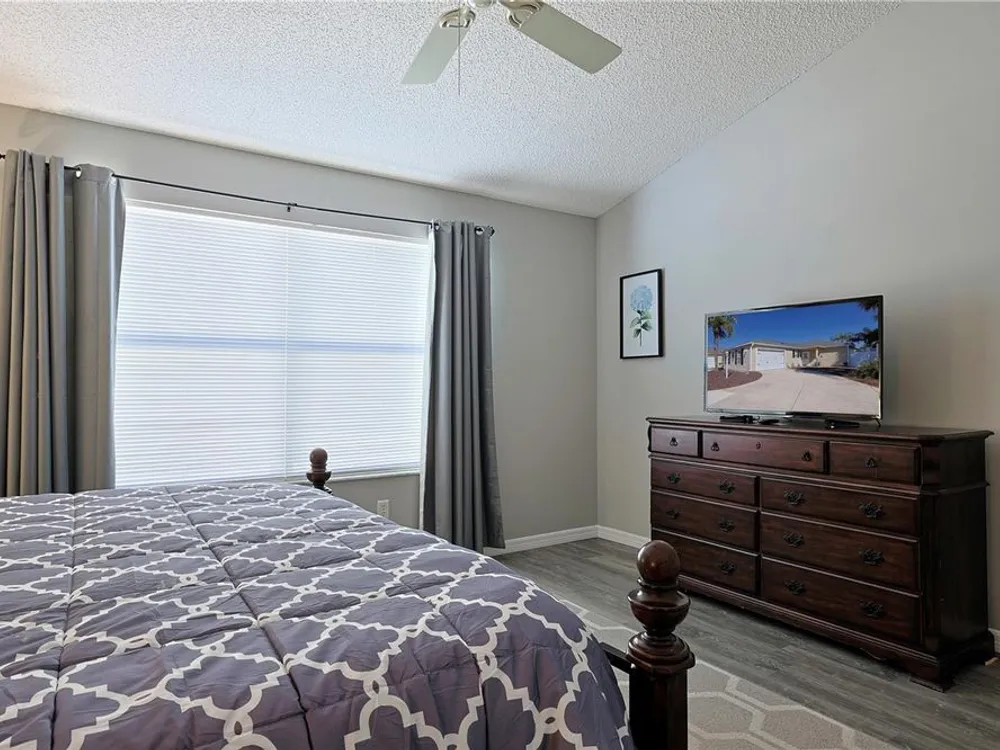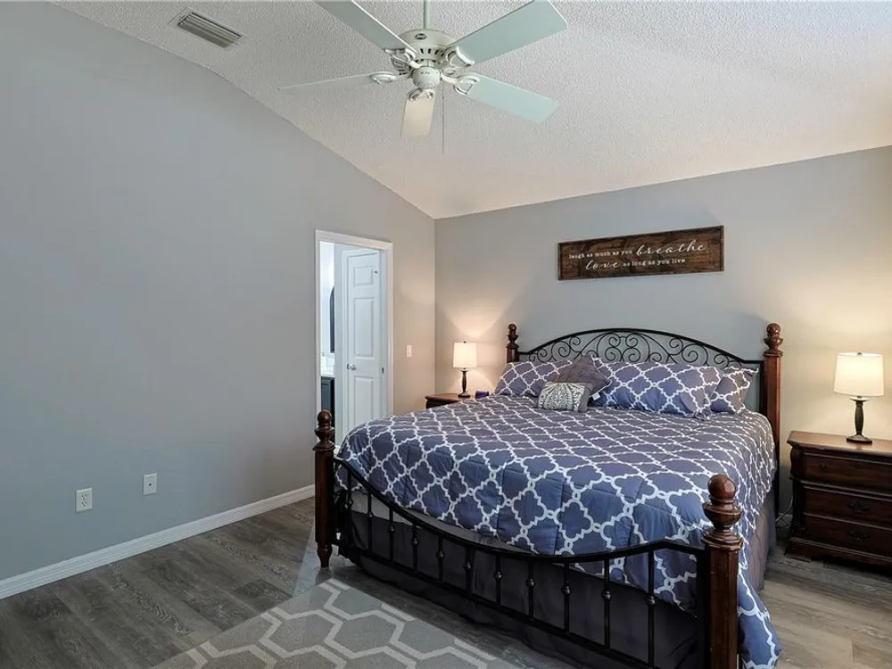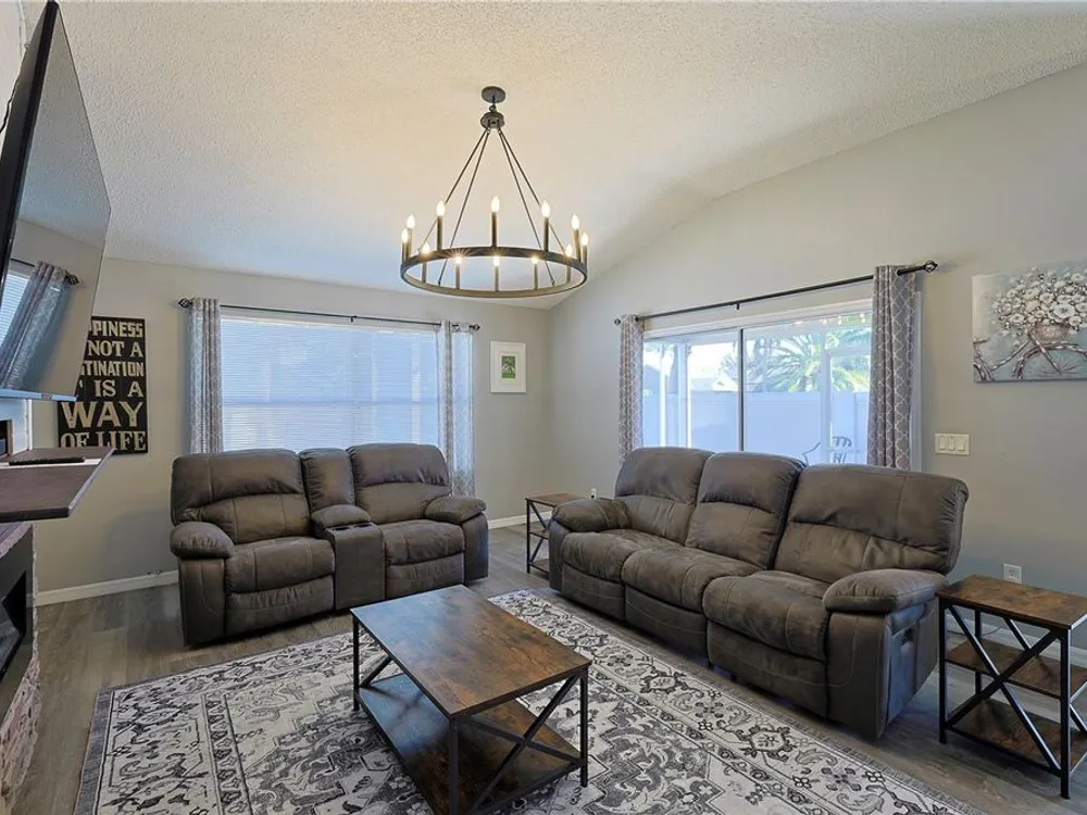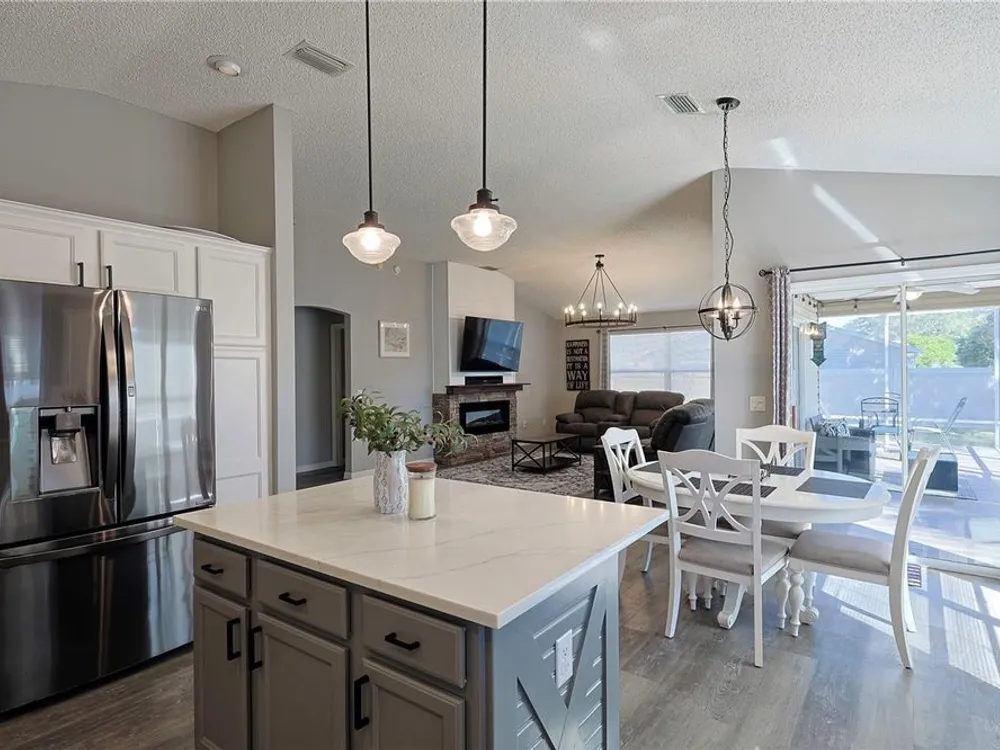 This charming 3-Bedroom, 2-Bath Courtyard Villa offers the perfect blend of comfort, style, and convenience. Nestled in the sought-after Village of Duval, this property provides a peaceful retreat while being close to all the amenities you need. The bright and airy open concept living room, featuring large windows that flood the space with natural light, and creates an atmosphere perfect for both relaxing and entertaining. This home also has Luxury Vinyl plank flooring throughout. The kitchen boasts stainless steel appliances, Quartz countertops, ample cabinet space, and an island, making it ideal for home cooks and gatherings. The primary bedroom features a generous walk-in closet and an ensuite bathroom with a glass enclosed shower, and dual vanities. The two Additional Bedrooms are perfect for family, guests, or a home office. Enjoy the private, serene, low-maintenance backyard with a beautiful screened in and newly tiled lanai. This patio is ideal for morning coffee, shady late afternoon barbequing, or just enjoying the Florida sunshine with ROOM FOR A POOL. The villa includes a spacious garage with room for your car as well as a golf cart. Located in a quiet, well-maintained community, this villa is just minutes from shopping, dining, recreation centers, and golf. It is located between Lake Sumter Landing and Brownwood Paddock Sqaure, perfect for anyone looking to enjoy all the Villages. This villa is ideal for anyone looking for a low-maintenance lifestyle in a charming neighborhood. Whether you're a first-time buyer, downsizer, or Snowbird this home checks all the boxes. Don't miss out—schedule your private showing today! NEW ROOF NEW HOT WATER HEATER NEW WASHER & DRYER