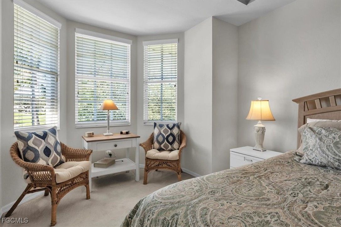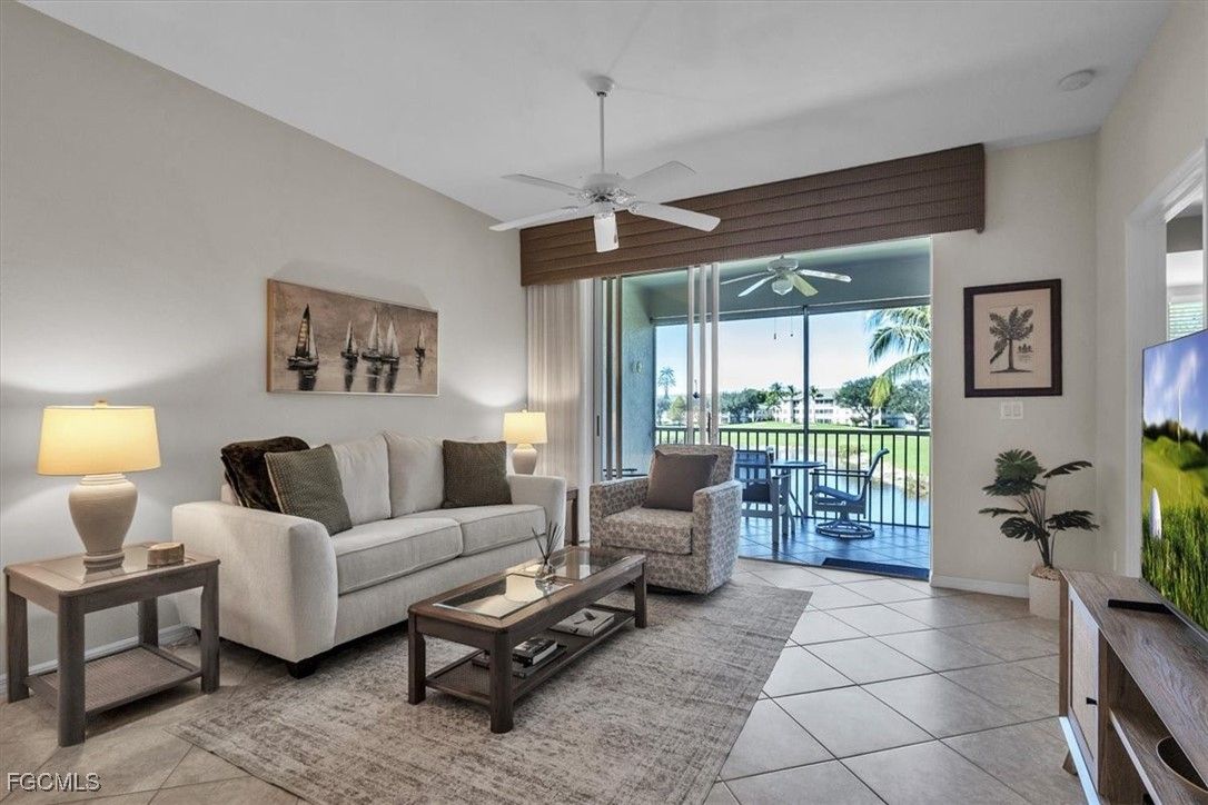 Charming top floor condo with stunning water and golf course views!! Nicely decorated and offered Turnkey. Newer appliances, custom light fixtures, maple cabinetry, a tiled living room and a lovely front and back outdoor sitting area to relax on and enjoy the Florida sunshine or breathtaking sunsets. Spacious master bedroom with bump out for an additional sitting or desk area. Nicely located in the desirable neighborhood of Wellington which is only a short stroll to the Clubhouse and pool. This beauty comes with a garage that's great for extra storage and to have your own grill and vehicle which you can have peace of mind leaving here year round. This is a Social Membership home with no worries of high golf fees, yet plenty of local golf courses around to play at your own leisure. The Legends is a prestigious private country club offering tennis, pickle ball, bocce, an exercise facility w/ tons of classes to choose from, everything from Zumba and Pilates to Yoga and Water Aerobics. Multiple dining options such as fine dining, casual sports pub and a gorgeous outdoor sunset grill located aside a lagoon style pool with a waterfall. Conveniently located close to shopping, dining, I75 and Fort Myers International Airport. Resort Style living to it's finest move in ready and waiting for you to call it home!!