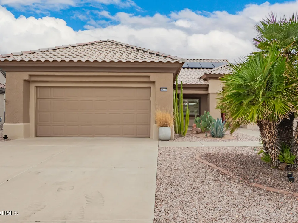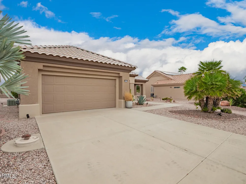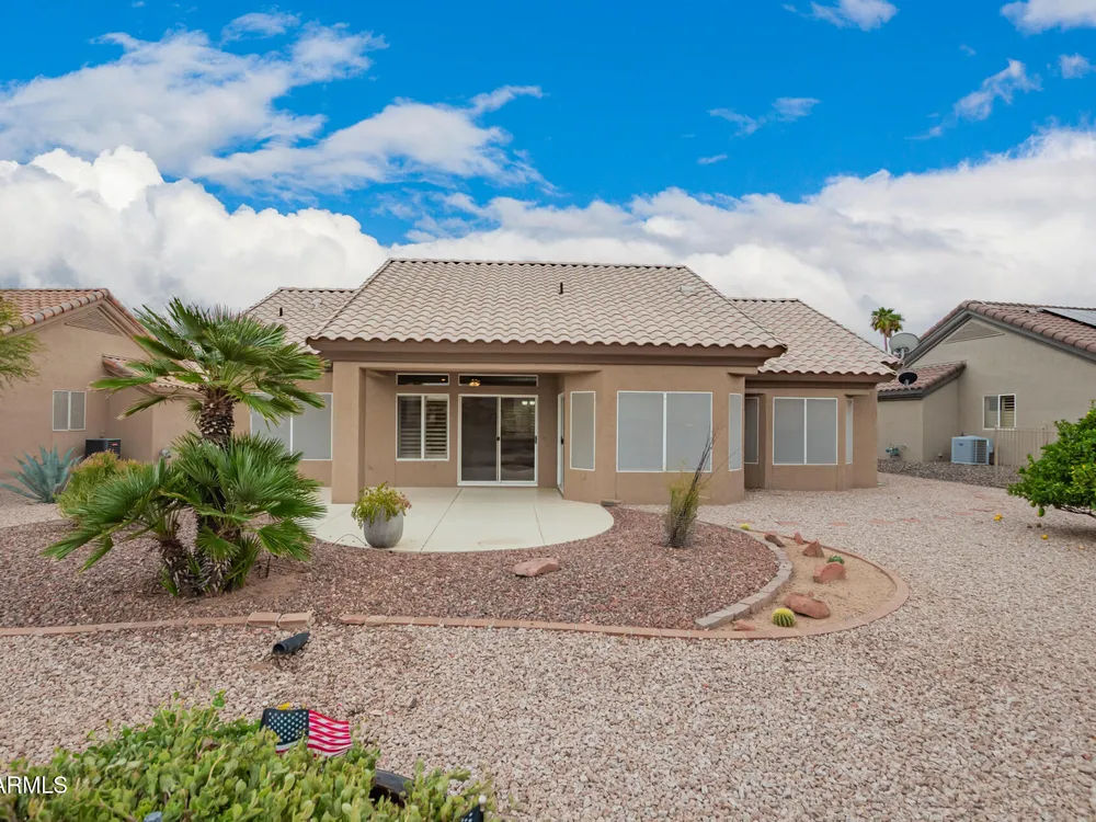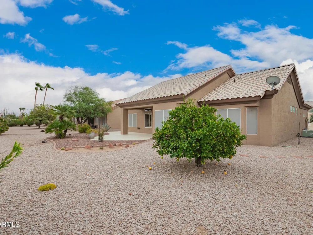 Enjoy easy living in this efficiently designed residence in Sun City West, AZ! Featuring 2 beds, 2 baths, and a 2-car garage, this gem perfectly balances comfort and style. Open the double doors to find a harmonious living & dining room enhanced by wood-look flooring, plantation shutters, and fresh paint throughout. Lovely kitchen comes with plenty of white cabinetry, recessed lighting, SS appliances, and a breakfast nook with a bay window. Large primary bedroom promises privacy and convenience, complete with a sitting area, a bathroom with two vanities, a designer tiled shower, and a walk-in closet. Tranquility awaits in the serene backyard with a covered patio and citrus tree. Don't miss the added benefit of solar panels! What are you waiting for? Just pack your bags and move in!