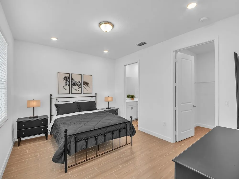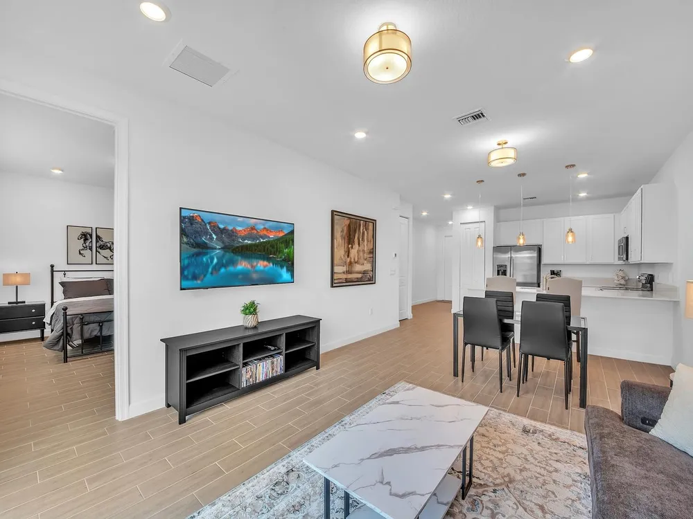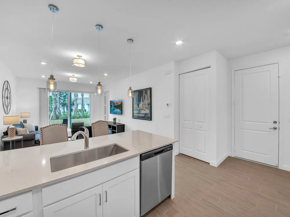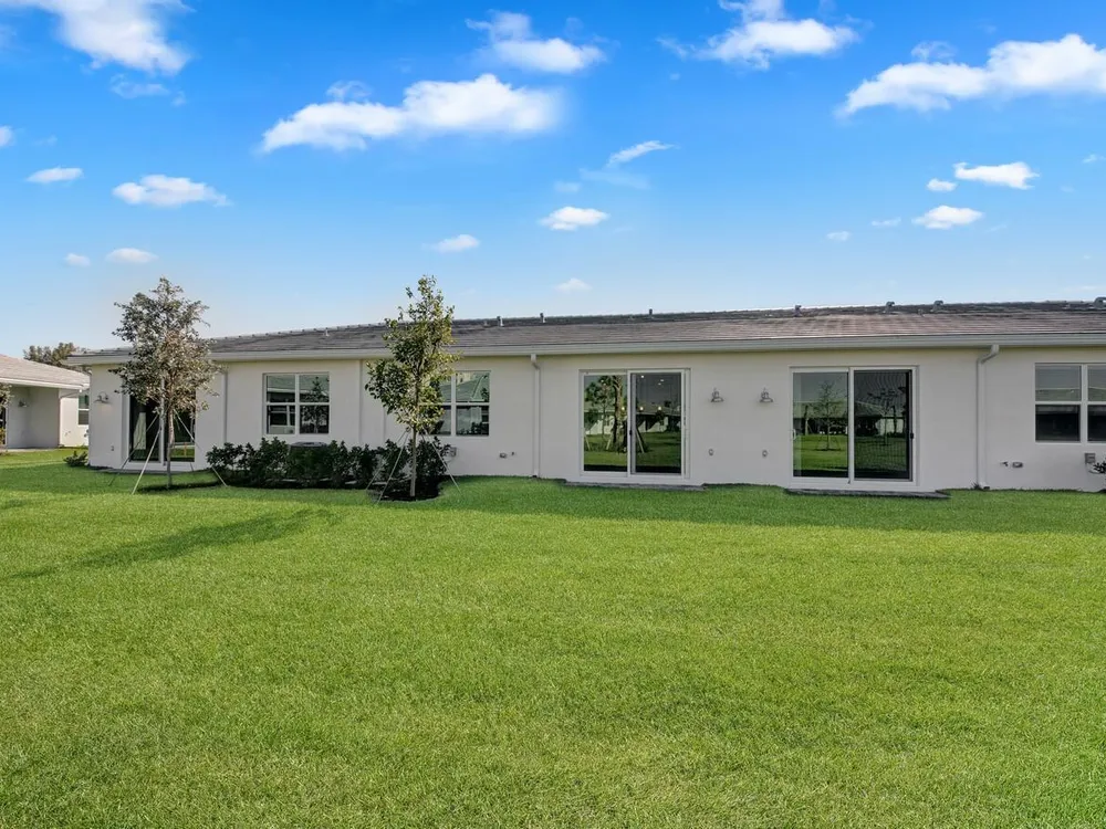 Brand-new 2-bedroom, 2-bathroom home offers the perfect blend of elegant style and casual comfort in a vibrant 55+ community. Designed with entertaining in mind, the open floor plan seamlessly connects the living room and dining area. The dream kitchen features timeless white cabinetry, granite countertops, stainless steel appliances, a pantry, and a convenient snack bar. The primary suite includes a spacious walk-in closet, dual sinks, and a walk-in shower, providing ultimate luxury. Additional highlights include neutral flooring (no carpets), impact windows, recessed lighting, and a charming, covered entrance. A driveway with parking for up to three cars adds to the convenience and appeal of this exceptional home