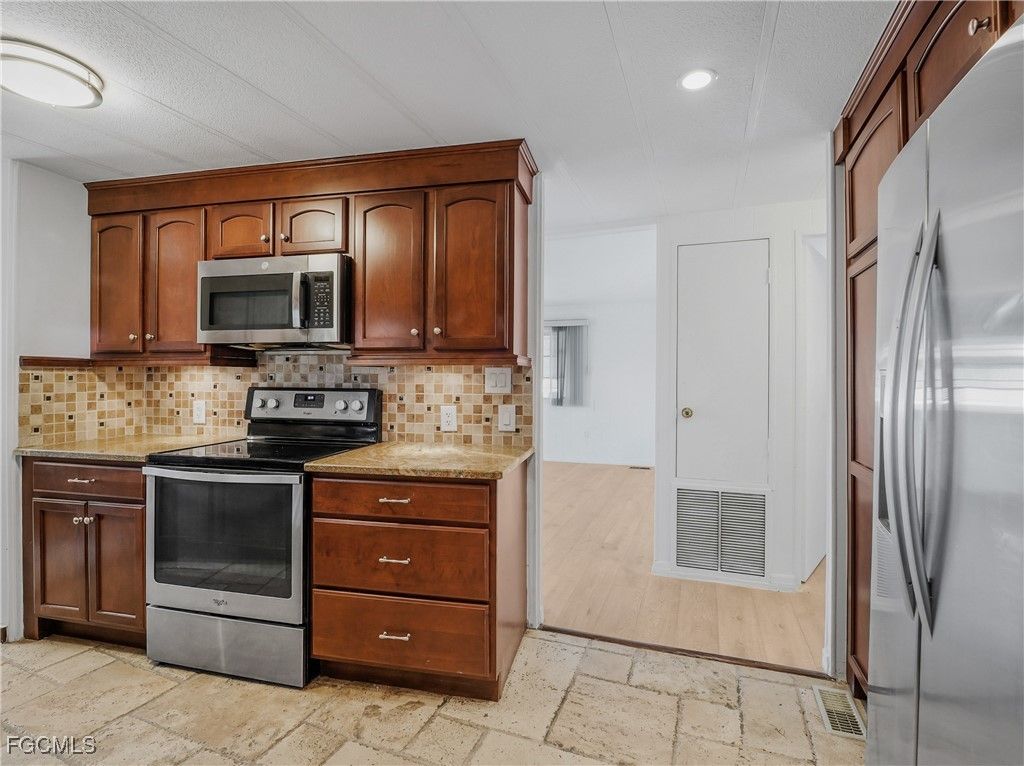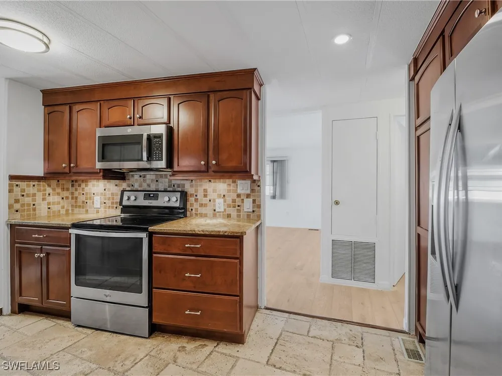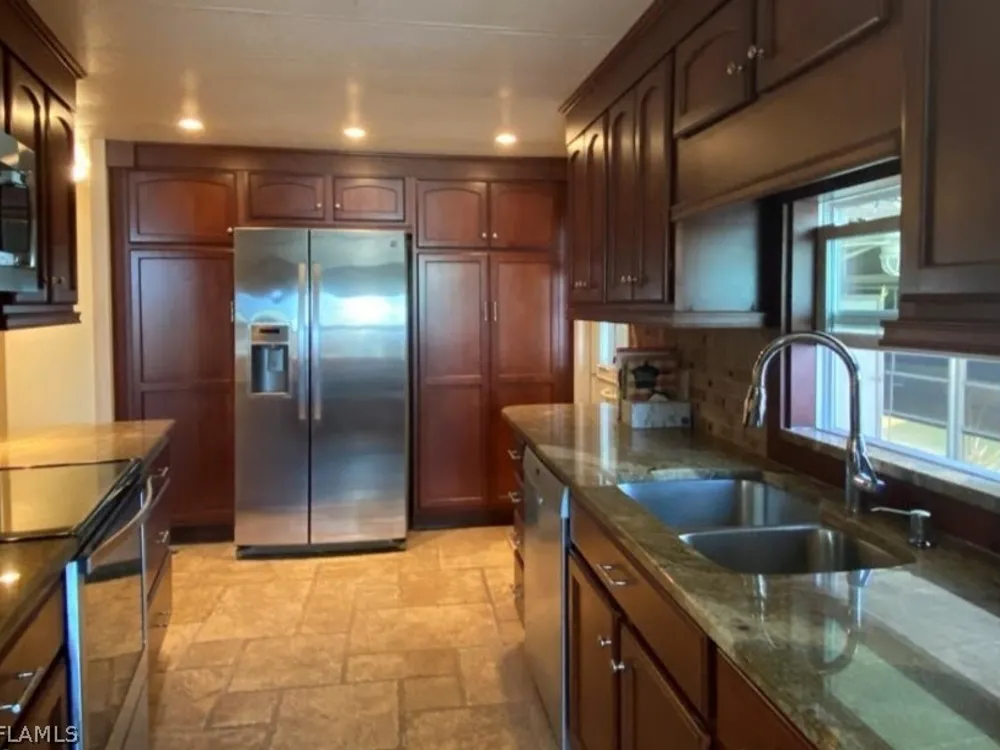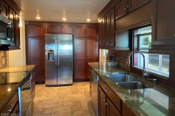 Discover your dream home in the resort-style waterfront boating community of Old Bridge Village. This charming residence features 2 spacious bedrooms, 2 modern bathrooms, and an expansive all-weather lanai perfect for relaxing or entertaining. Enjoy the beautiful Florida sunsets from your bright and airy Florida room at the front of the home. Recently repaired from Hurricane Ian, this home is ready for new owners. Seller will consider owner financing. Step inside to find stunning upgrades, including travertine stone floors, granite countertops, Merillat wood cabinets, under-cabinet lighting, a glass tile backsplash, and high-end appliances. Don’t miss this opportunity to live in a serene and vibrant community with endless amenities. Make this home yours today!