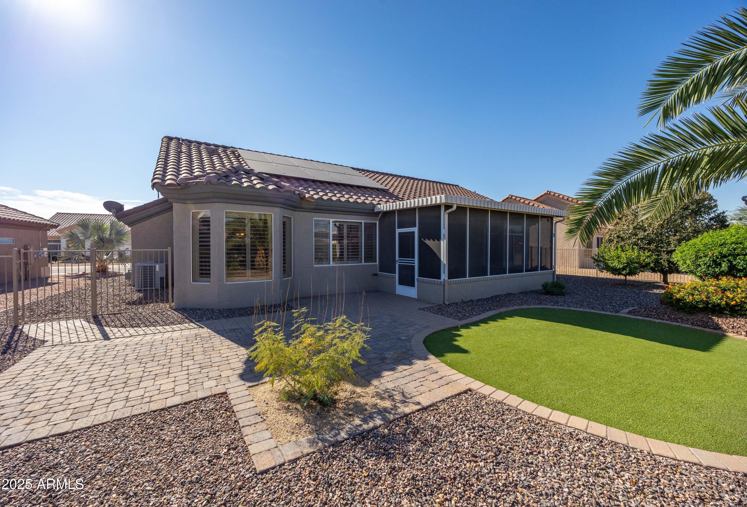 BEAUTIFUL & POPULAR SAFFORD MODEL! INVITING COURTYARD ENTRANCE. 2BR/1.75BTH W/ LARGE 2 CAR GARAGE. EAT-IN KITCHEN FEATURES, GRANITE COUNTERTOPS, REFRIGERATOR, DISHWASHER, MICROWAVE, & GAS RANGE. OPEN CONCEPT FLOORPLAN. PRIMARY SUITE HAS A BAY WINDOW, DOUBLE VANITY, SHOWER, & WALK-IN CLOSET. ENERGY EFFICIENT SOLAR LEASE, DUAL PANE WINDOWS, CEILING FANS, PLANTATION SHUTTERS. SCREENED PATIO TO ENJOY THE AZ WEATHER. LOVELY DESERT LANDSCAPING, ARTIFICIAL TURF, & WROUGHT IRON FENCING TOO.