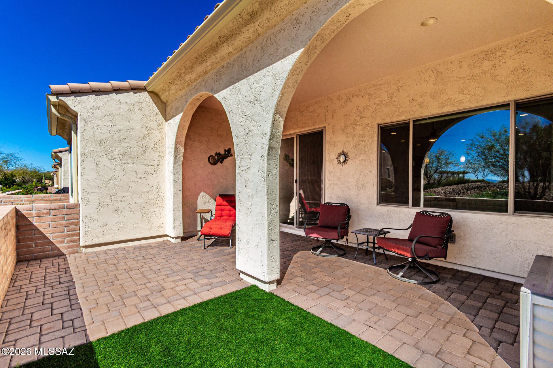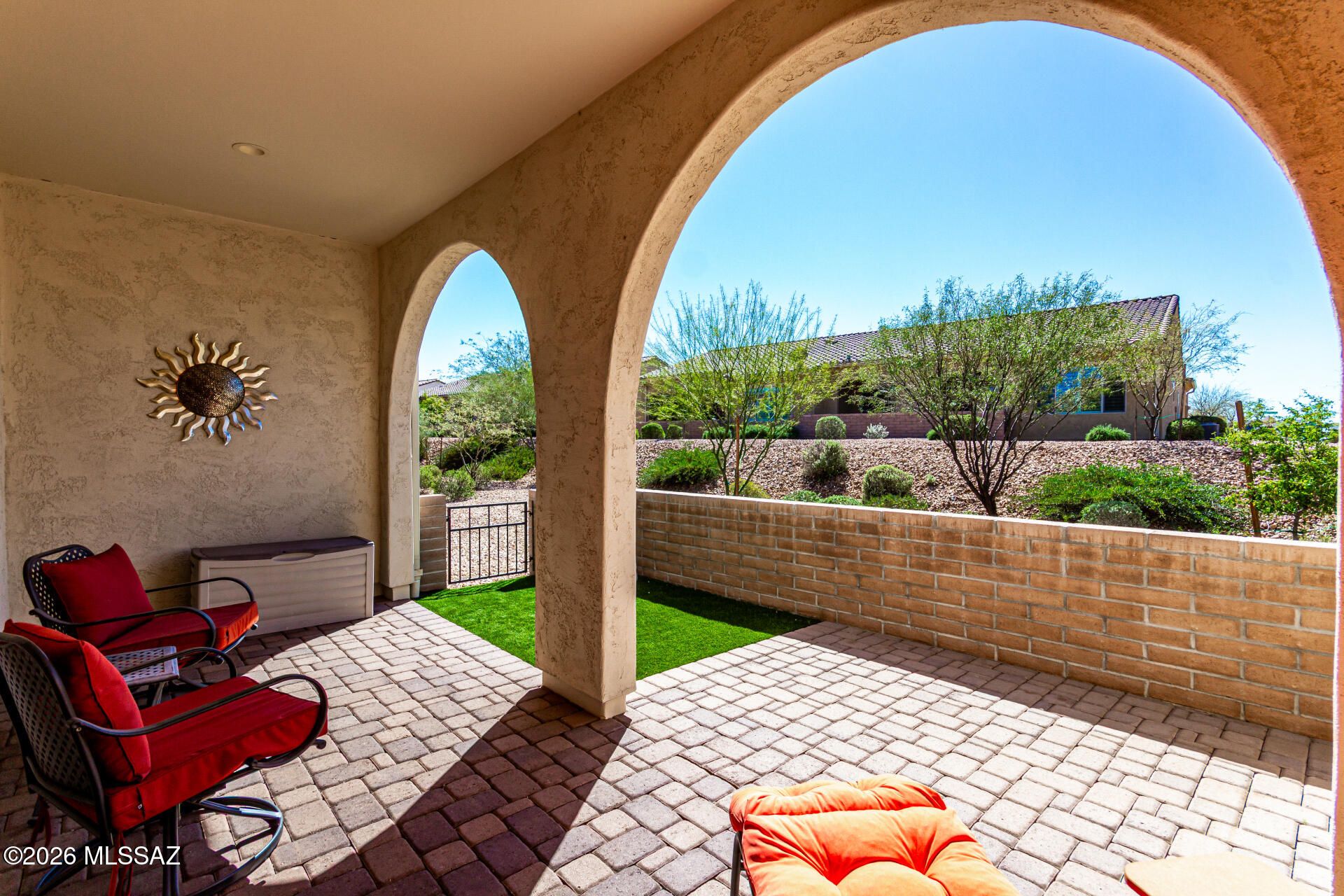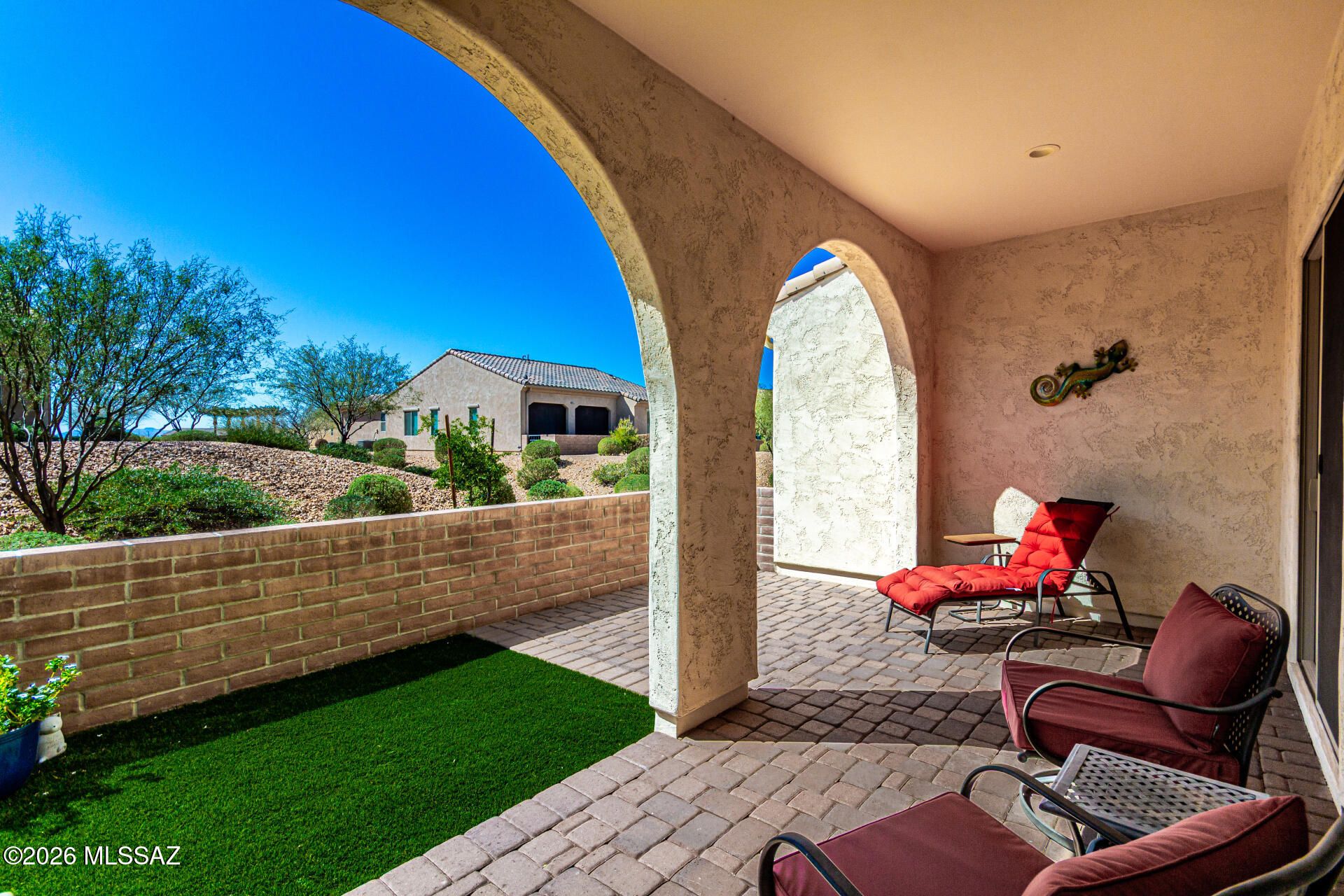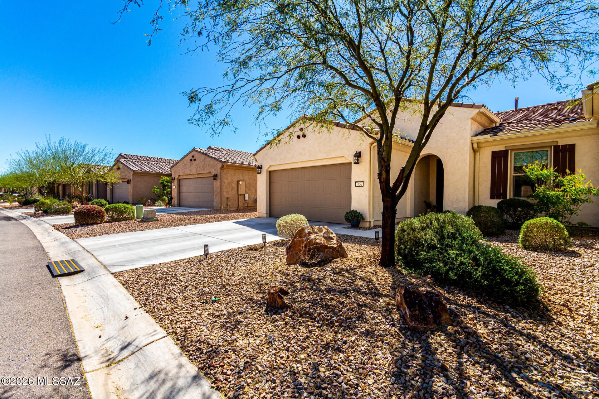 This beautifully designed home in 55+ Quail Creek offers comfortable desert living with modern style and convenience. The single-story Villa features approximately 1286 square feet of living space designed with an open-concept layout ideal for both everyday living and entertaining. The bright great room flows seamlessly into a well-appointed kitchen with an island, ample cabinetry, and modern appliances. The spacious primary suite includes a walk-in closet and an en-suite bath with dual vanities. A 2 car garage and low-maintenance landscaping add to the home's practicality. Residents enjoy access to resort-style amenities including golf, fitness facilities, pools, and a variety of social activities, all set against the scenic Santa Rita Mnts. Fully furnished. Roof/landscaping in HOA dues.