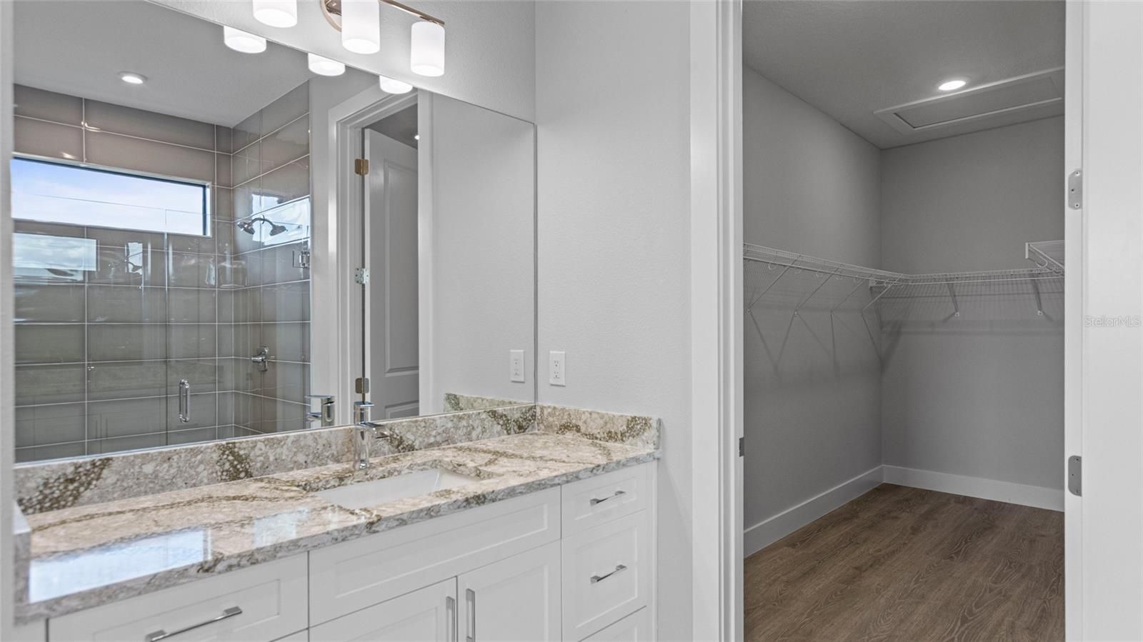 - Crown Molding, Living/Dining Room, Stone Counters, Tray Ceiling(s), Walk-In Closet(s)