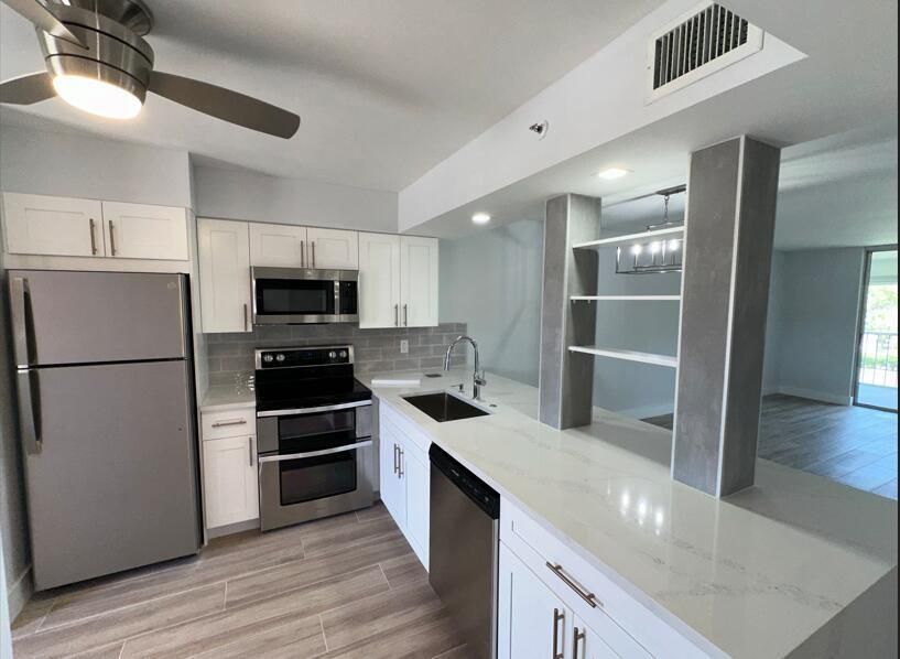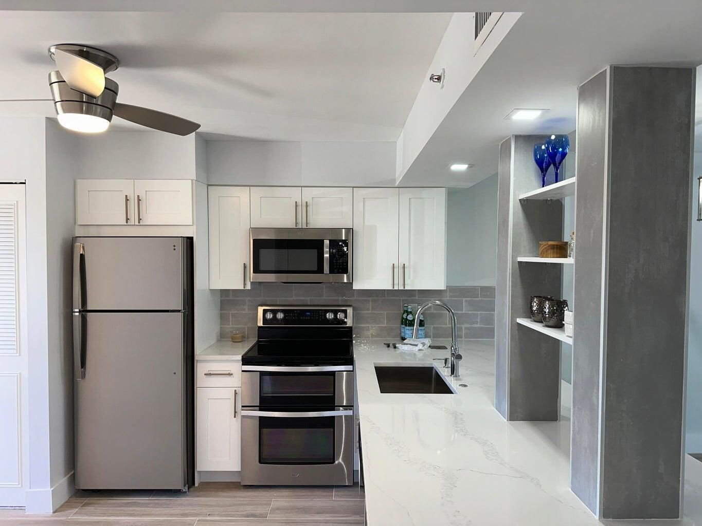 SELLER TO CONTRIBUTE $2,500 TO BUYER AT CLOSING, TO BE APPLIED TOWARD CLOSING COSTS OR ALLOWABLE EXPENSES. Enjoy the PALM BEACH LIFESTYLE for the season or year-round in this 2 bed/2 bath condo overlooking waterways. Completely updated with MODERN TOUCHES. Kitchen open to living spaces with WATERFALL QUARTZ COUNTER and DECORATIVE SHELVES. Spacious bathrooms with FLOATING VANITIES and PEBBLESTONE SHOWER FLOOR as well as MARBLE-LOOK WALL TILES. Gorgeous light-colored WOOD-LIKE TILE FLOORS give the feel of a beach cottage. MODERN CHANDELIER and LIGHT FIXTURES complete this condo updates. Close to houses of worship, shops, restaurants, Delray beaches, nightlife of Atlantic Ave and Delray Marketplace. Villages of Oriole Bonaire is a quiet enclave which offers clubhouse, pool, fitness center.