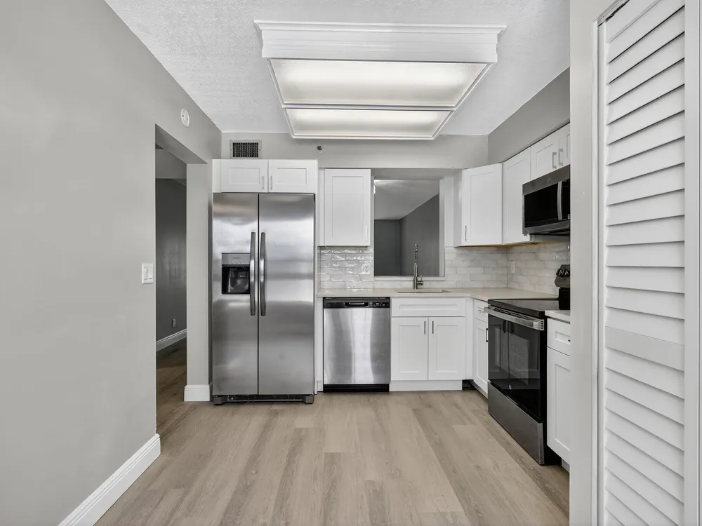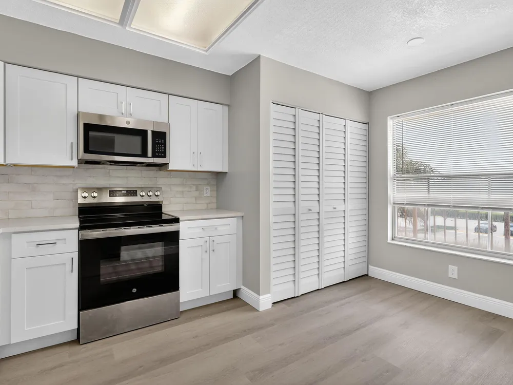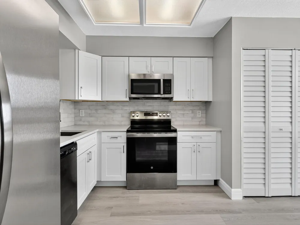 Beautifully renovated condo! Be the first to live in this quaint unit since the upgrades! Located in a lovely lakeside senior community in Delray Beach, natural light, an open concept, soothing water and palm tree views are just a few of the unit's many fine features. A new A/C was installed Aug 2023, and there is a washer and dryer in the unit. Amenities within walking distance include: pool, fitness center, billiards room, library, auditorium for events, shuffleboard, and a path around the lake. Water and cable are included in the condo fees, and it is elevator accessible. The beach, Atlantic Avenue attractions, Delray Marketplace, restaurants, shopping centers, healthcare facilities, and other cultural attractions are all conveniently located. Easy to show!