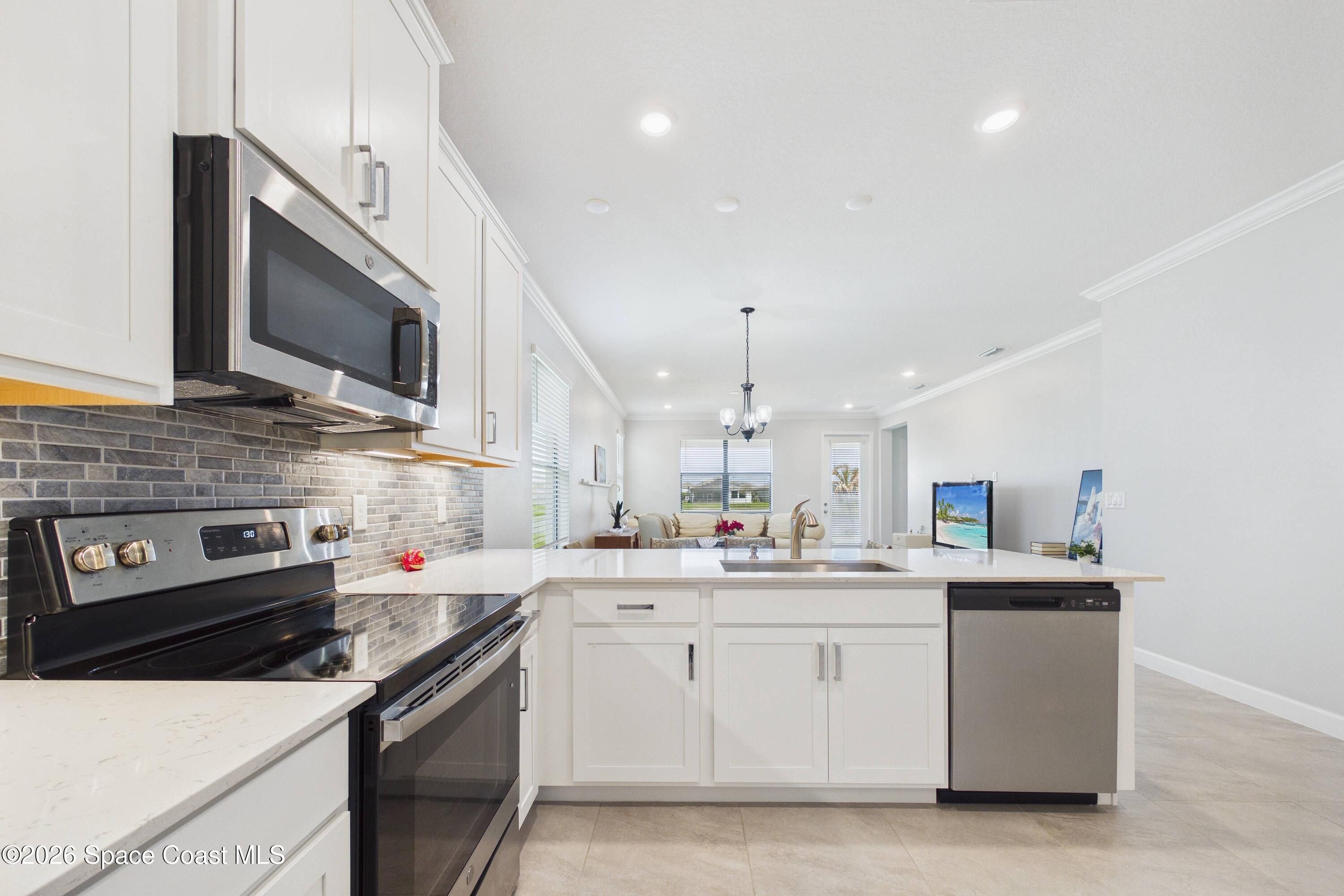 - Dishwasher, Disposal, Dryer, Electric Cooktop, Electric Range, Microwave, Refrigerator, Washer