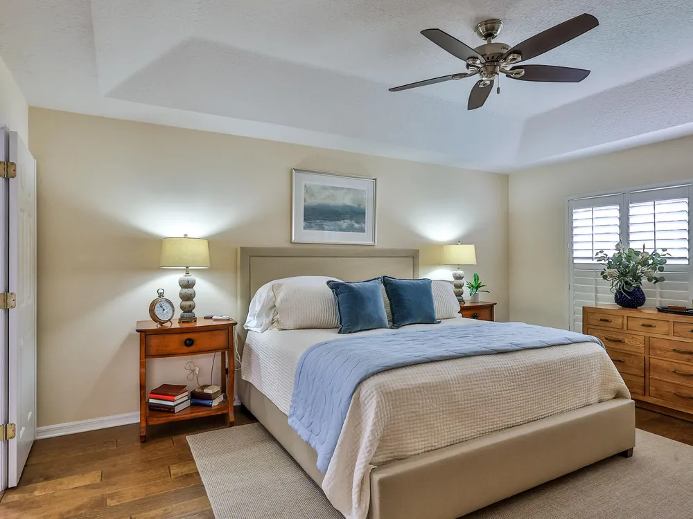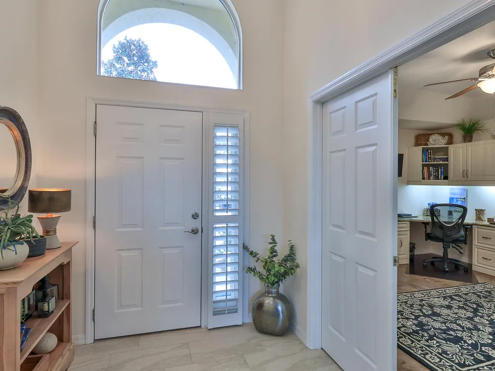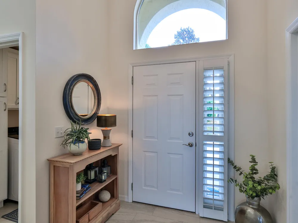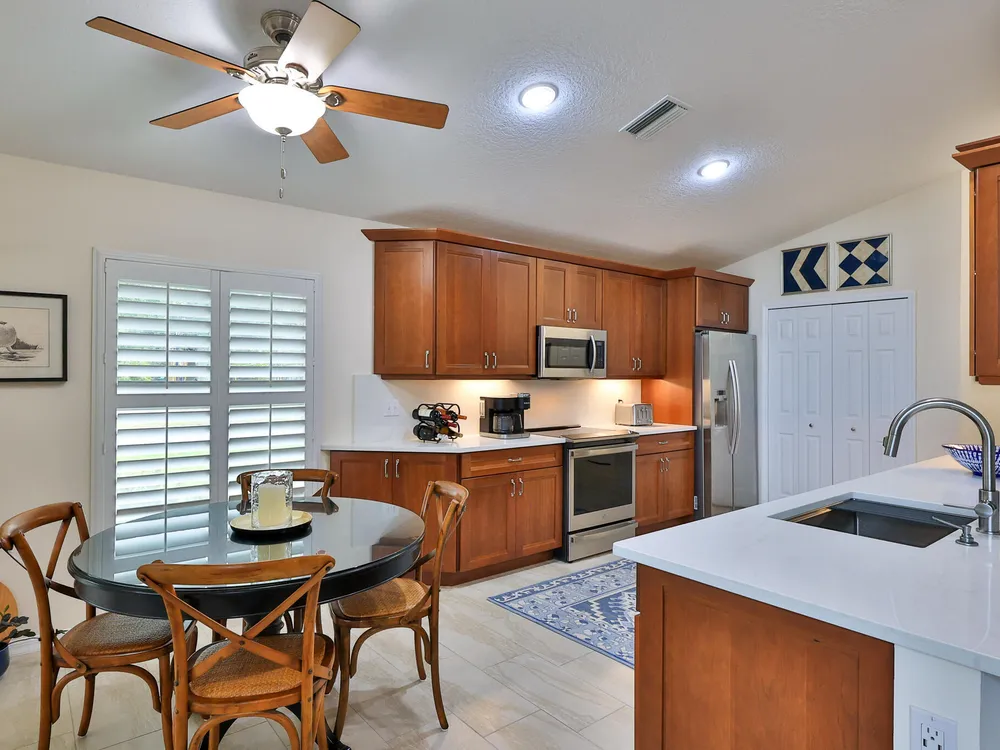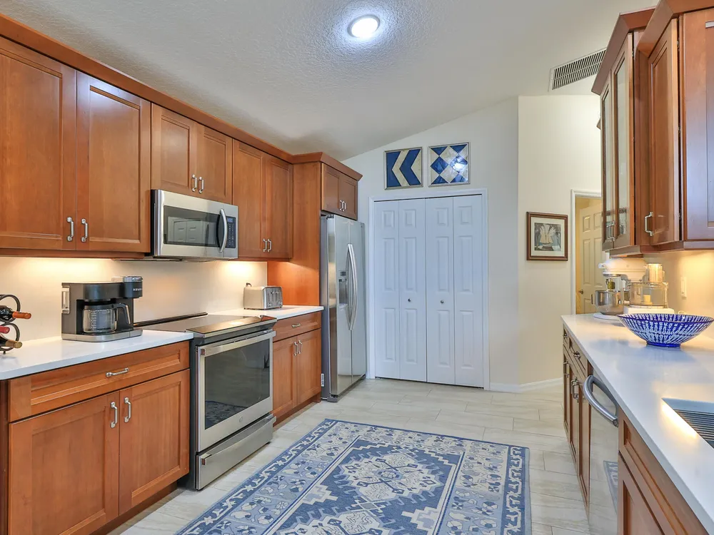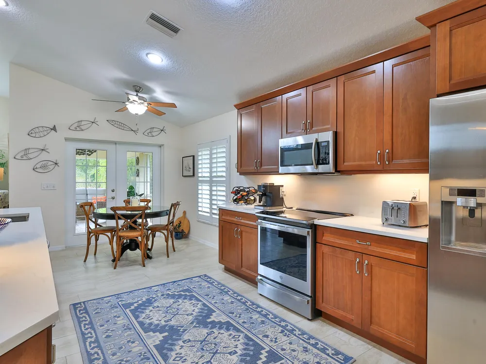 This meticulously renovated 3-bedroom, 2-bath pool home presents an exquisite opportunity for discerning buyers. Situated within the prestigious Plantation Bay Golf Community, the home offers remarkable views of Prestwick Park. Upon entering, one will observe a bright and airy move-in-ready property. Upgrades include elegant wood flooring throughout the primary living areas, plantation shutters, and a beautiful kitchen equipped with custom wood cabinetry, high-quality stainless steel appliances, and premium quartz countertops. The third bedroom provides versatile functionality, featuring a built-in desk, a closet, and a queen-sized wall bed, making it suitable for various uses, including a guest room or home office. The great room is flooded with natural light, thanks to French doors paired with transom windows that overlook the perfectly sized pool and spa. New roof in 2022, new A/C in 2024, water heater 2015. See more... Home is convenient to park, golf course, and US 1 Entrance to Plantation Bay. While membership is optional, Club features 45 holes of golf, fabulous new clubhouse with restaurants, indoor & outdoor dining, fitness center, tennis, pickleball.