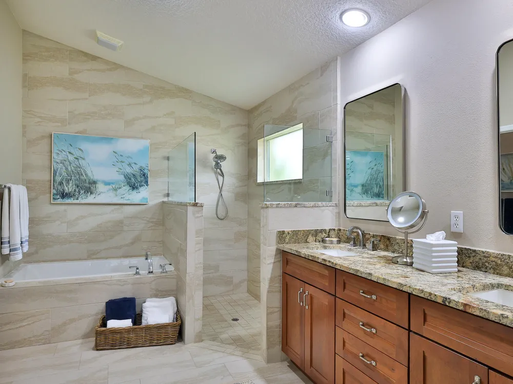 - Ceiling Fan(s), Open Floorplan, Primary Bathroom -Tub with Separate Shower, Split Bedrooms, Walk-In Closet(s)